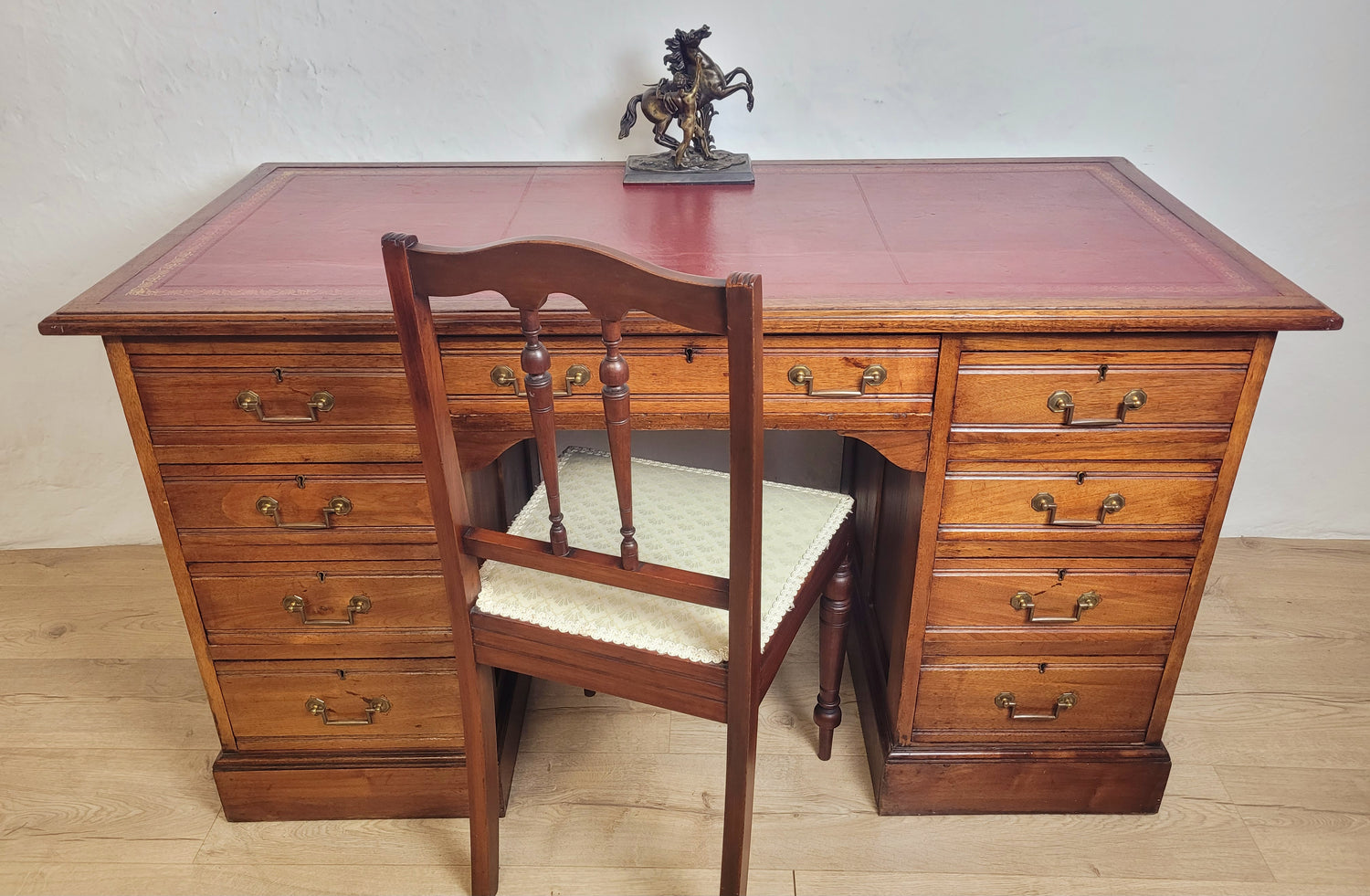 Edwardian Writing Desk Knee Hole Red Leather 1910 Antique Delivery Available