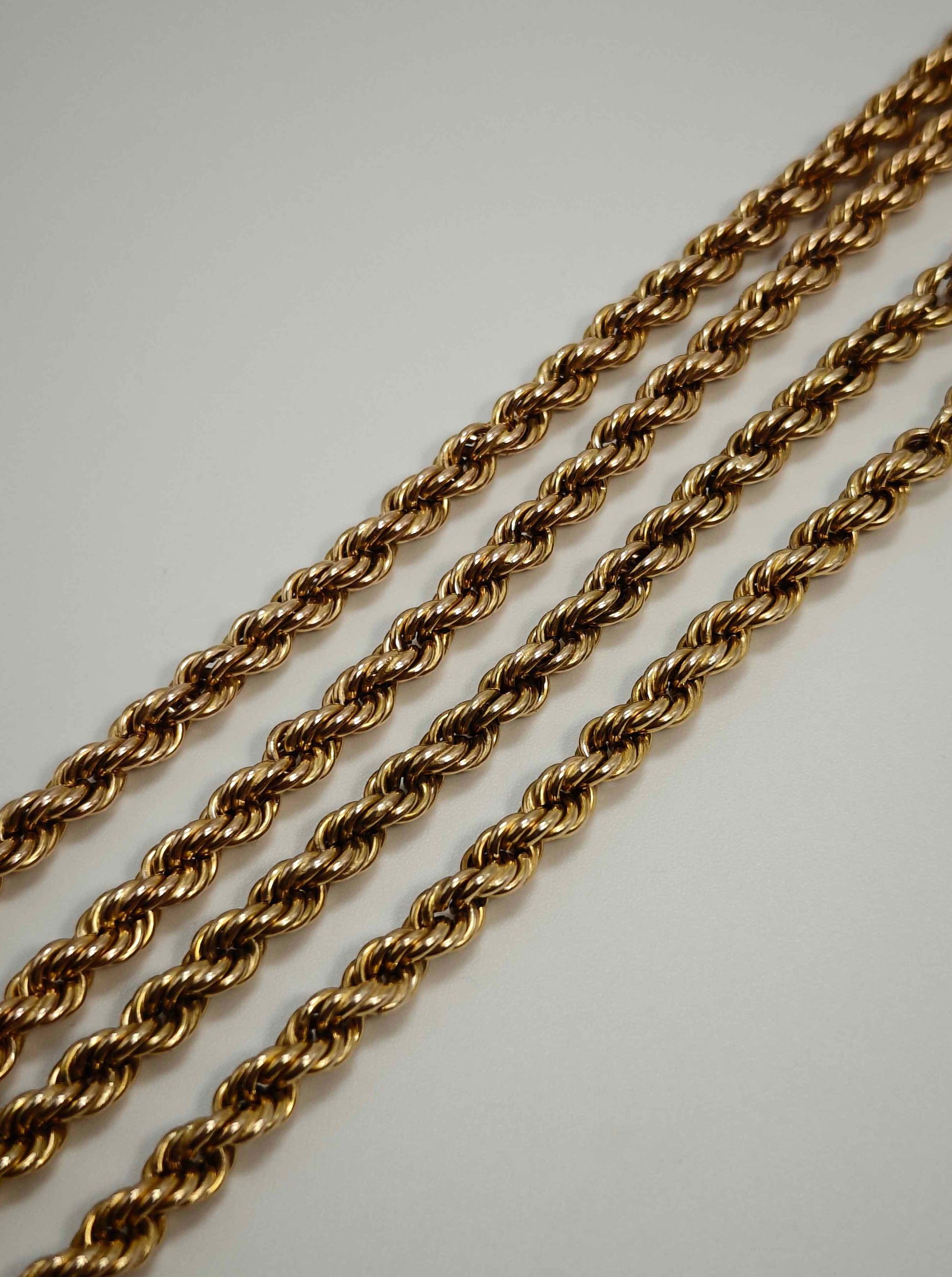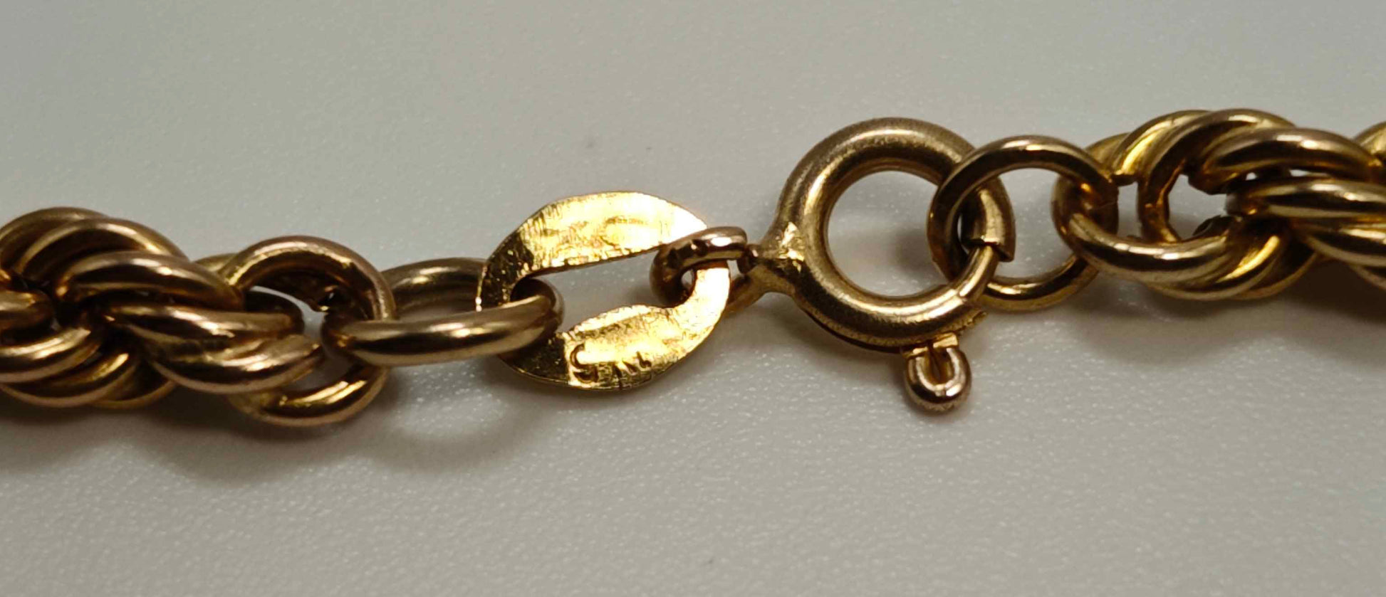 This necklace is made of high-quality 9ct gold and features a stunning twisted rope link and is made with a Spring Ring closure ensuring a secure fit. The gold links are hollow and not solid.