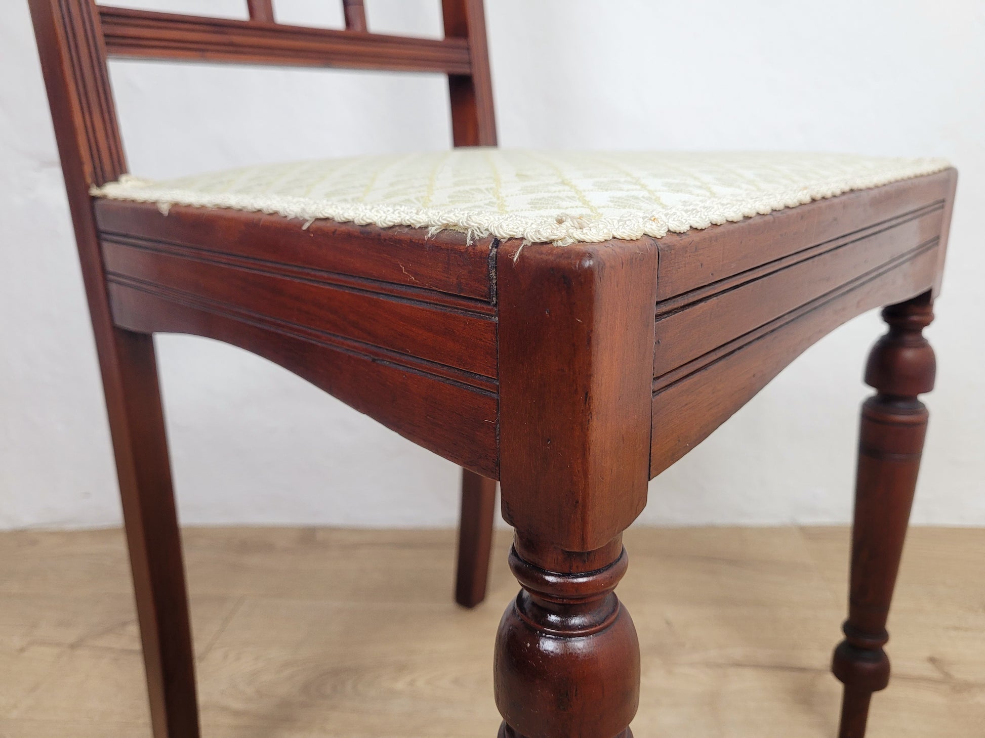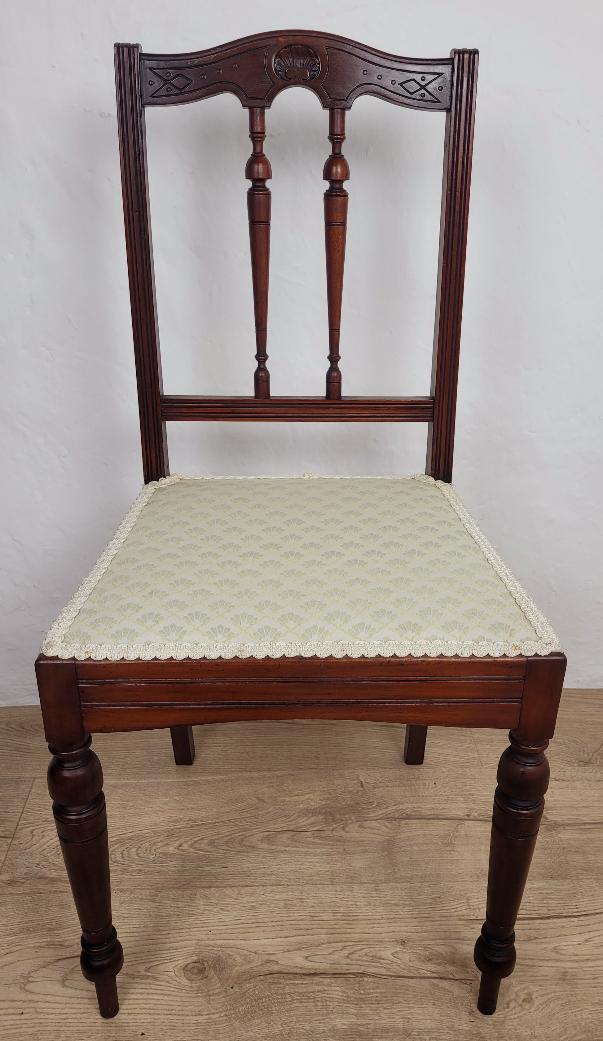 This antique mahogany occasional chair is a beautifully crafted piece of furniture, perfect for adding a touch of antique charm to the living room or bedroom setting.