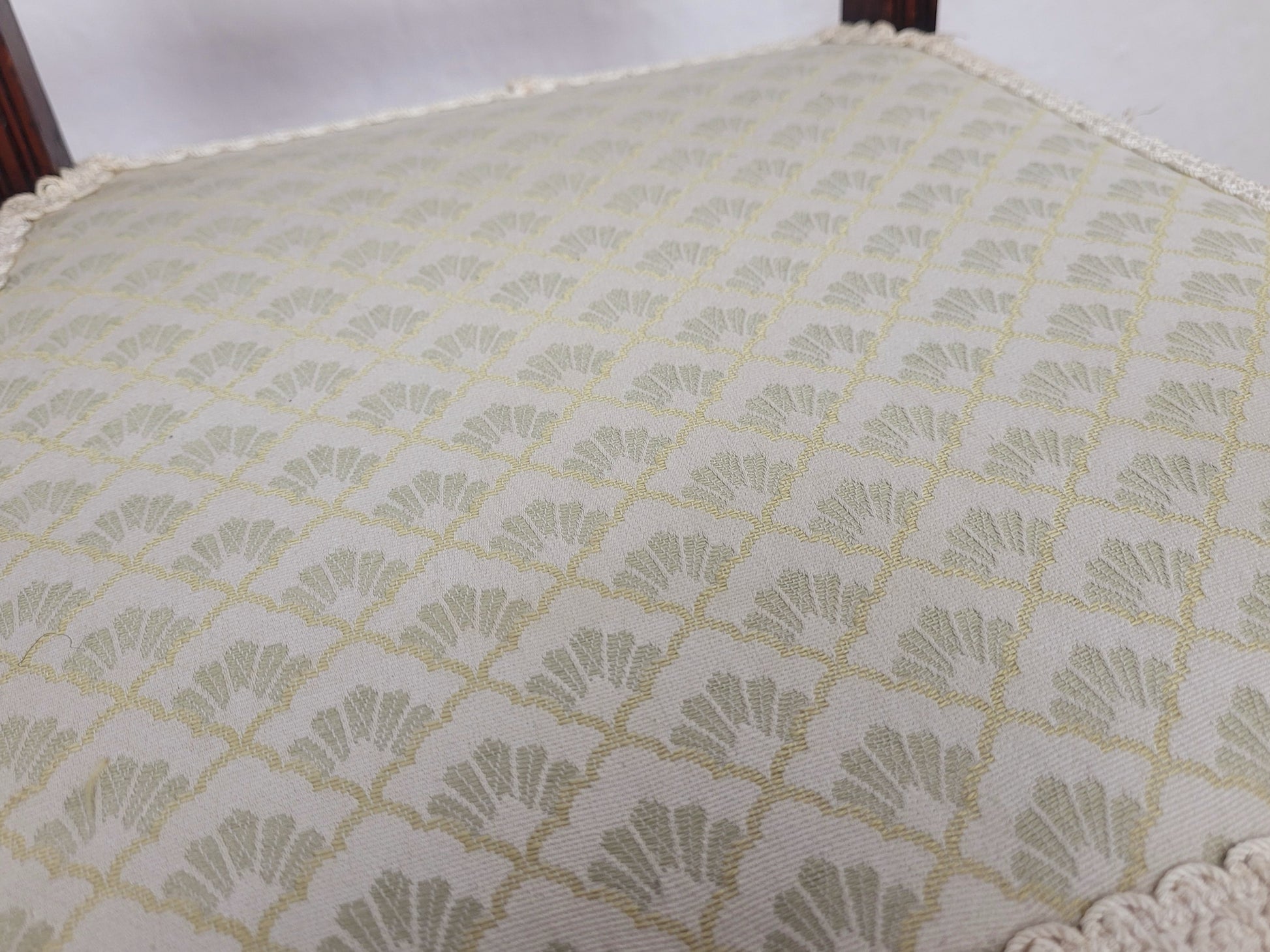 The upholstered seat shows minor signs of staining to the brocade boarder.