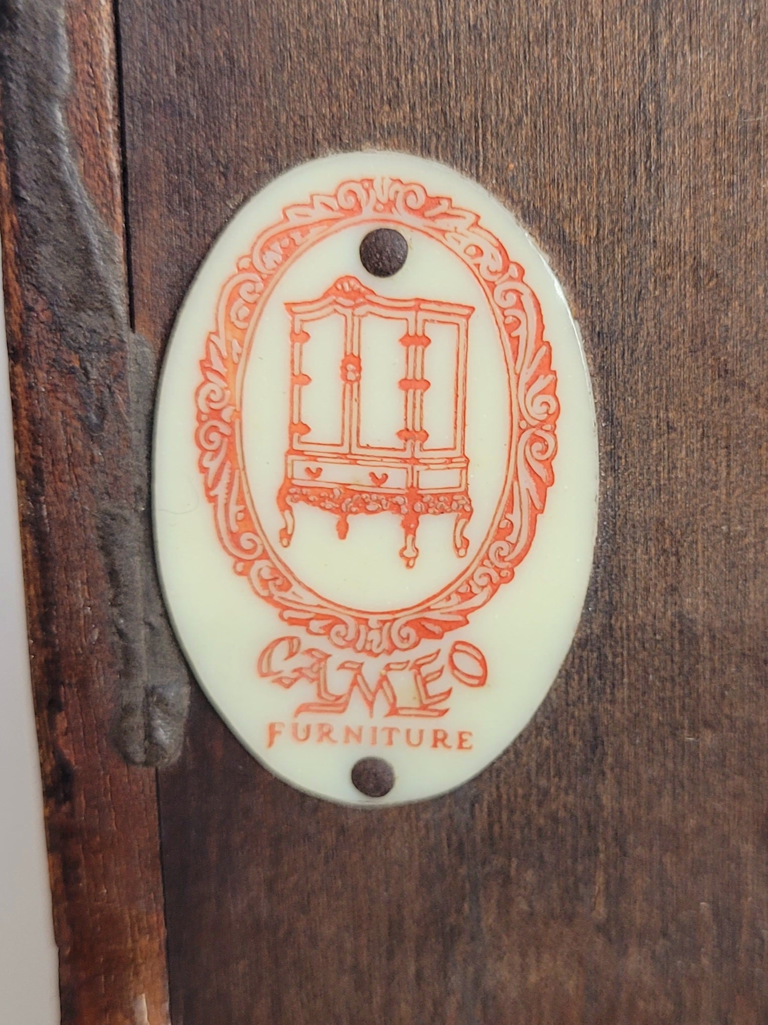 With the original 'Cameo Furniture' plaque to the back side of the chest.