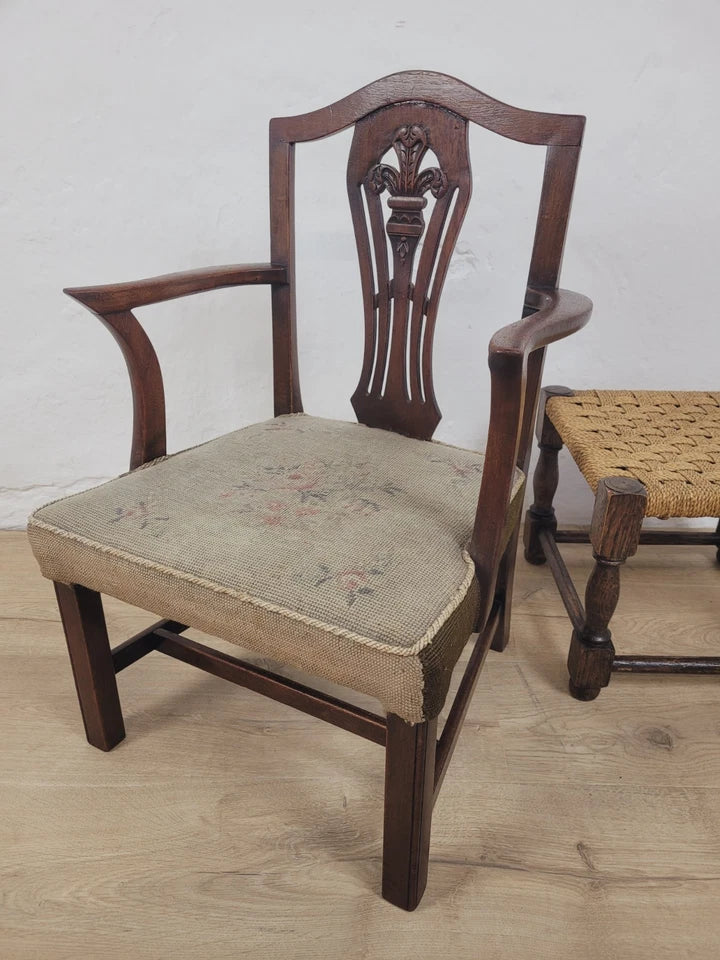 This charming child's chair showcases the craftsmanship of the Georgian era, making it a delightful addition to a bedroom or living room setting.