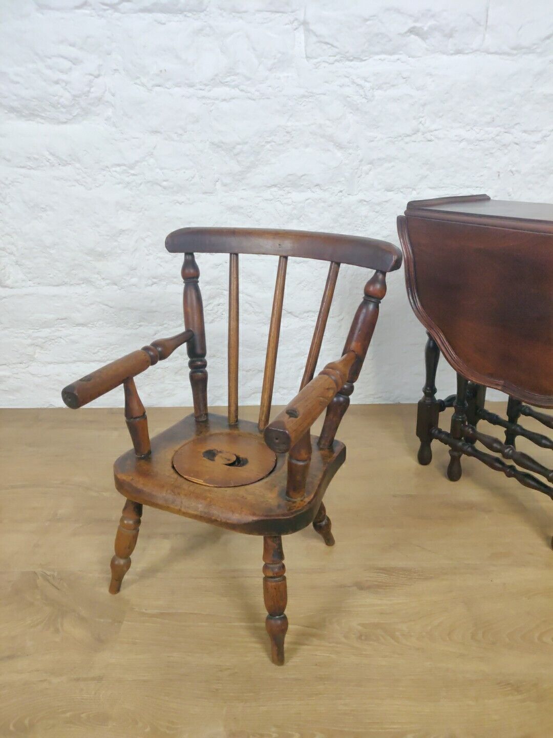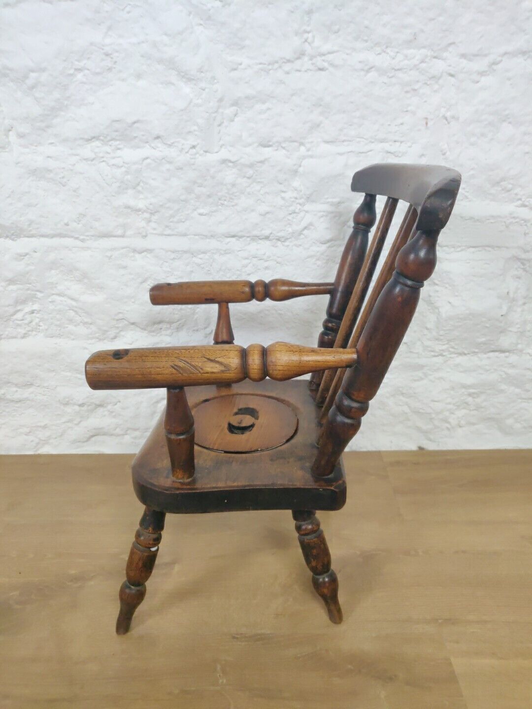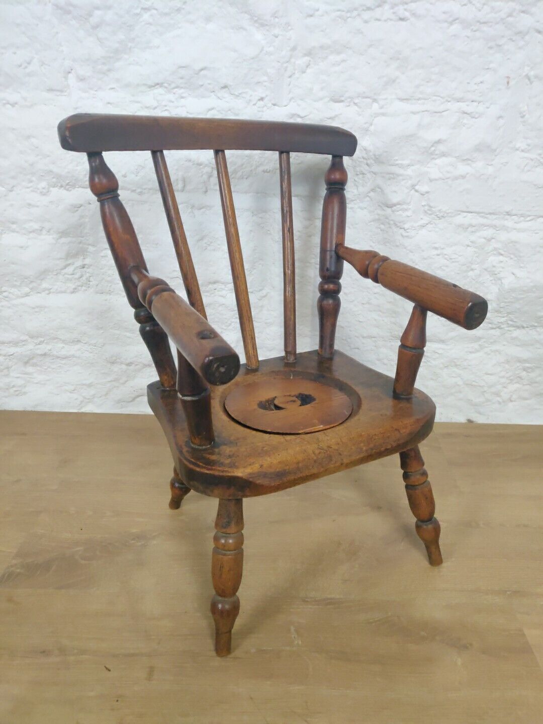 Child's Potty Armchair Victorian Elm Spindle Back Lid Postage Available
