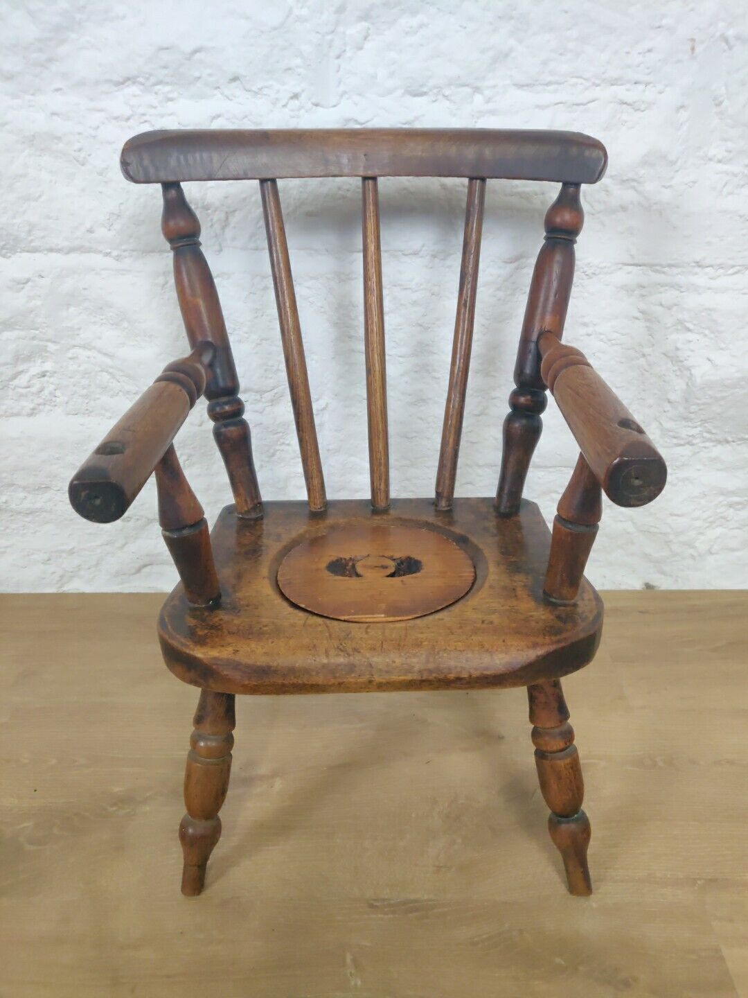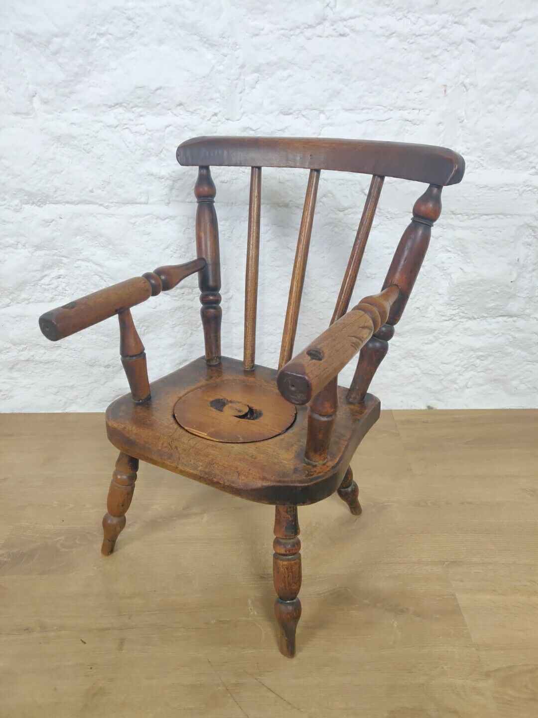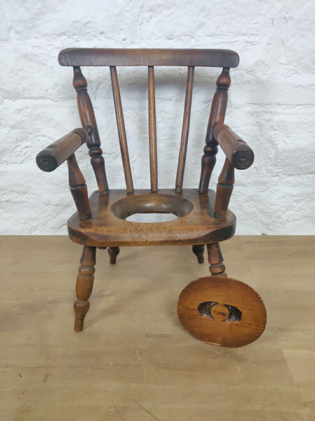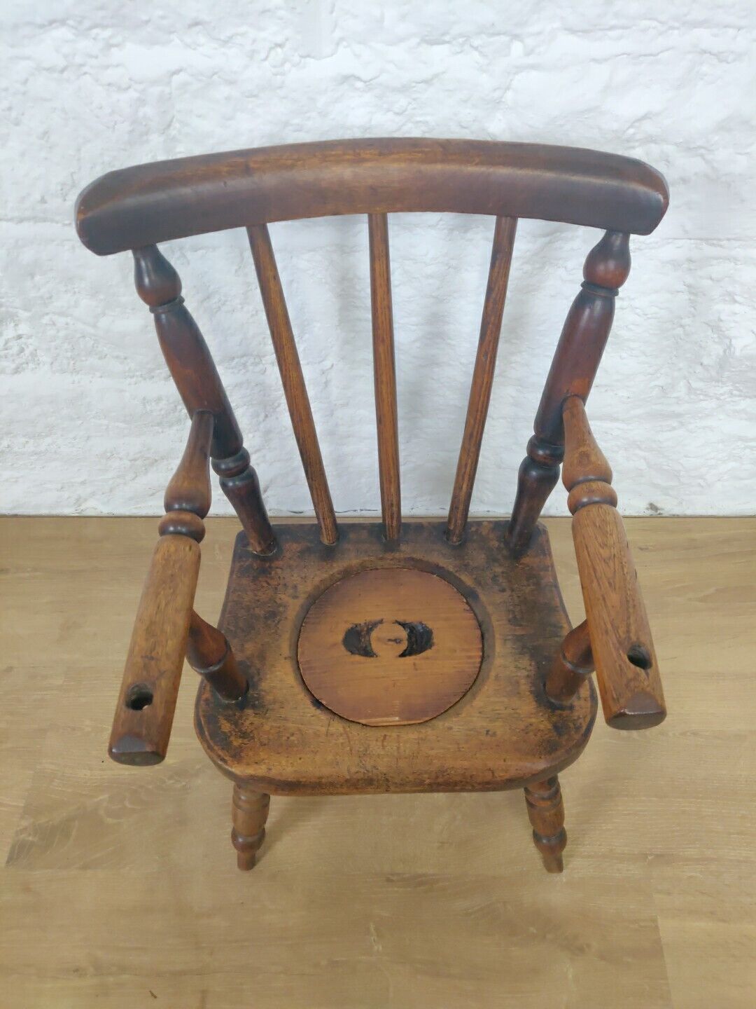 Child's Potty Armchair Victorian Elm Spindle Back Lid Postage Available
