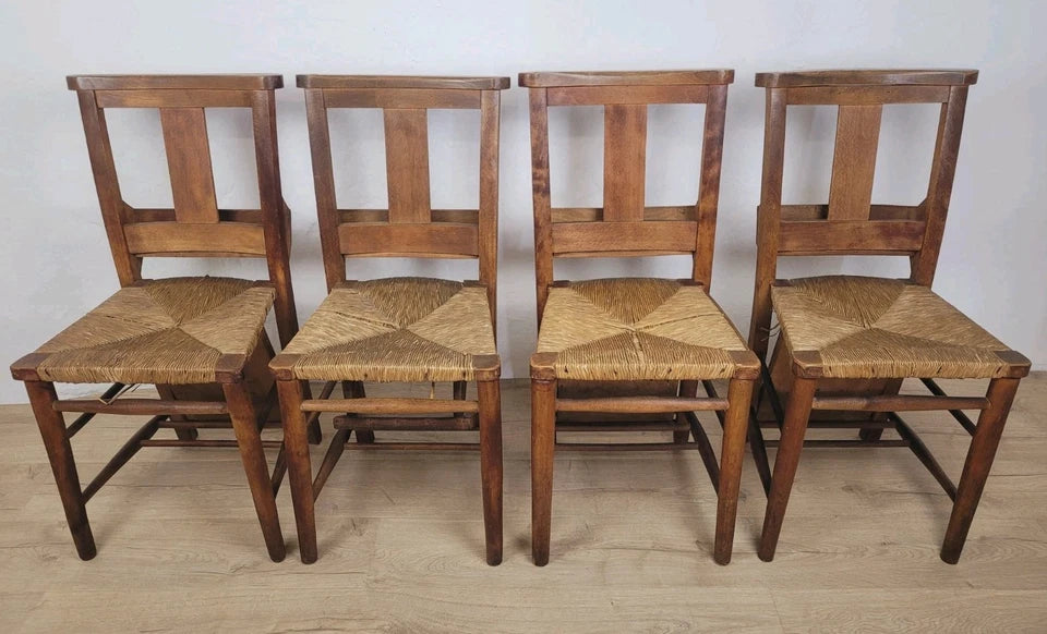 There are signs of obvious use and wear to the rush seats, with gaps between the rush strands, but still fully functional chairs (see photograph).