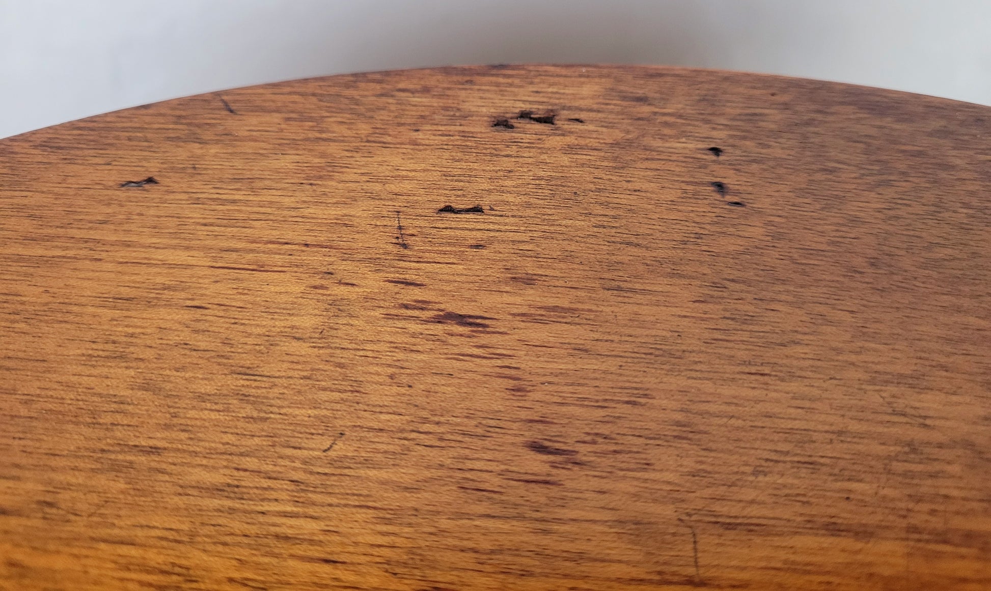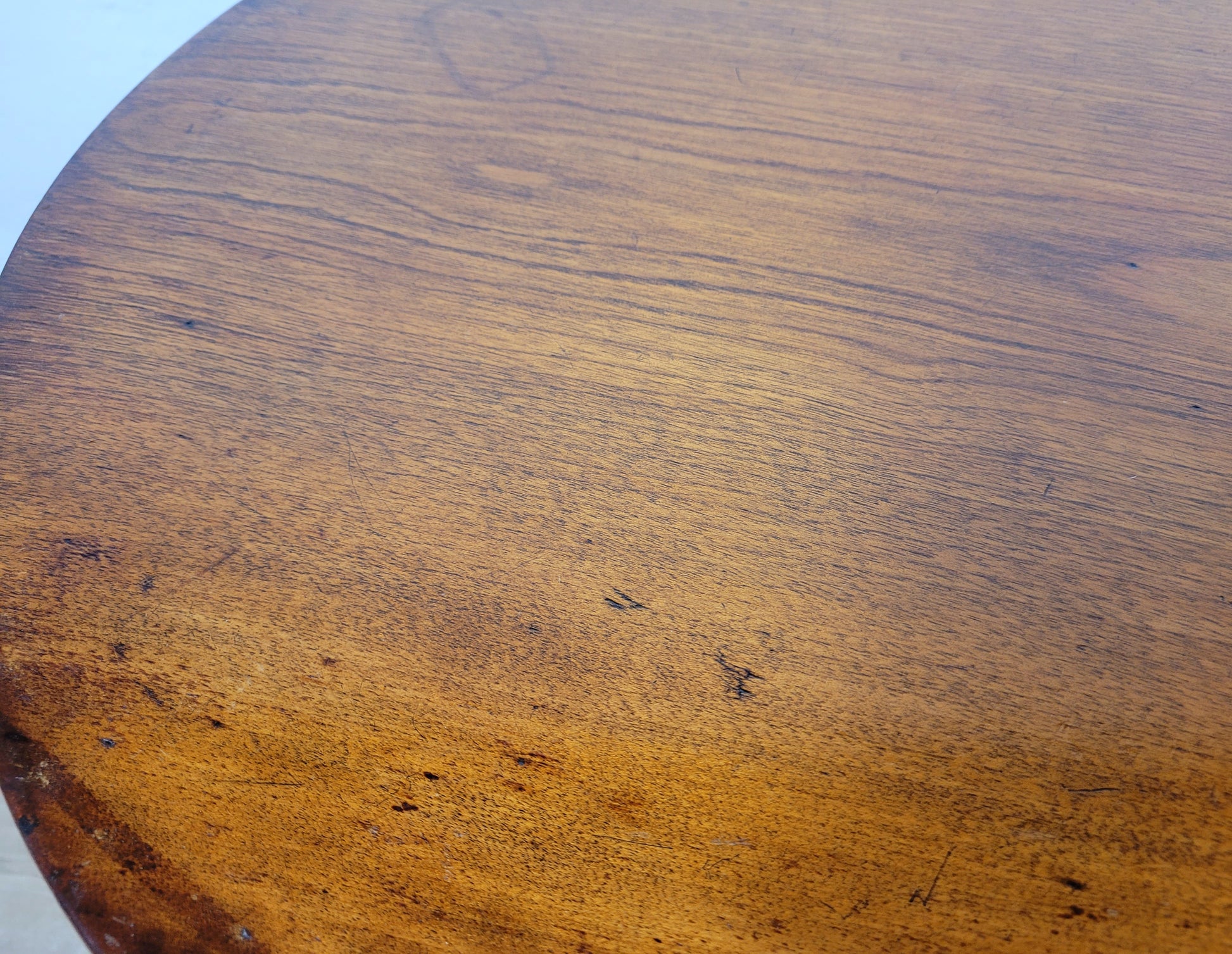 The tabletop is in a gorgeous circular shape, and displays a rich mahogany patination.