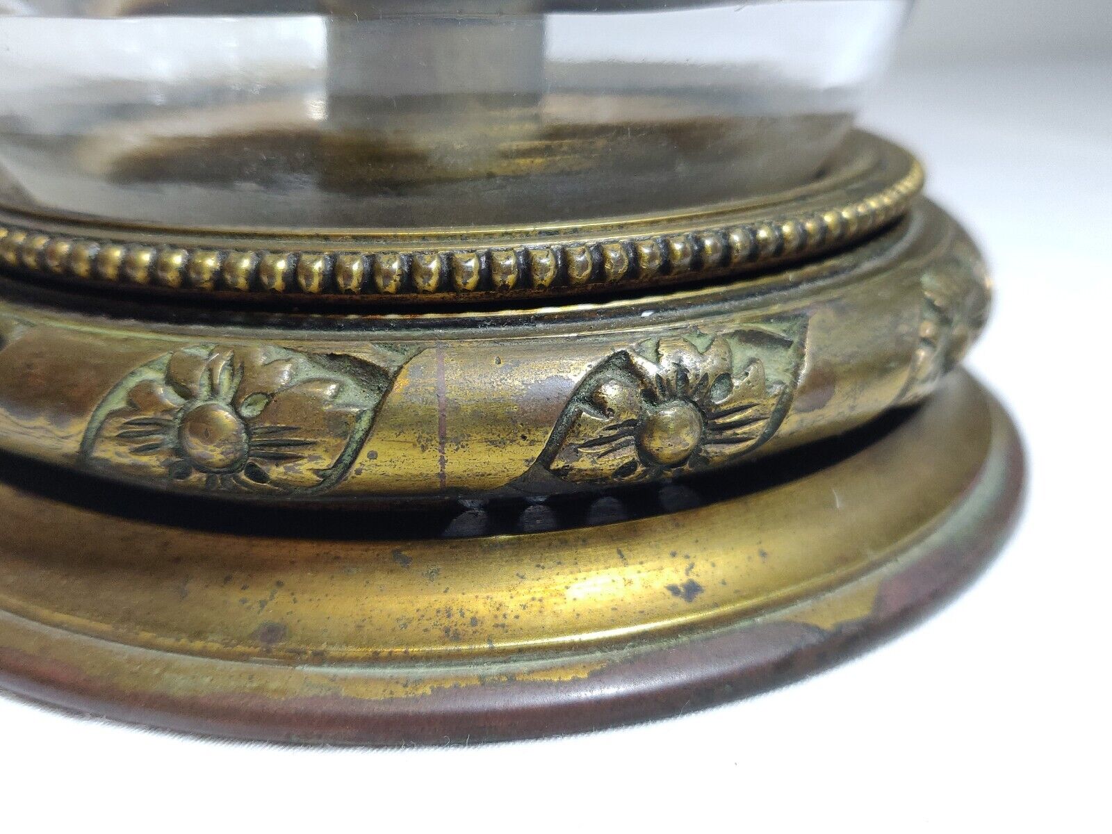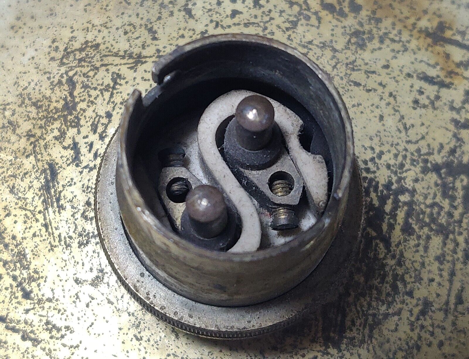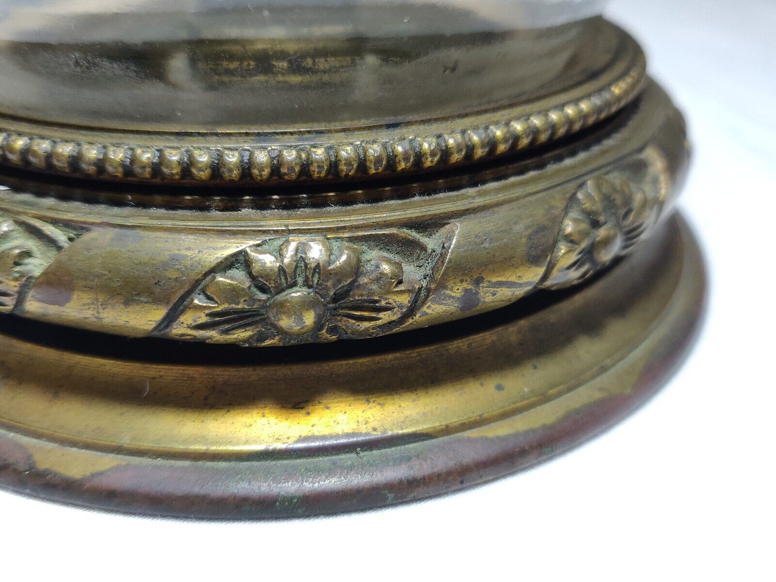There is a bayonet fixture inside the glass dome that is ready for someone to wire. The glass dome is rotatable inside of the brass holder for easy adjustments.