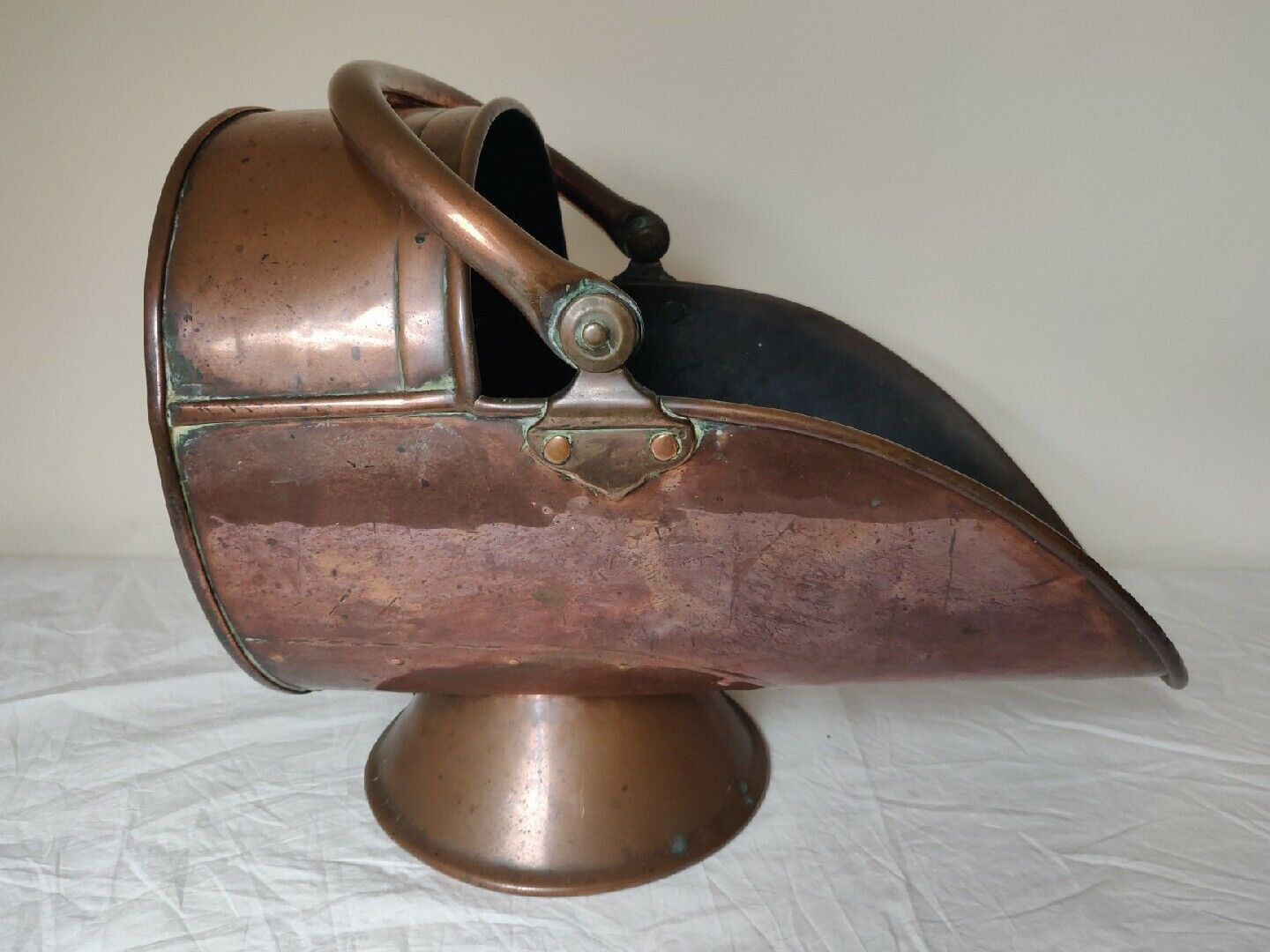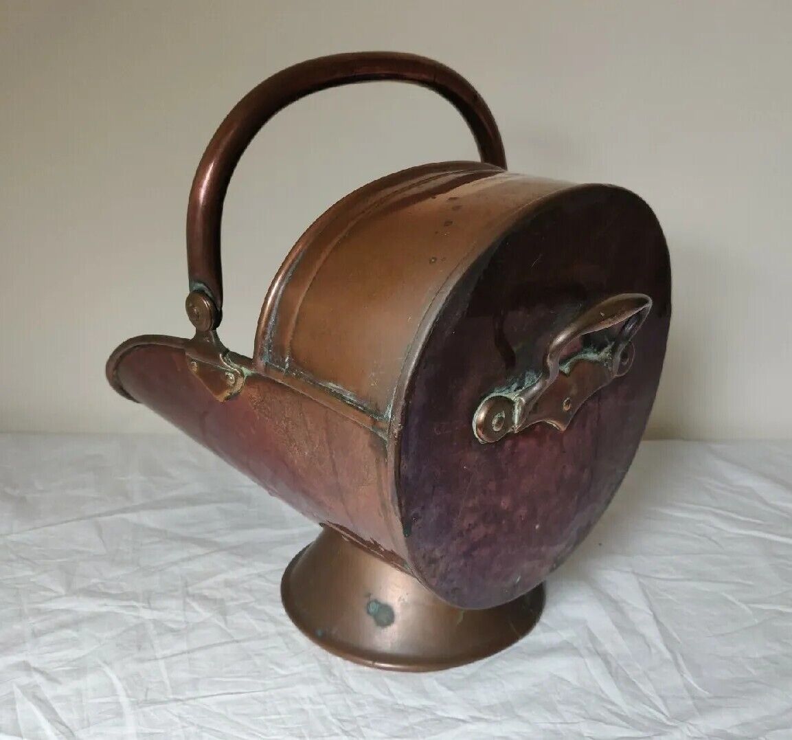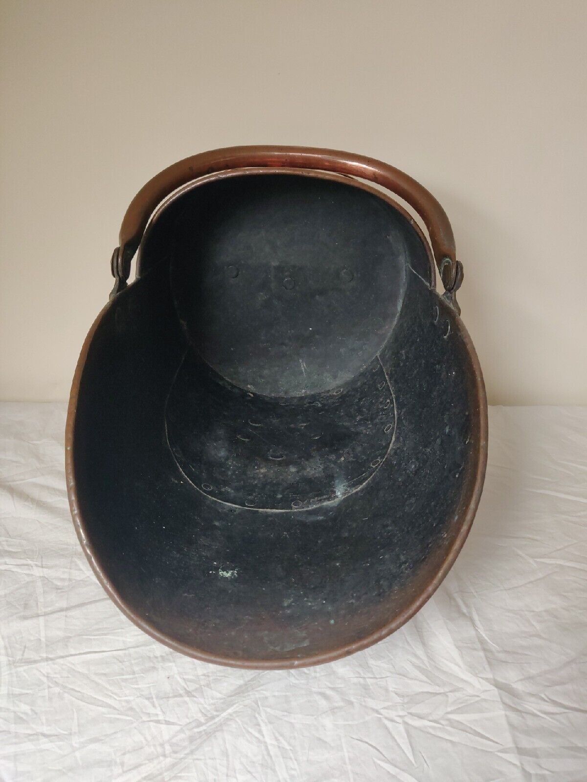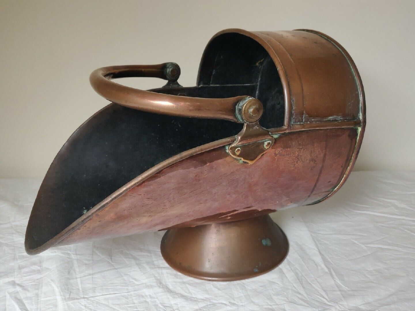 Copper Riveted Coal Helmet Scuttle With Handle Victorian Postage Available