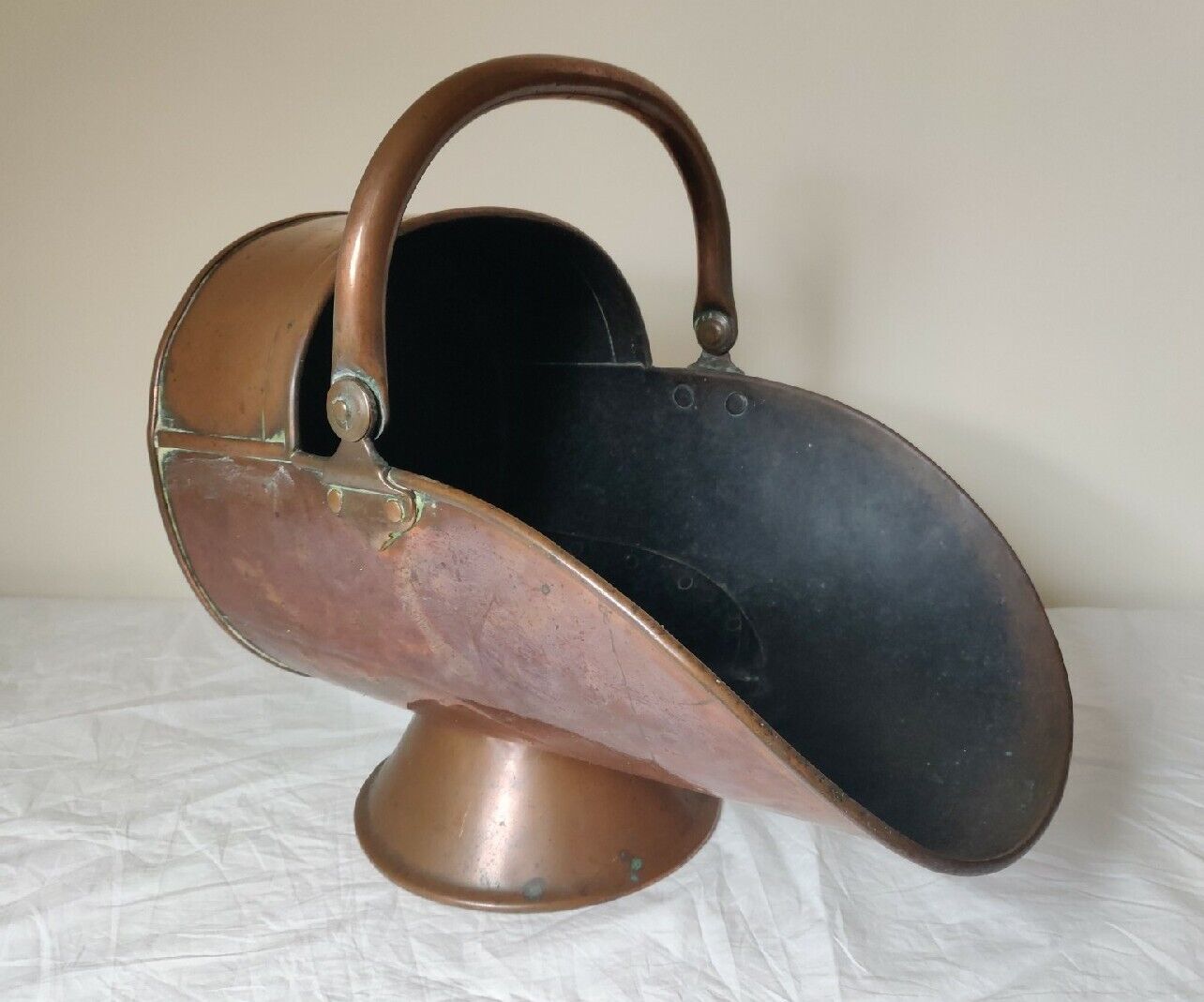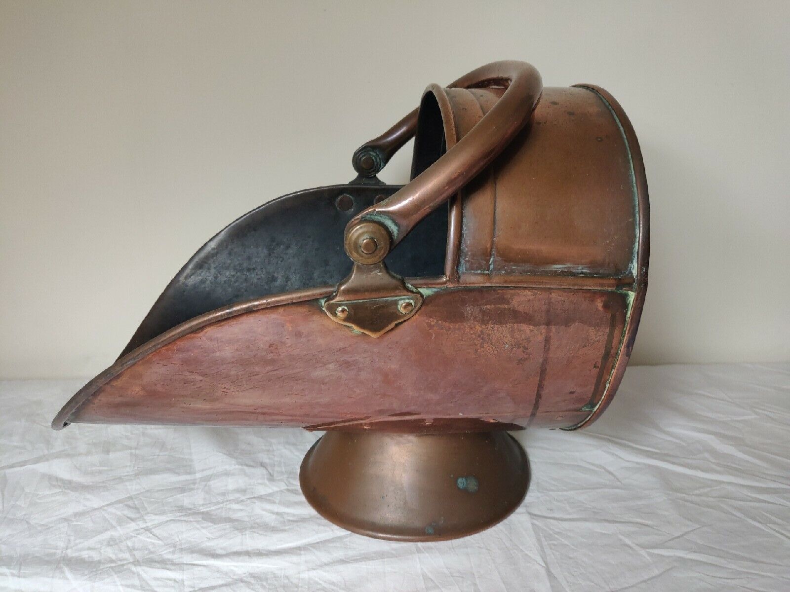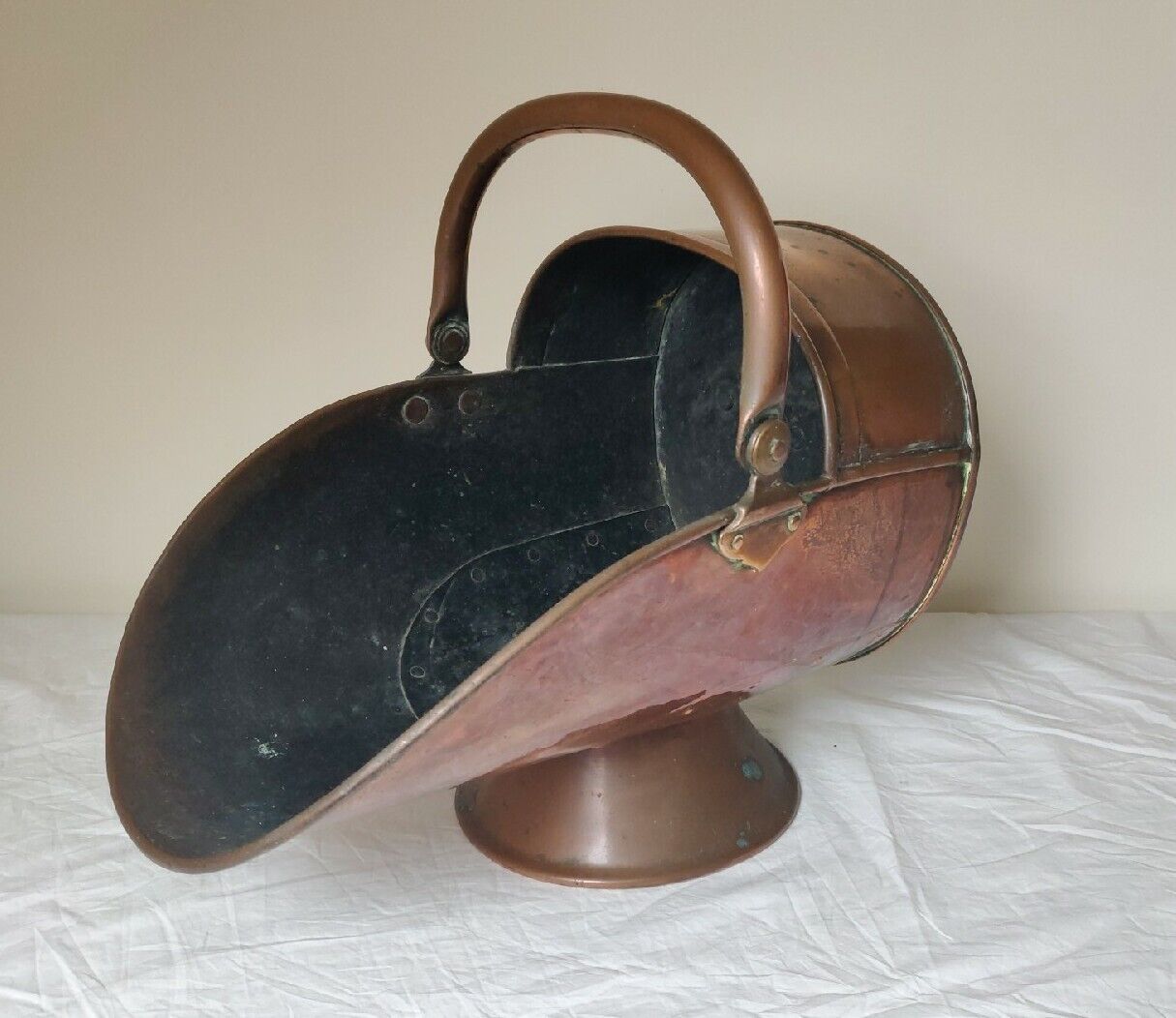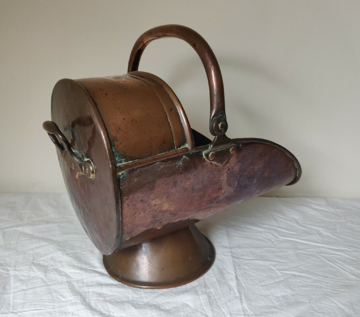 Copper Riveted Coal Helmet Scuttle With Handle Victorian Postage Available