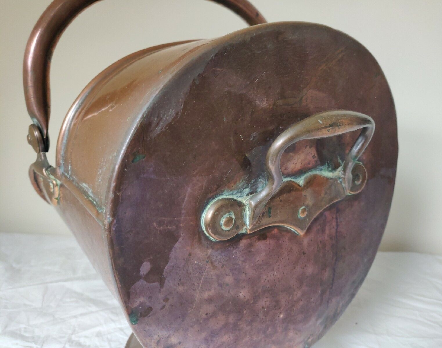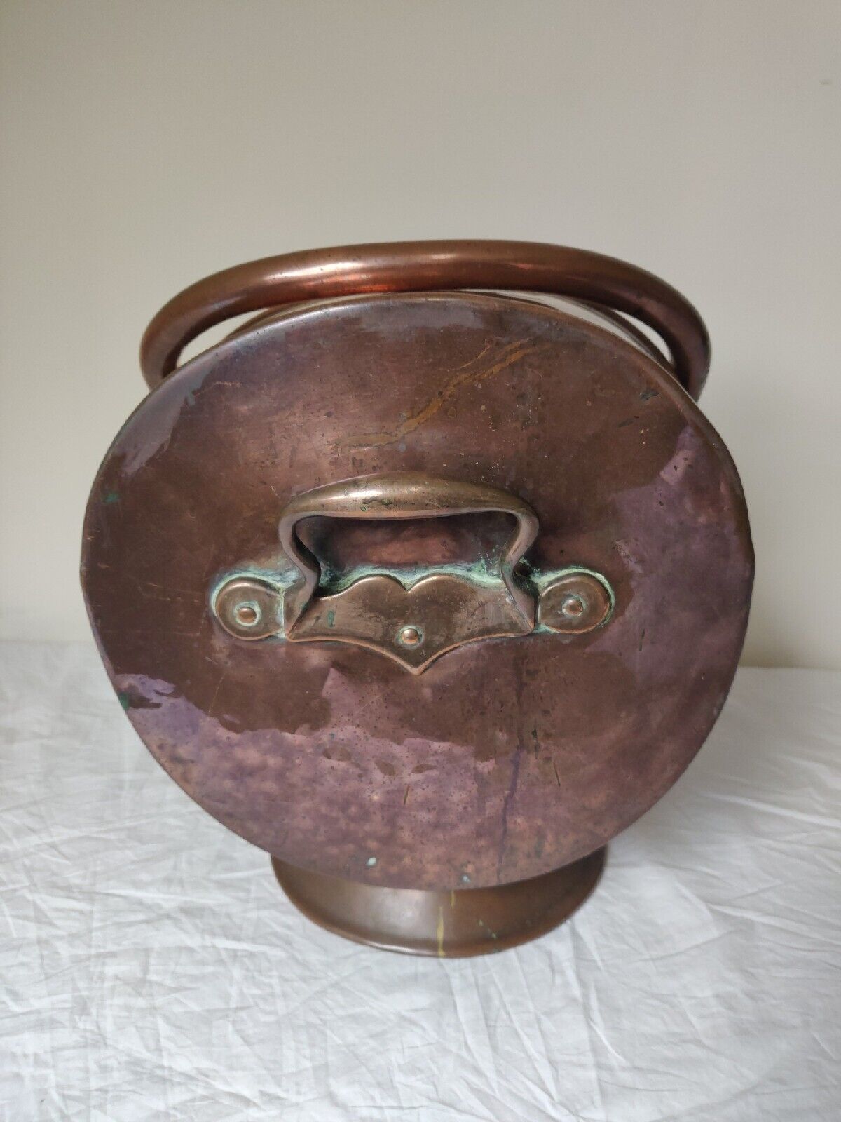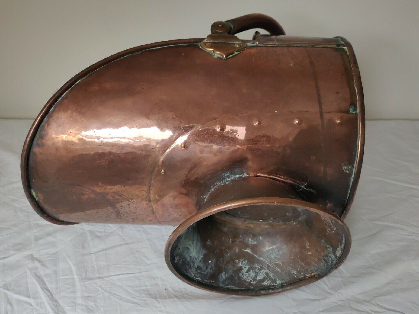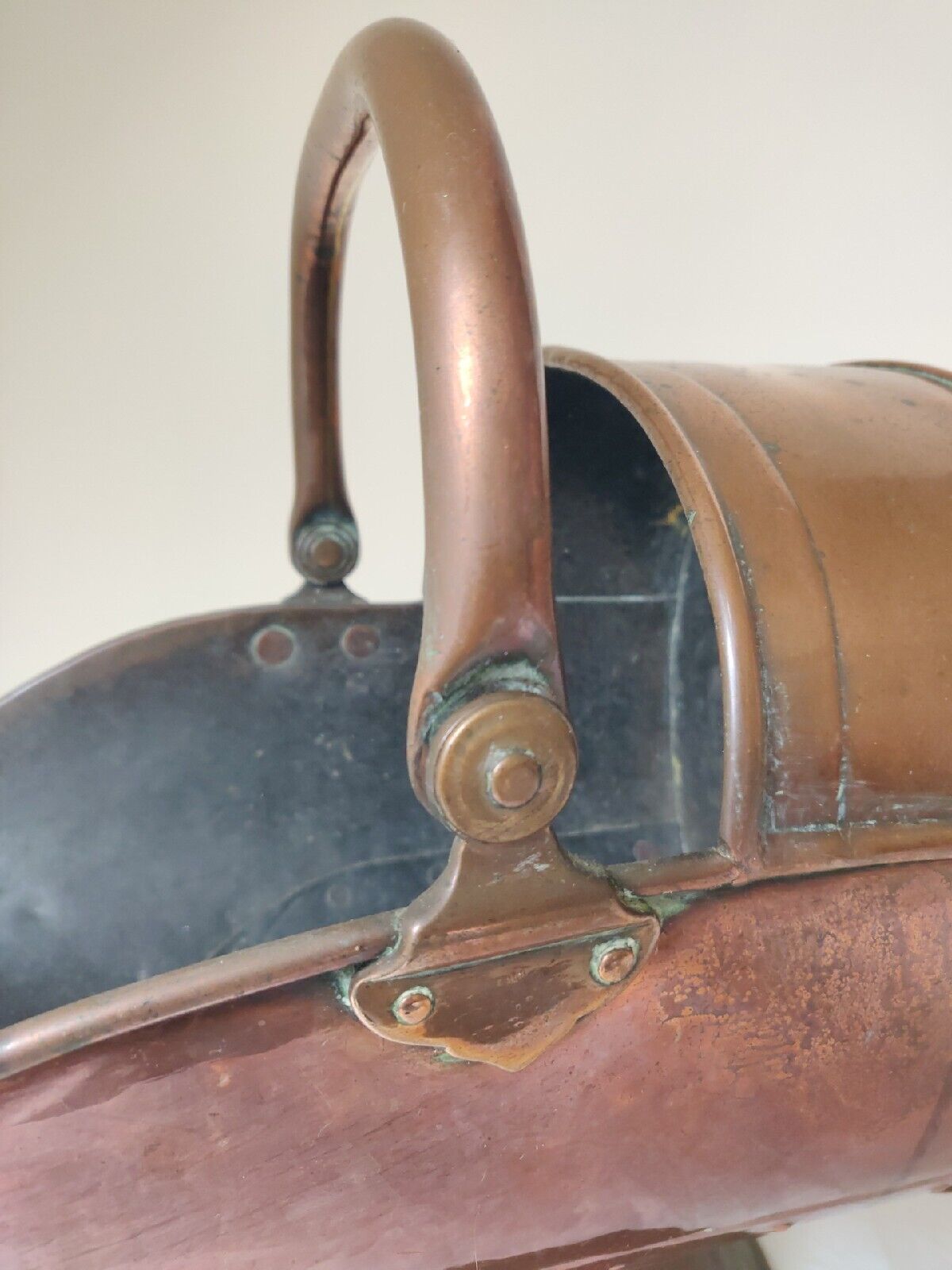 Copper Riveted Coal Helmet Scuttle With Handle Victorian Postage Available