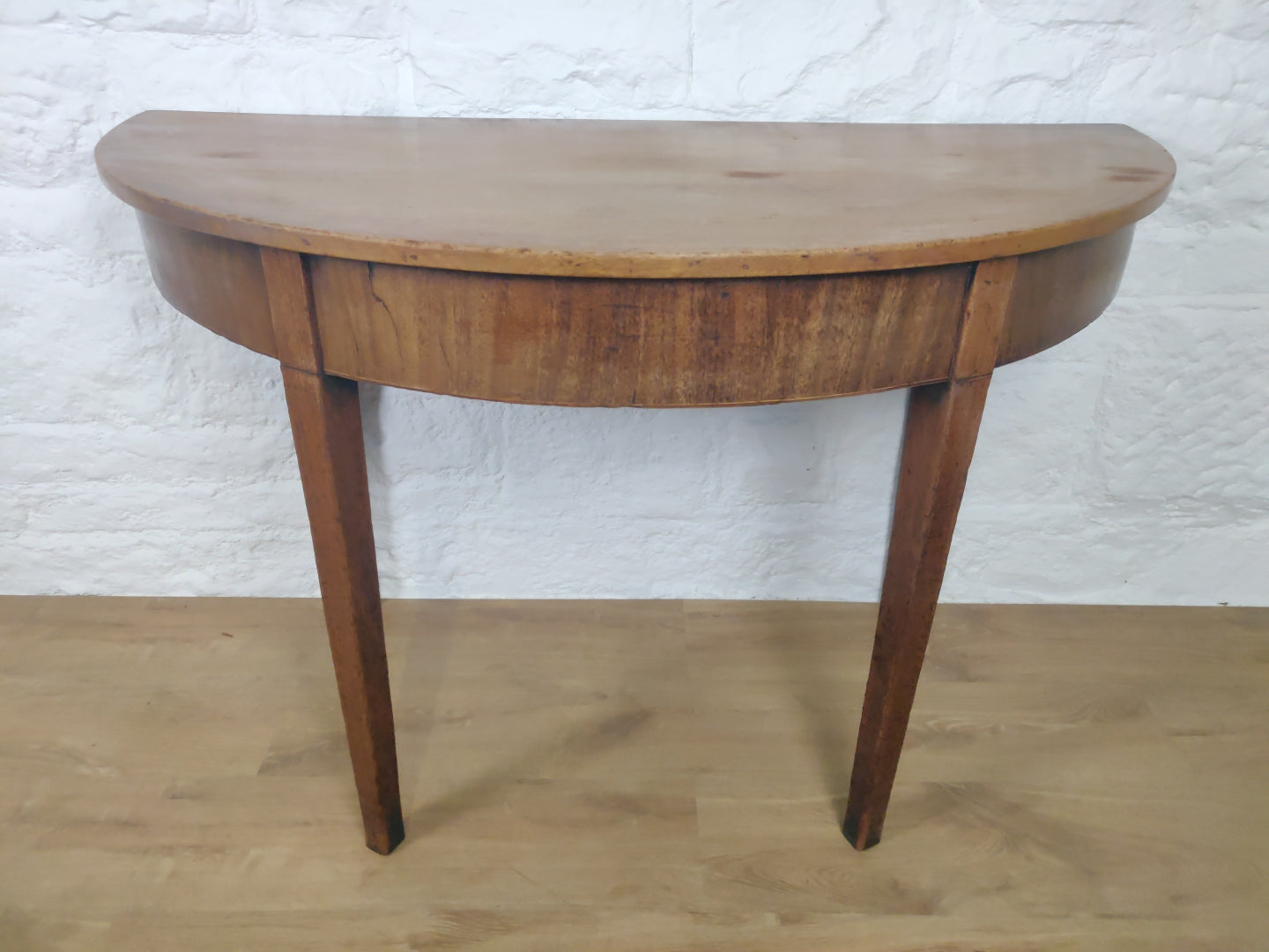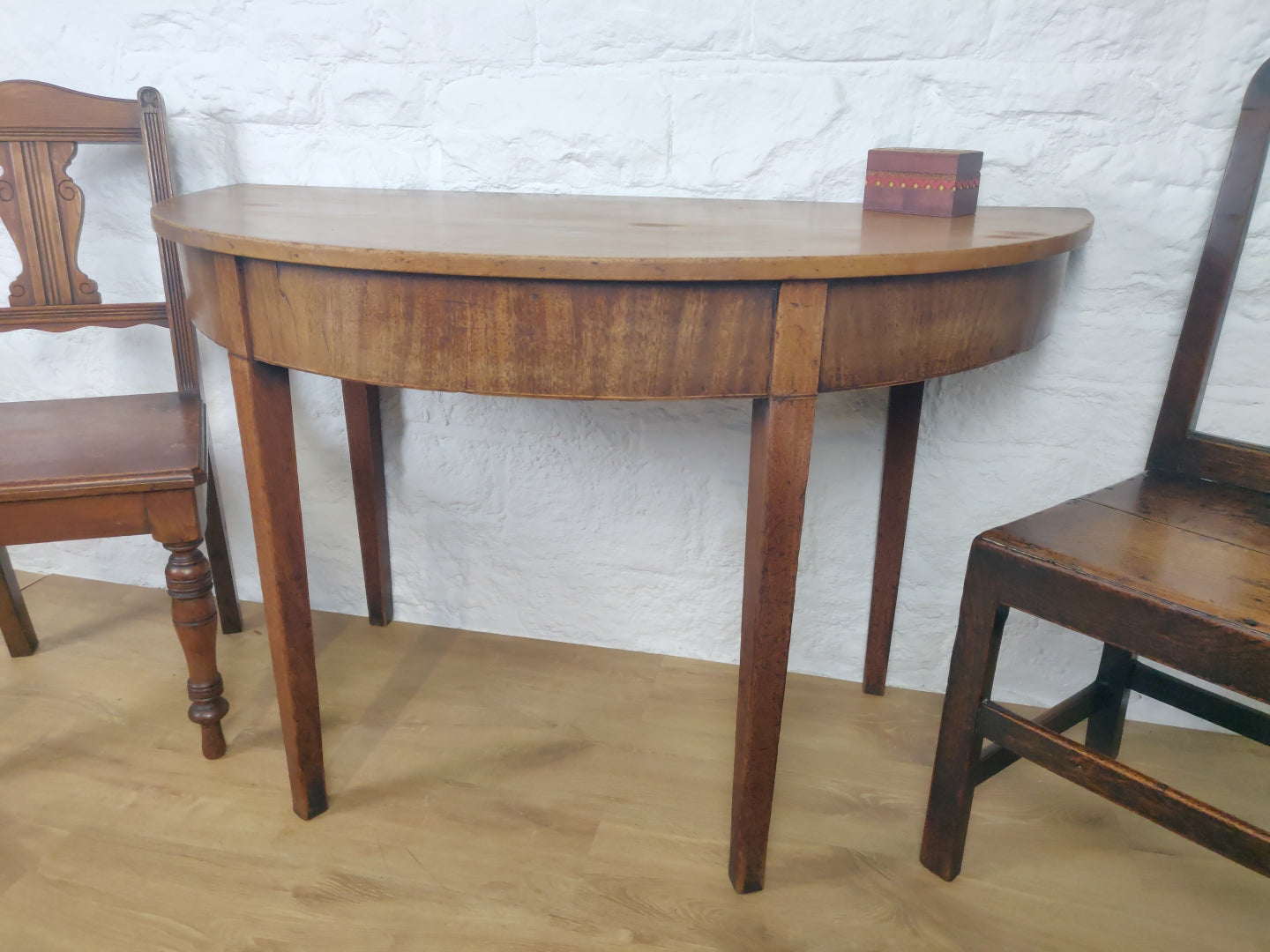 This Antique Circa 1800-1849 Demi Lune side table is a stunning piece of Georgian period furniture, adding a touch of elegance to any room in the house, and complement any country decor.