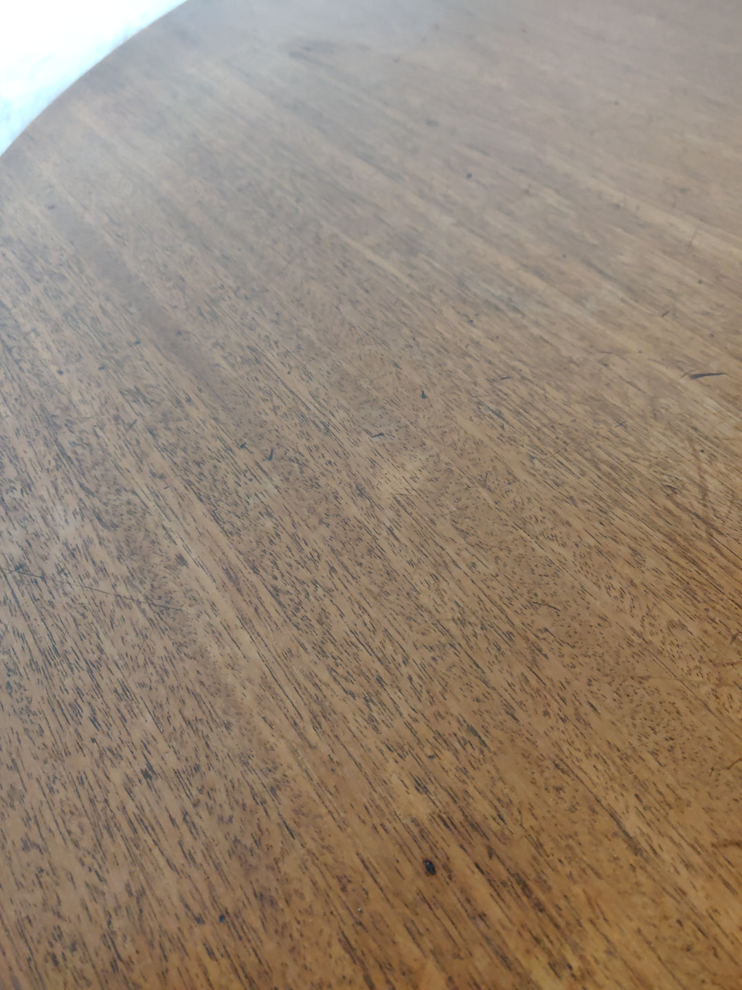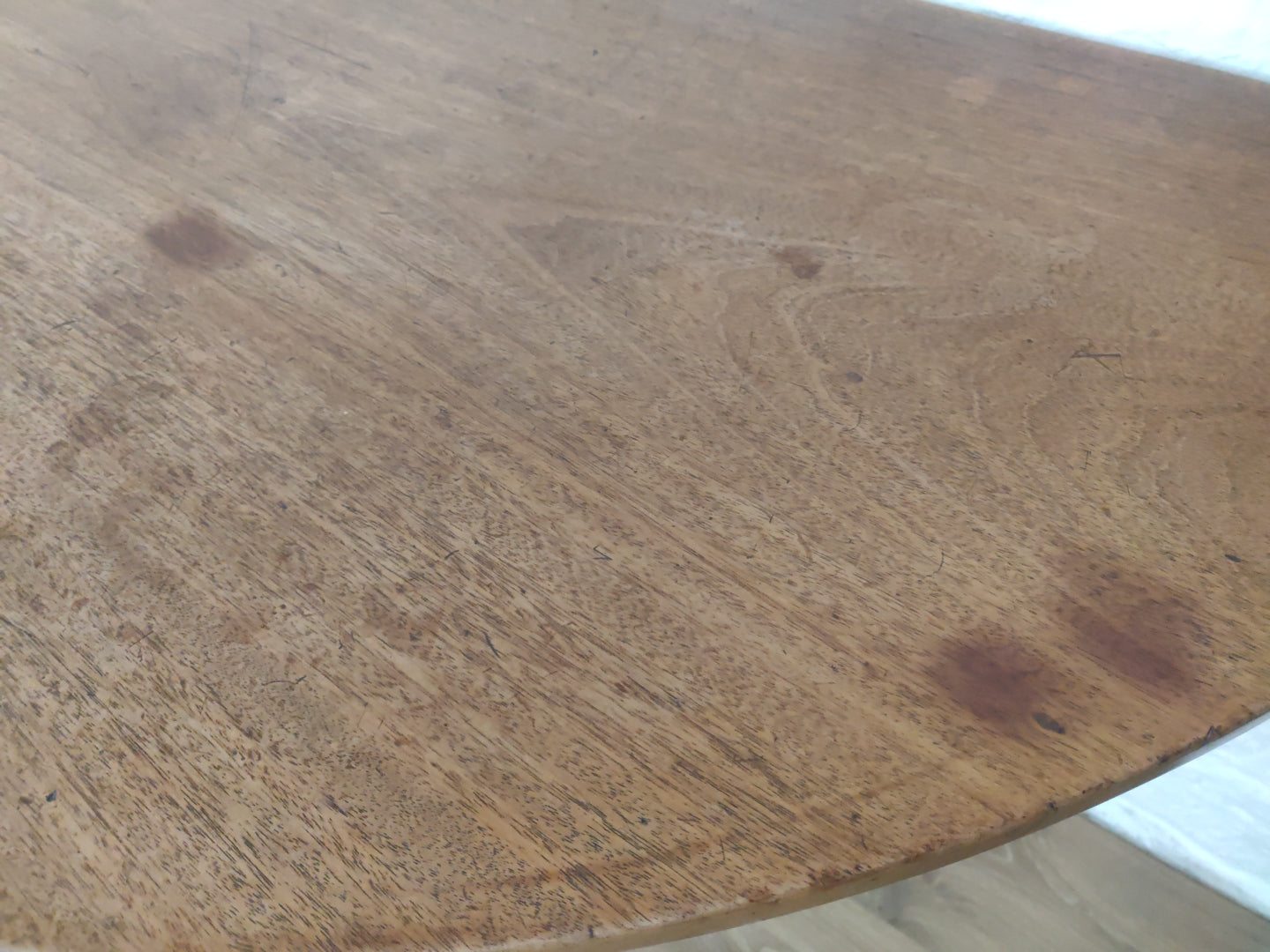 Overall this oval side table is in good antique condition with signs of use, veneer wear, and marks to the tabletop from years of use (as photographed).