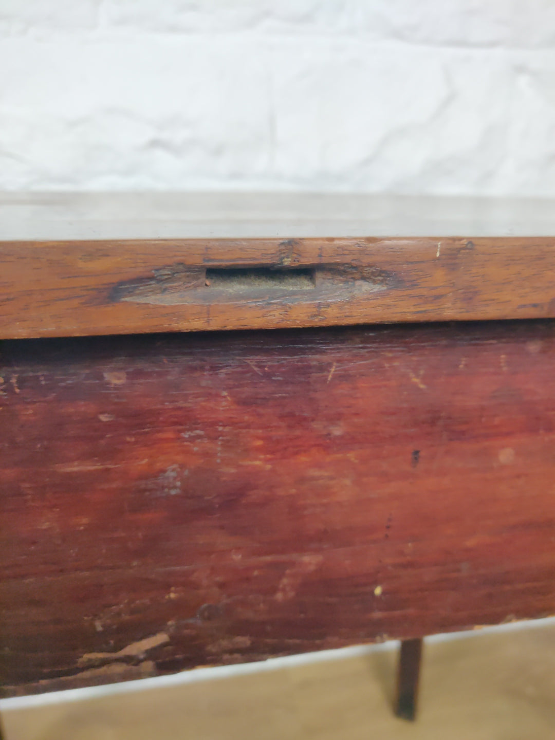 There is a small crack to the table front, and a chip of the veneer to the side (as photographed).