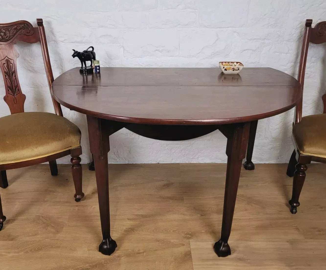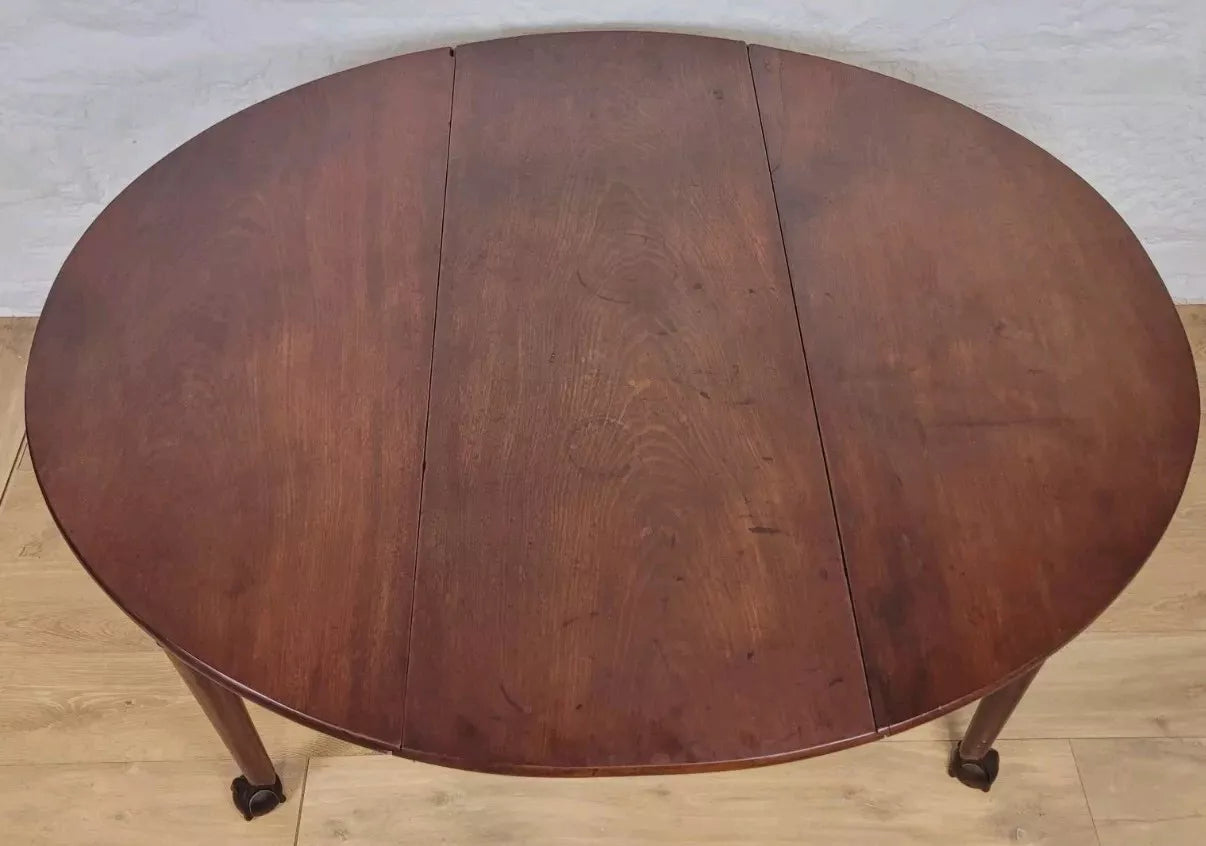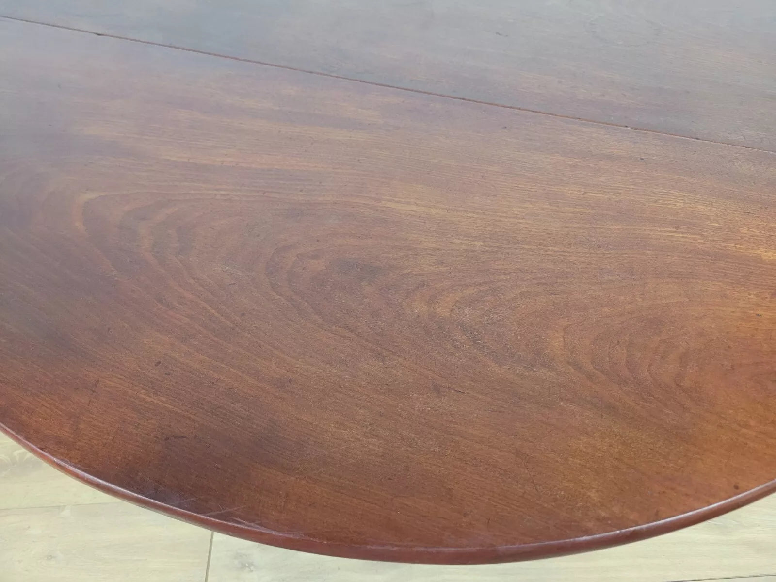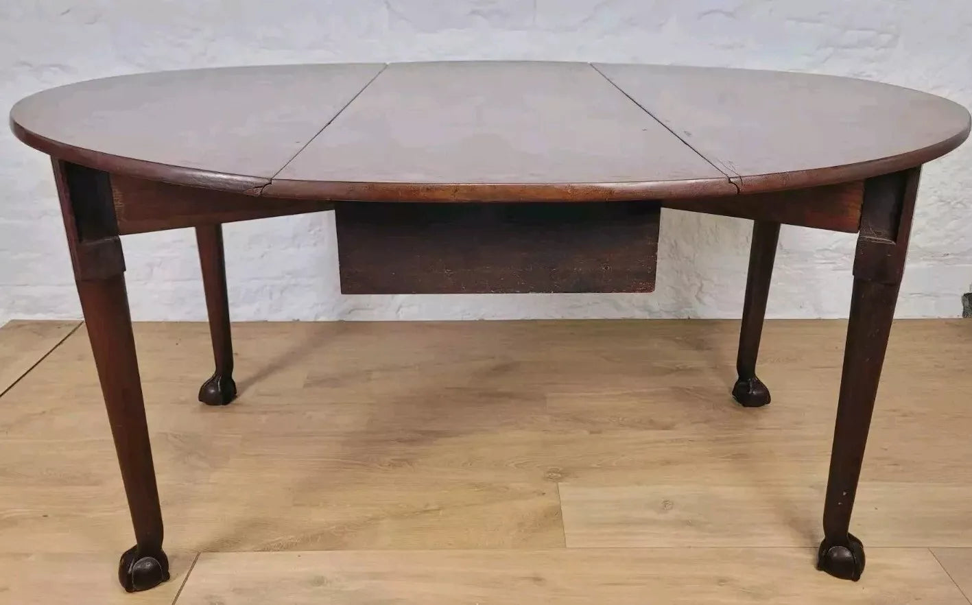 With a wonderful thick oval shaped tabletop that is held open by two drop leaves to either side and supported by an elegant gate legged design.