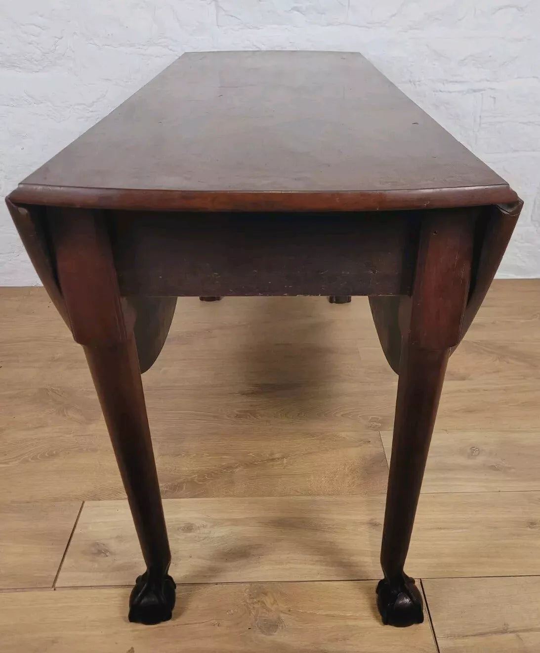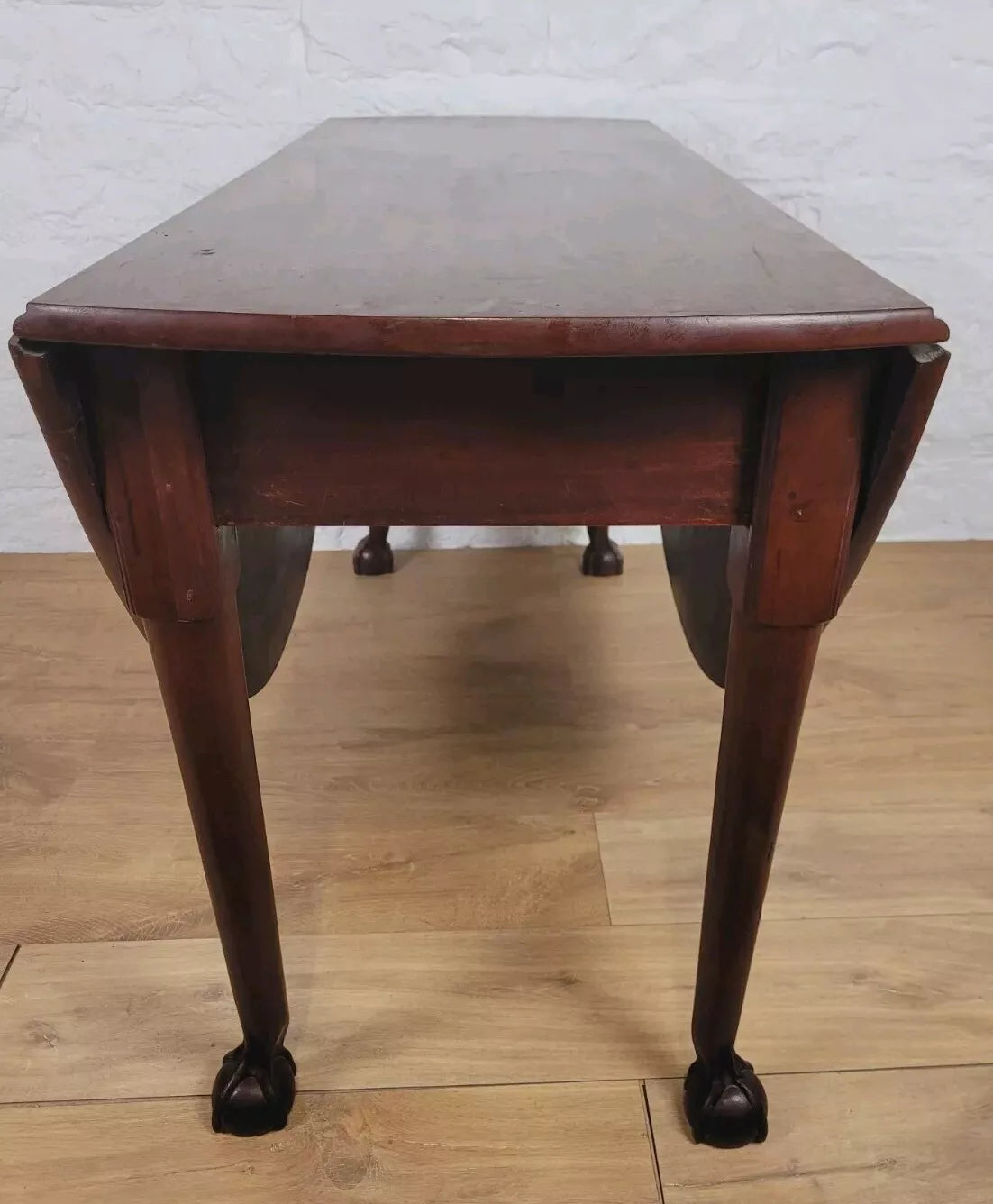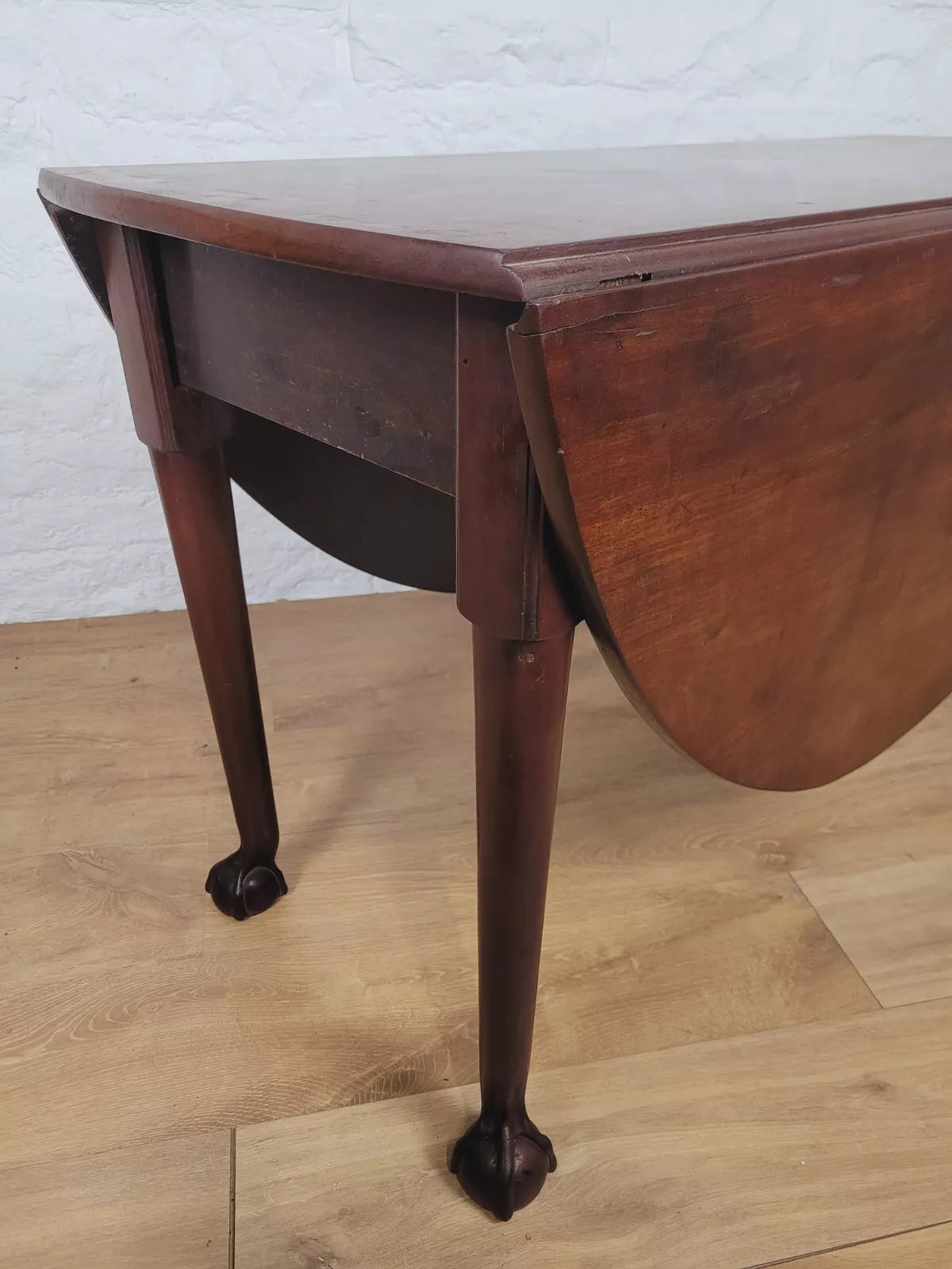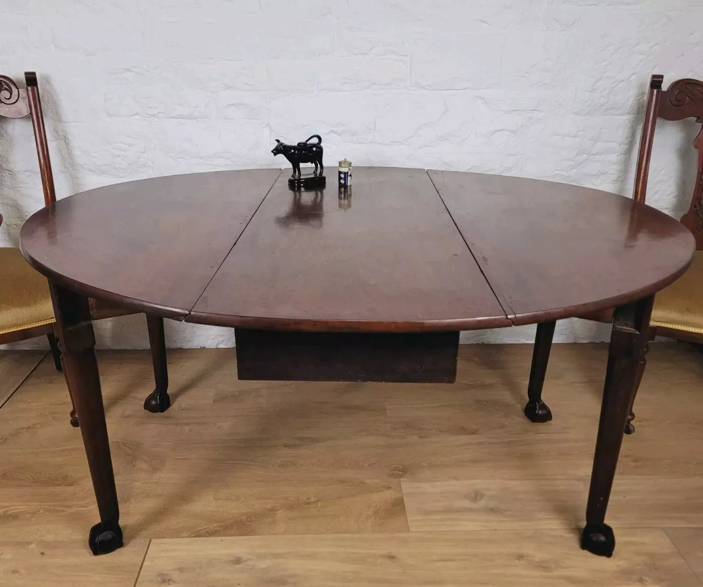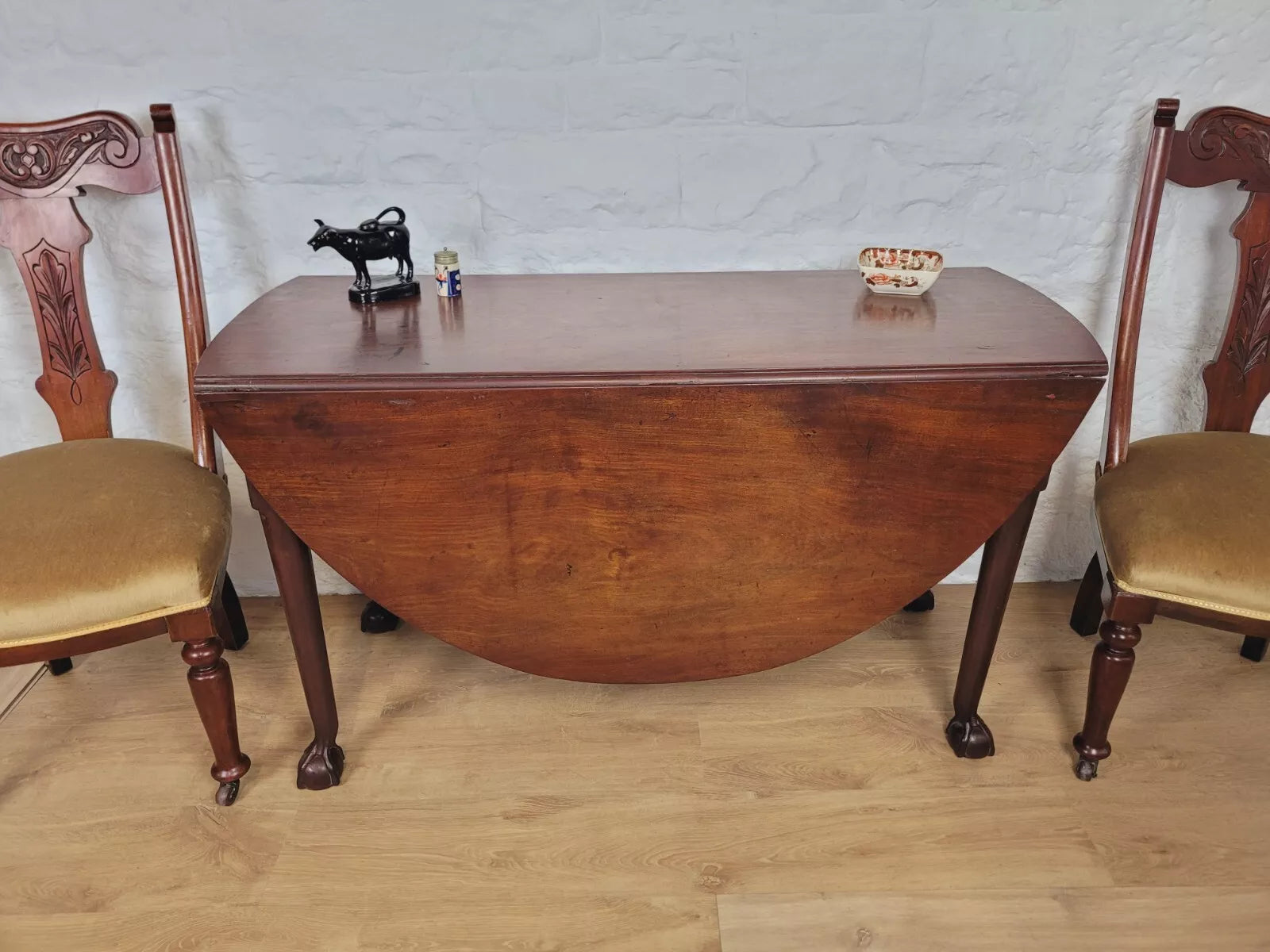 With a wonderful thick oval shaped tabletop that is held open by two drop leaves to either side and supported by an elegant gate legged design.