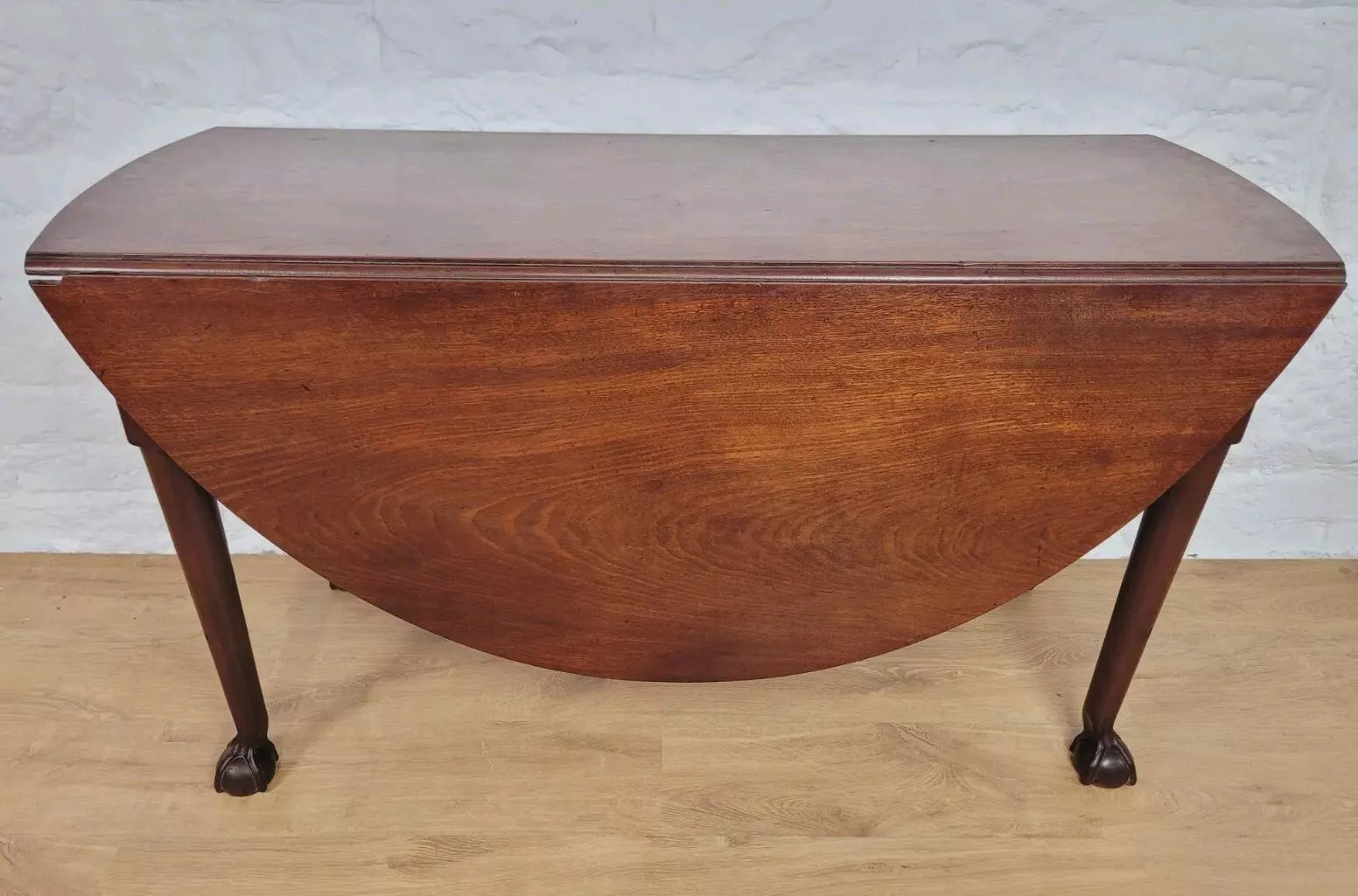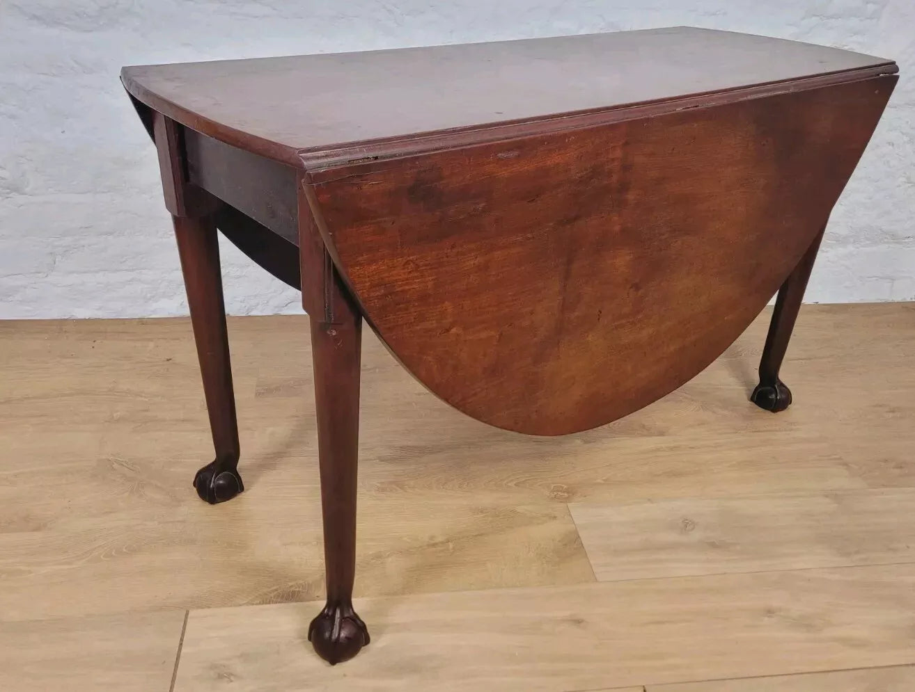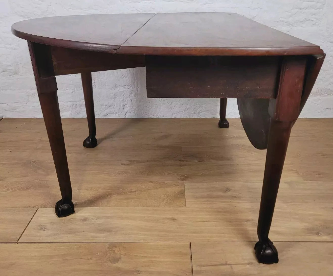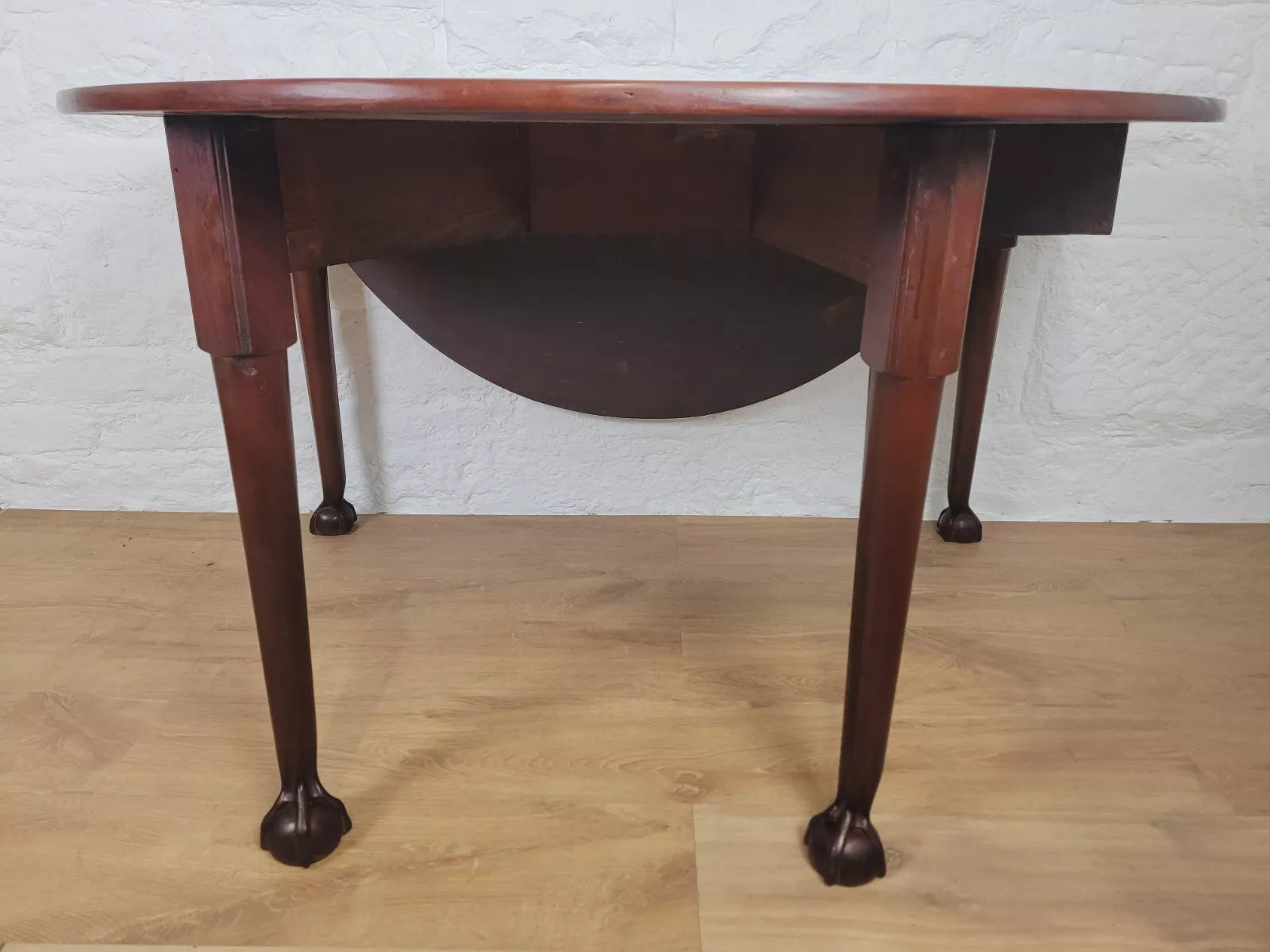 With a wonderful thick oval shaped tabletop that is held open by two drop leaves to either side and supported by an elegant gate legged design.