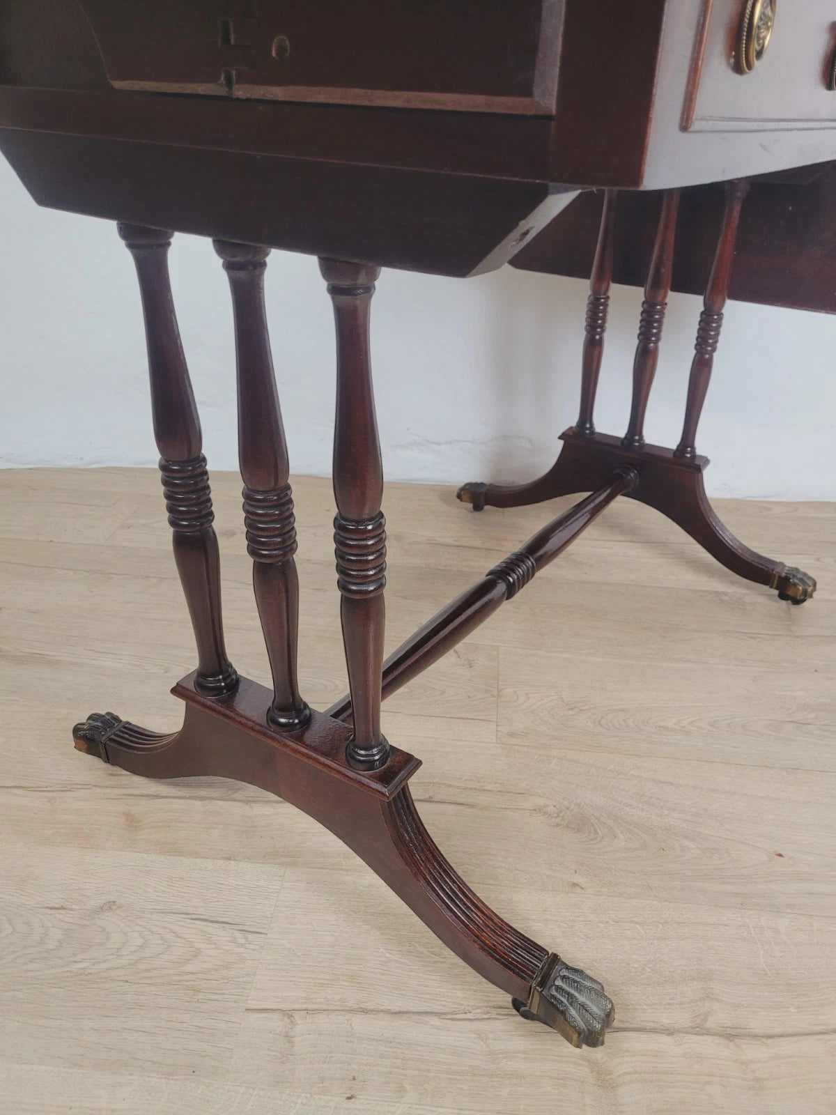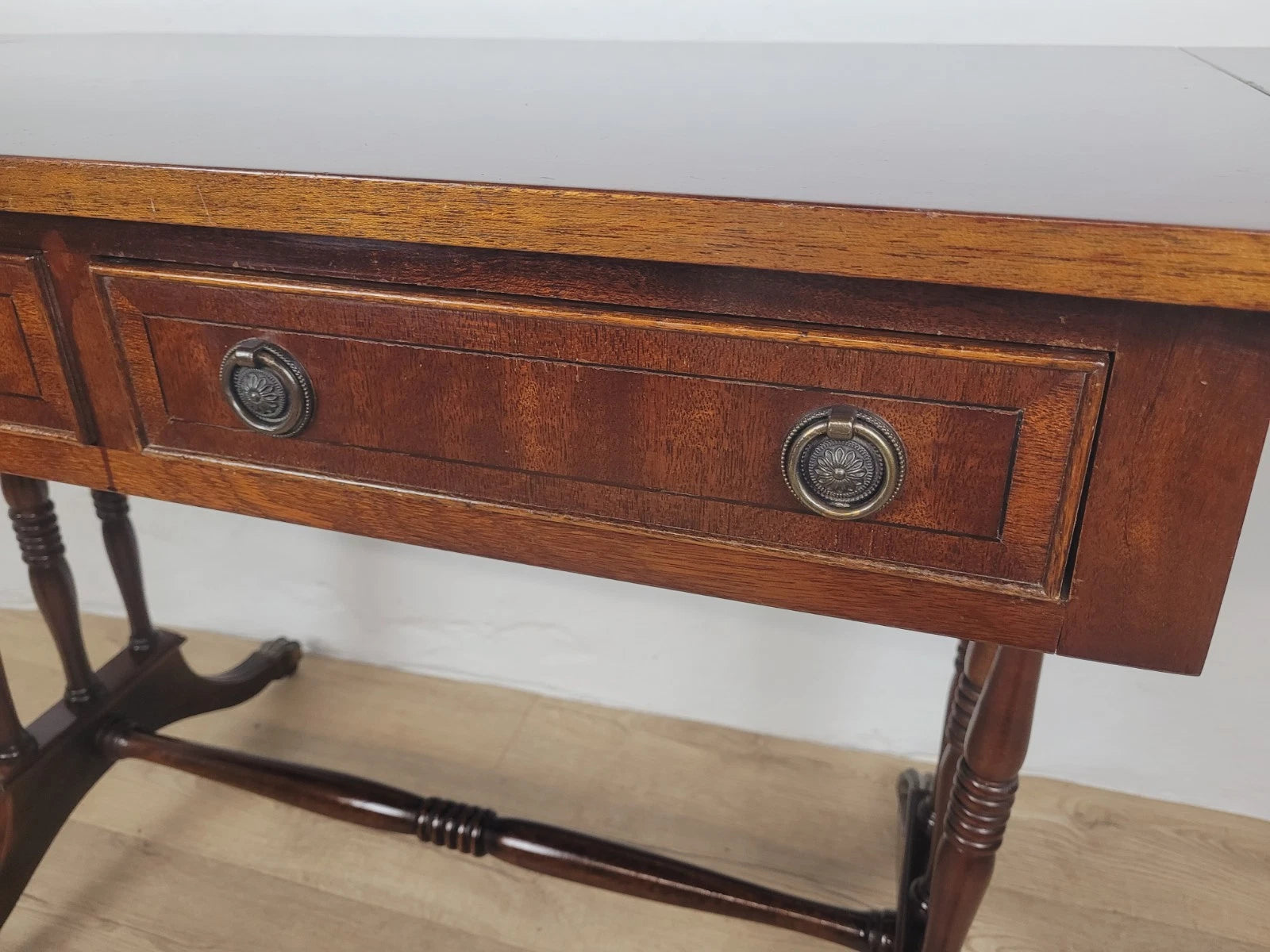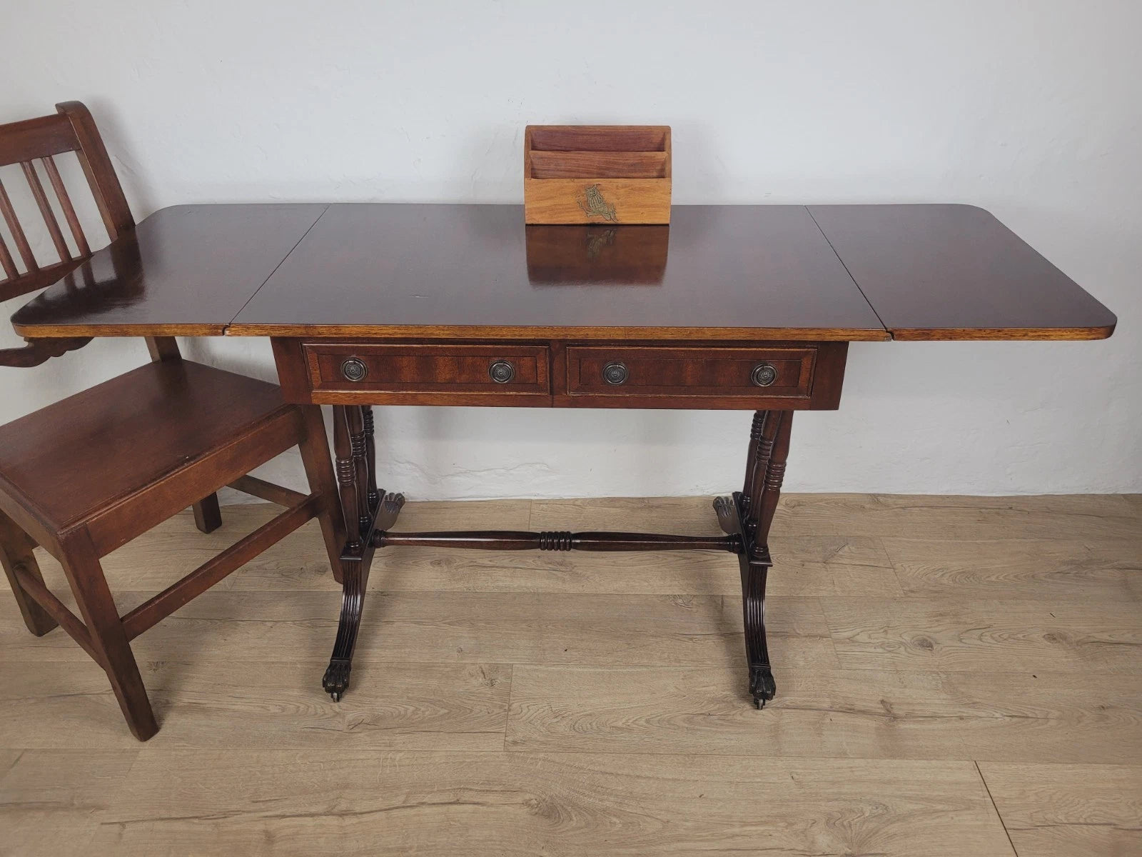 Drop Leaf Side Table Drawers Mahogany Castors Vintage 1940s Delivery Available