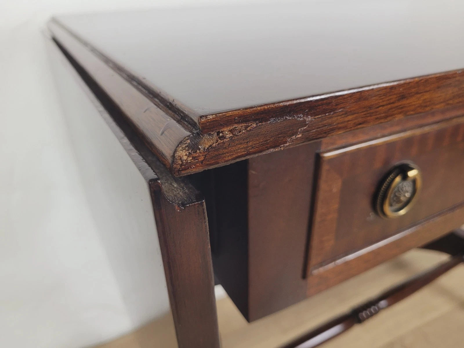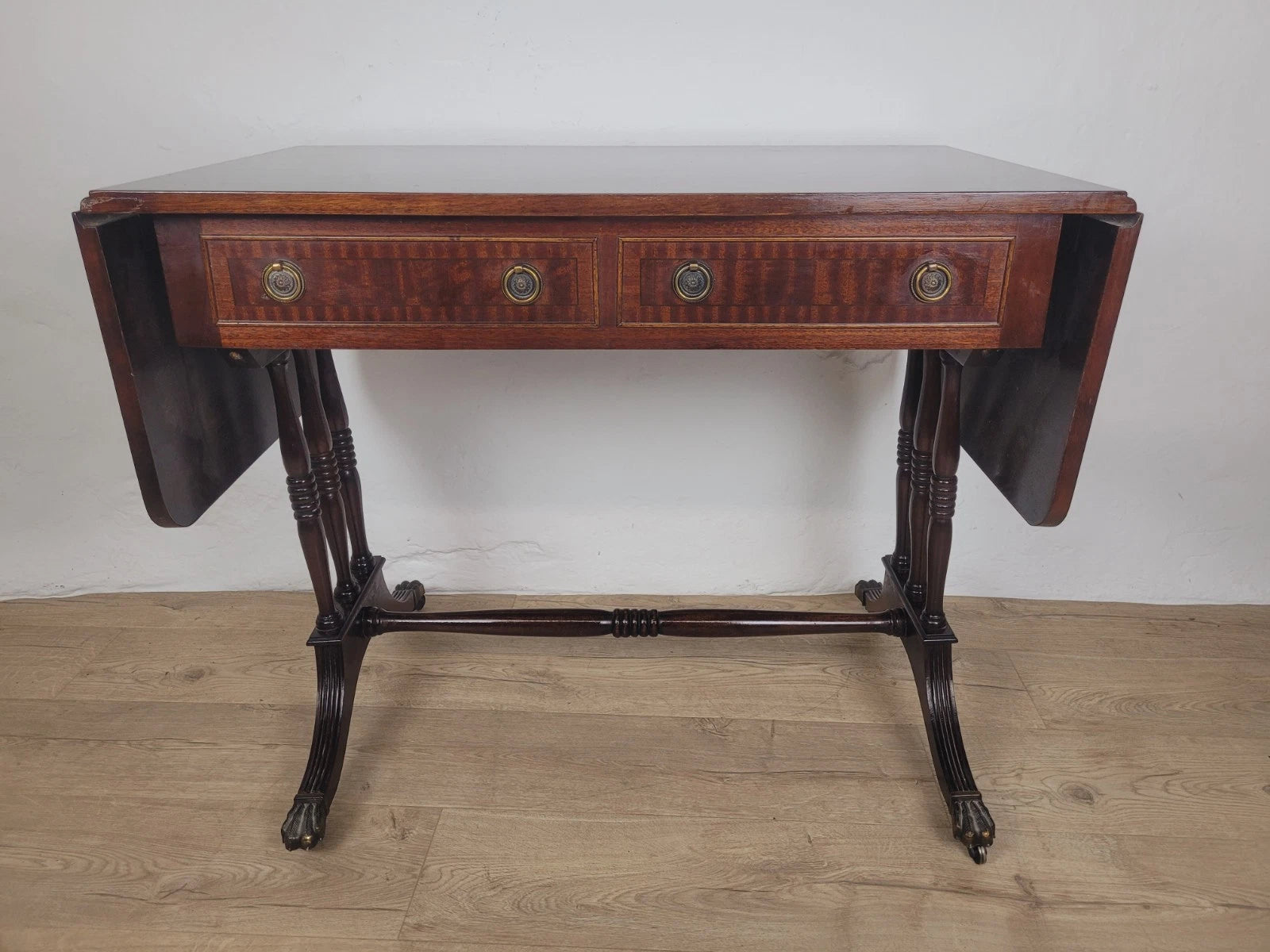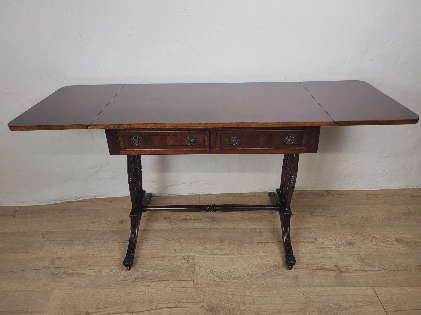 Drop Leaf Side Table Drawers Mahogany Castors Vintage 1940s Delivery Available