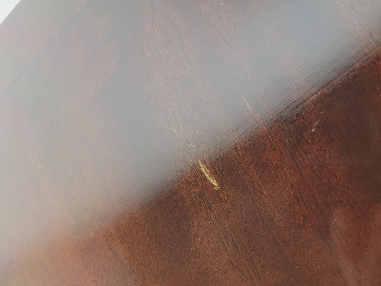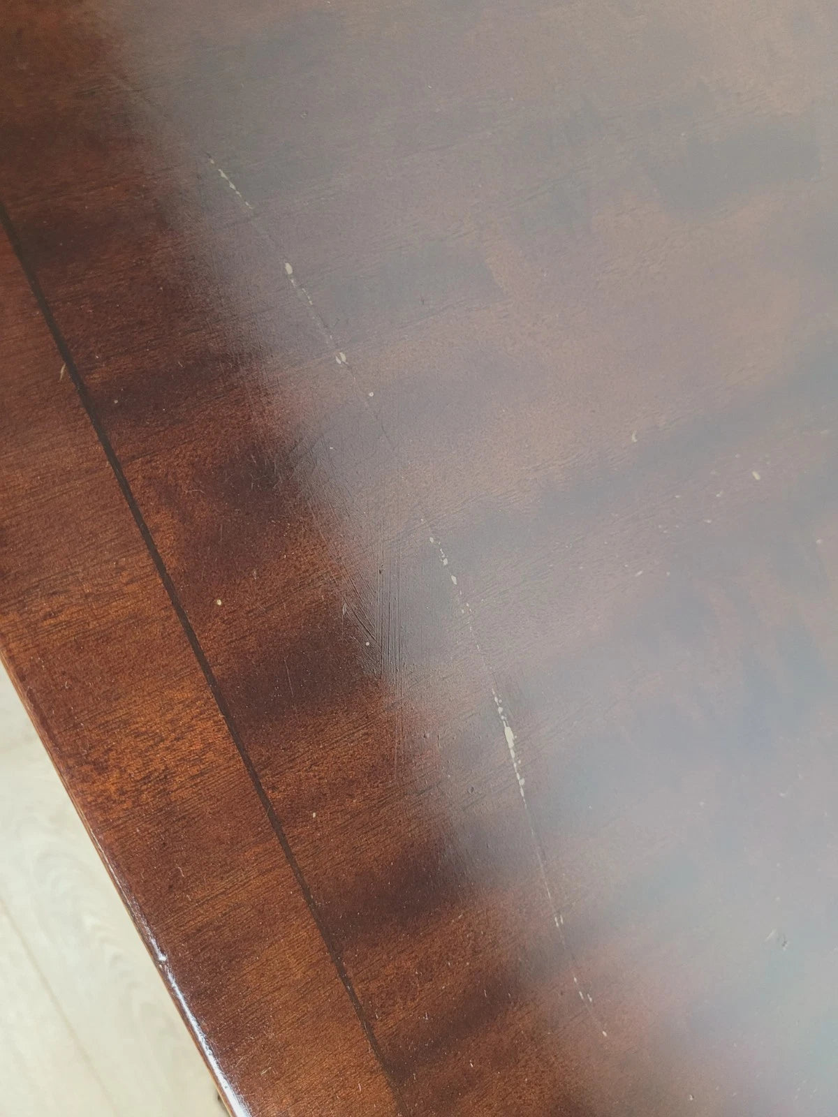 Overall, this antique side table is in great condition, with signs of use, scratches to the tabletop, and veneer wear, a very charming and useful piece of furniture (see photographs).There is a sign of historical veneer damage to the back of the tabletop corner (see photograph).