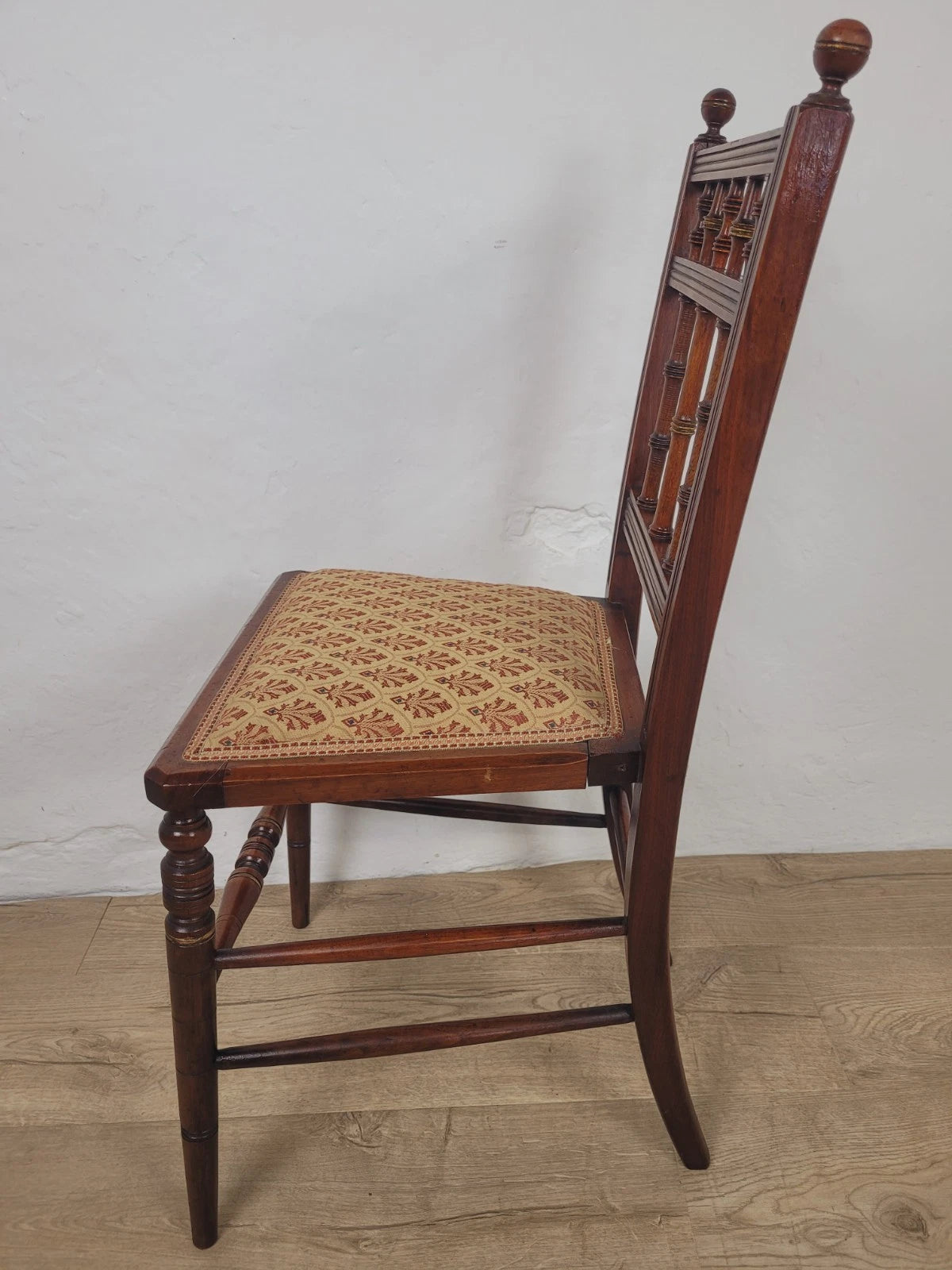 Edwardian Bedroom Chair Spindle Back Floral Upholstery Antique Postage Available
