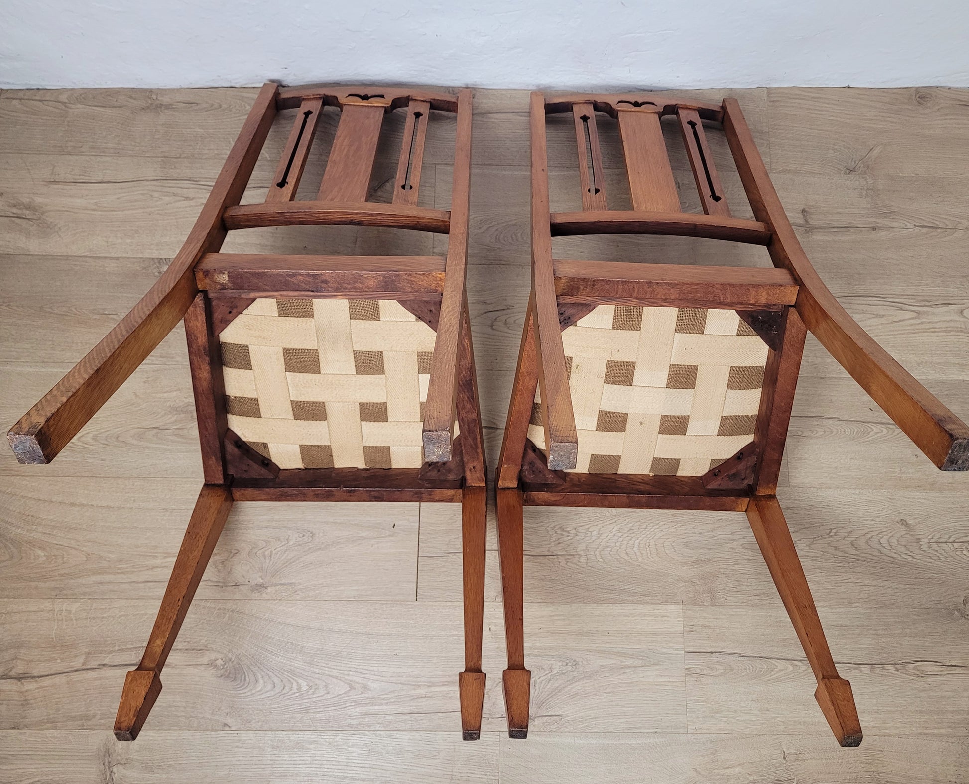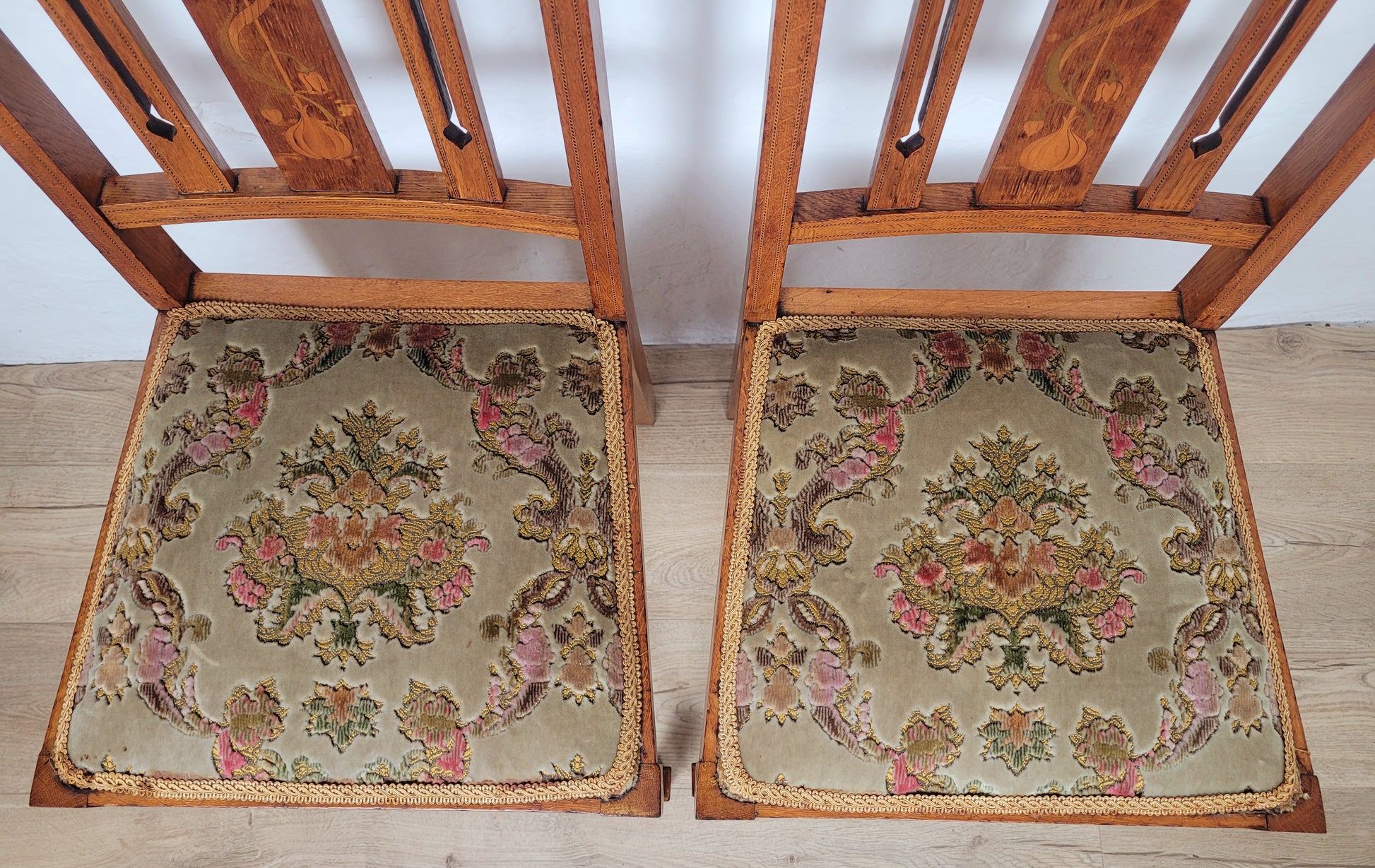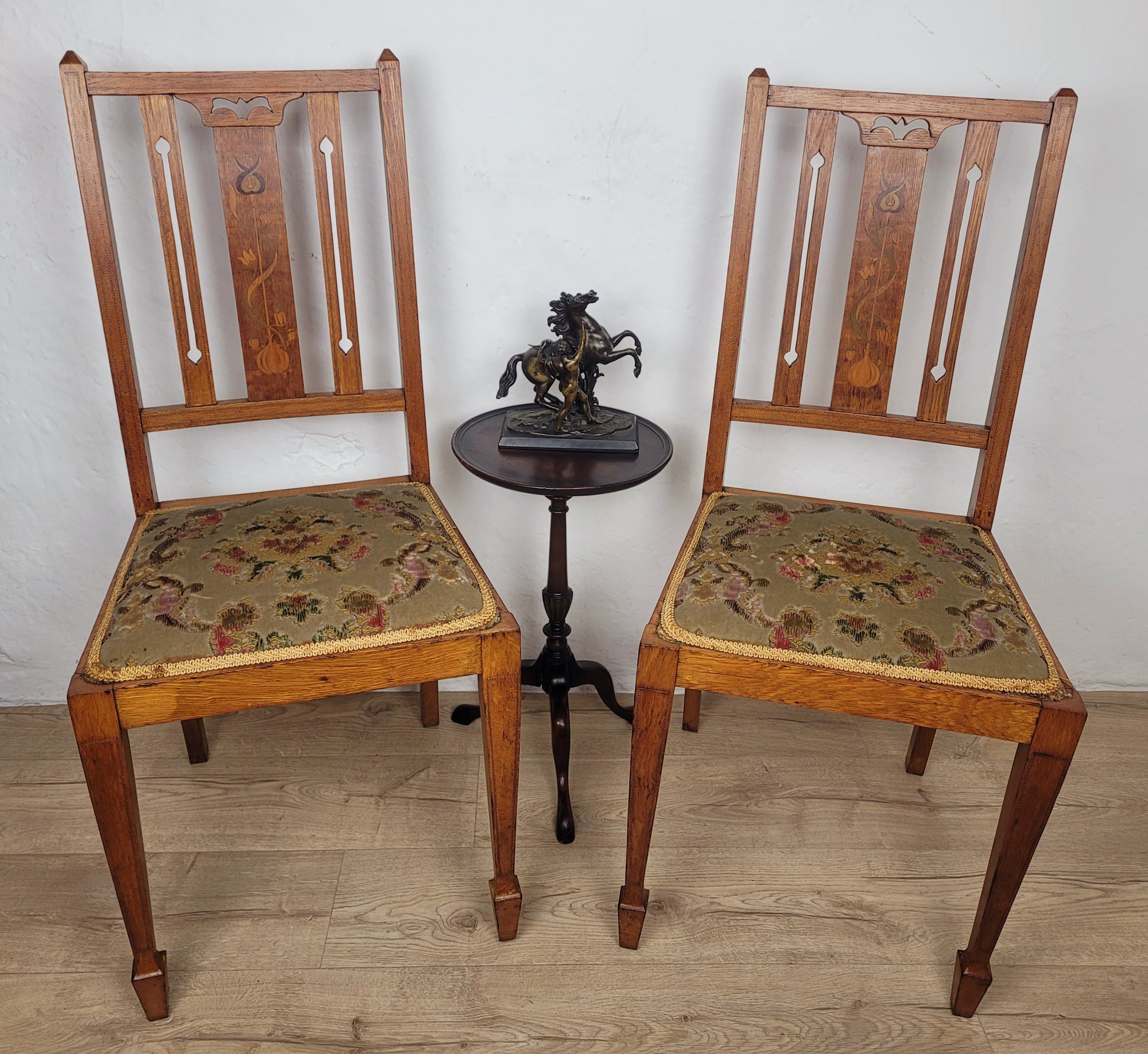 Edwardian Bedroom Chairs Pair 1910s Oak Inlaid Floral Postage Available