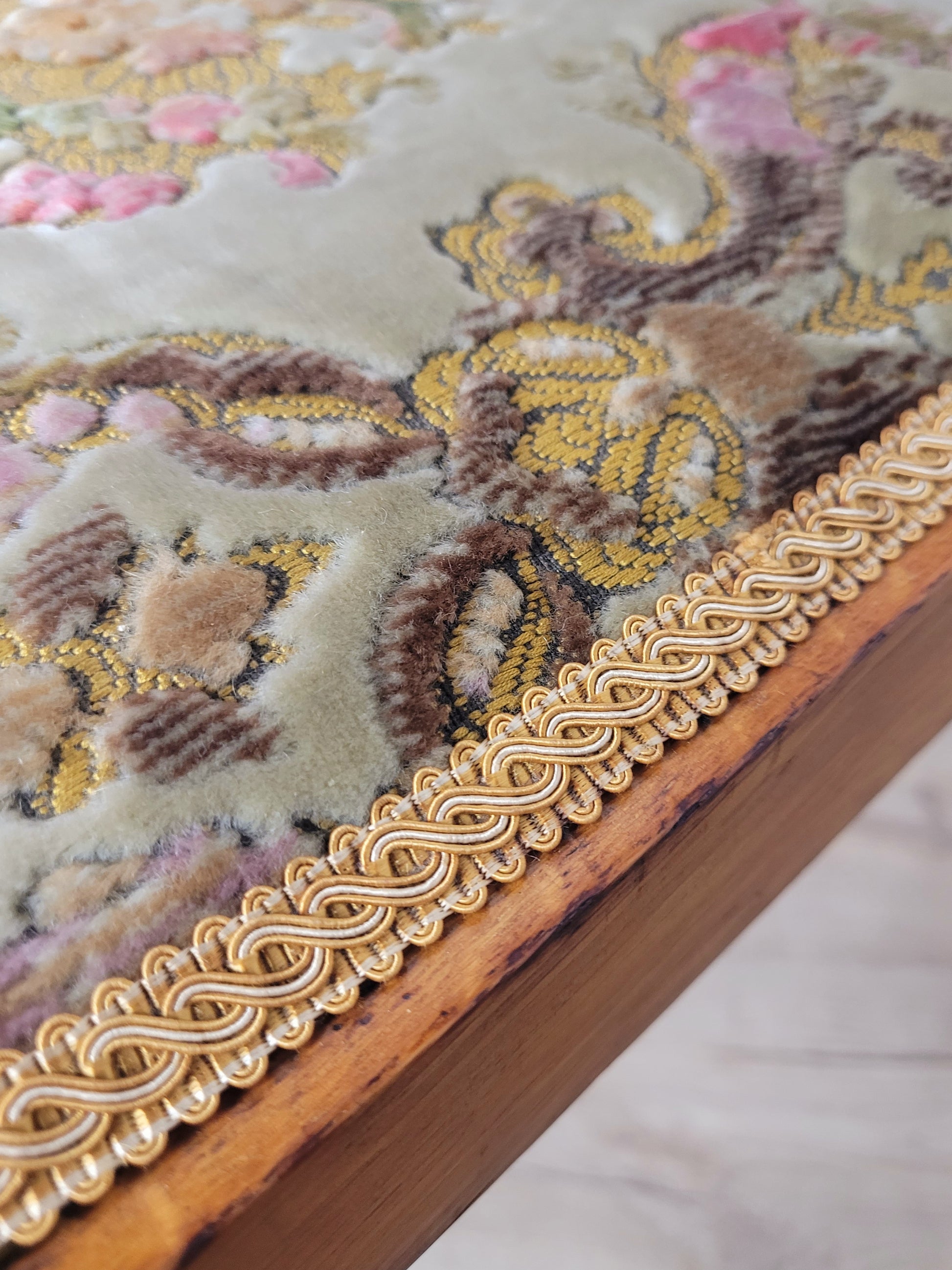 The upholstered brocade slightly exposes the corners of the chairs upholstery (see photographs).