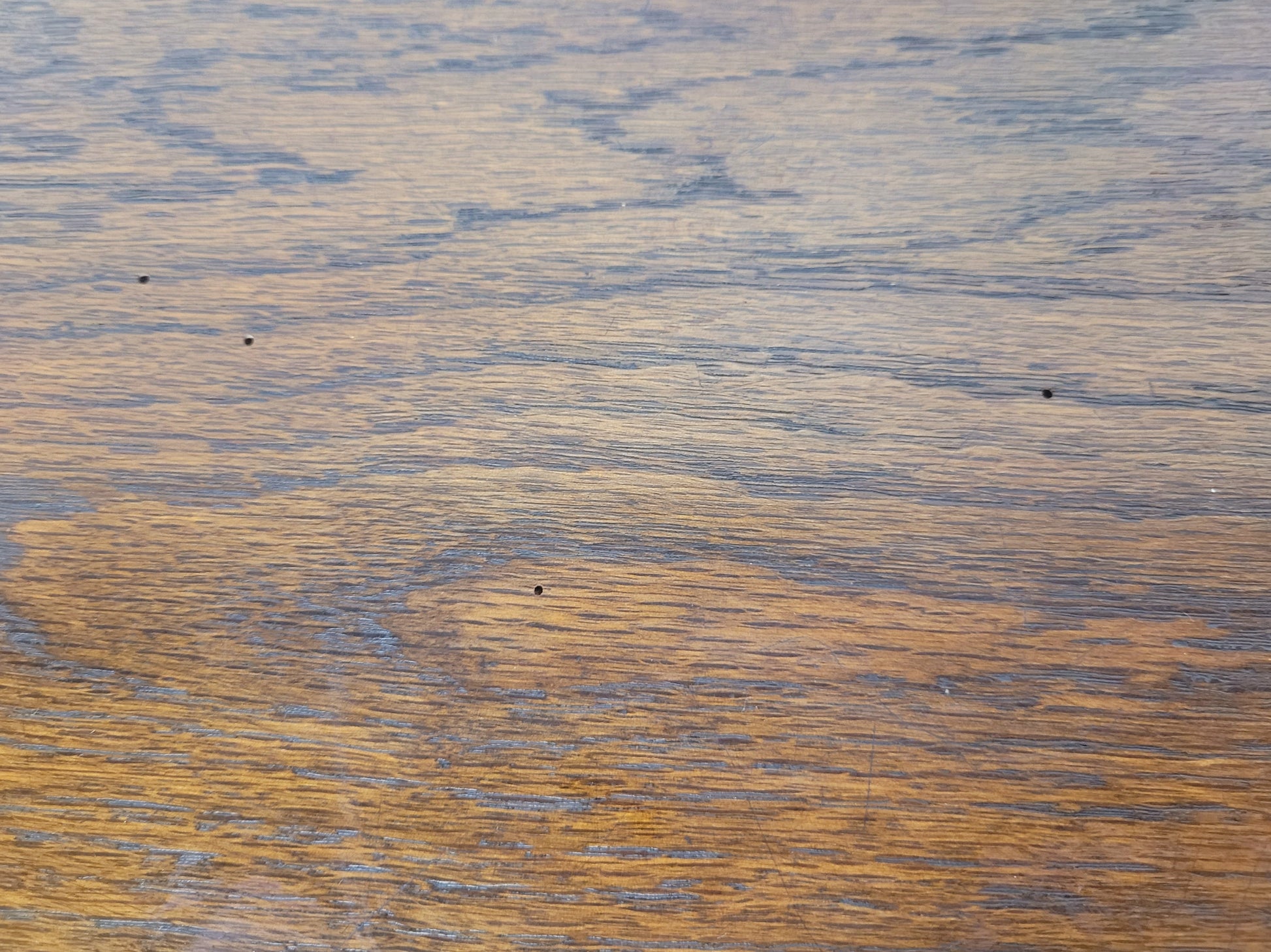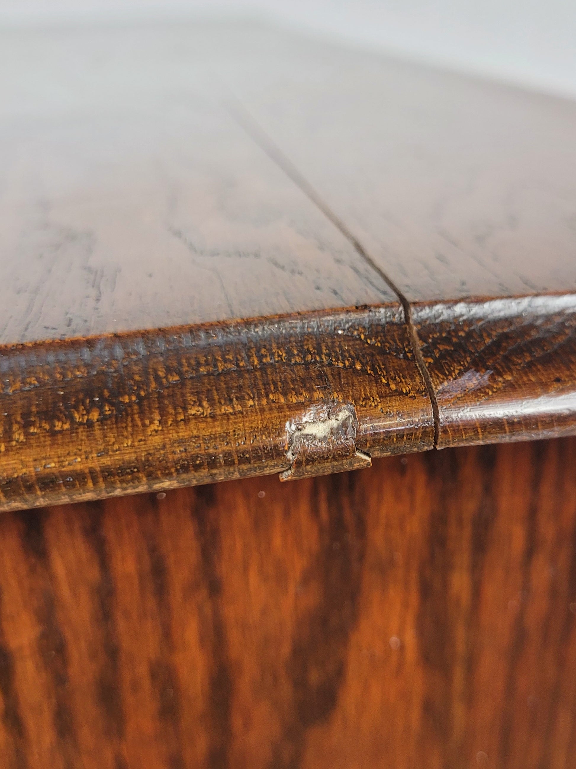 The chest top has a slight split between the planks, where the front side sits slightly higher than the back side (see photograph).