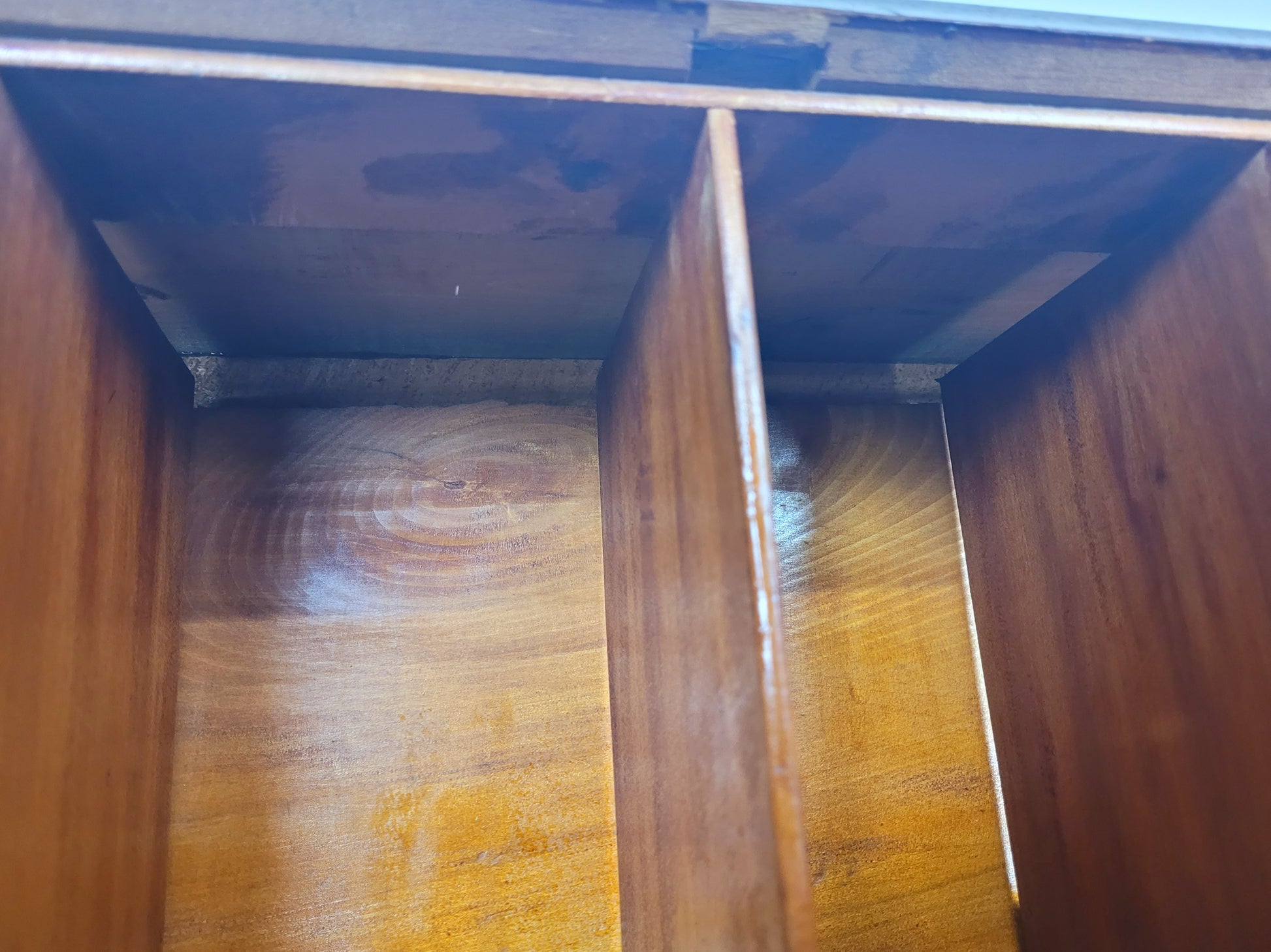 Leading down this bureau stands proudly on 4 solid figured feet, that are finished with a lower raised boarder.