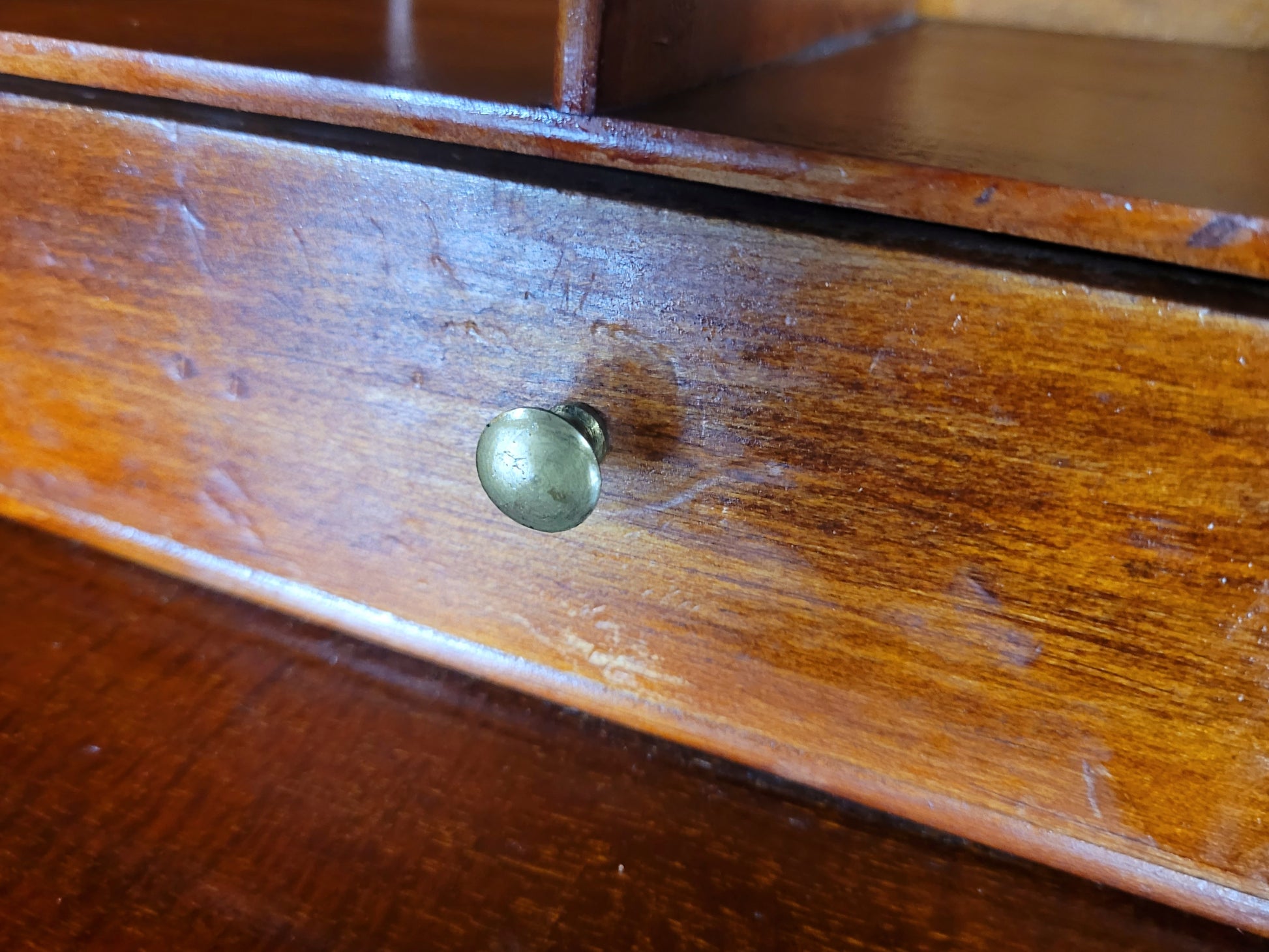 Overall, this writing bureau is in great antique condition, with signs of use, veneer wear and marks, as to be expected from years of historical use (see photographs).