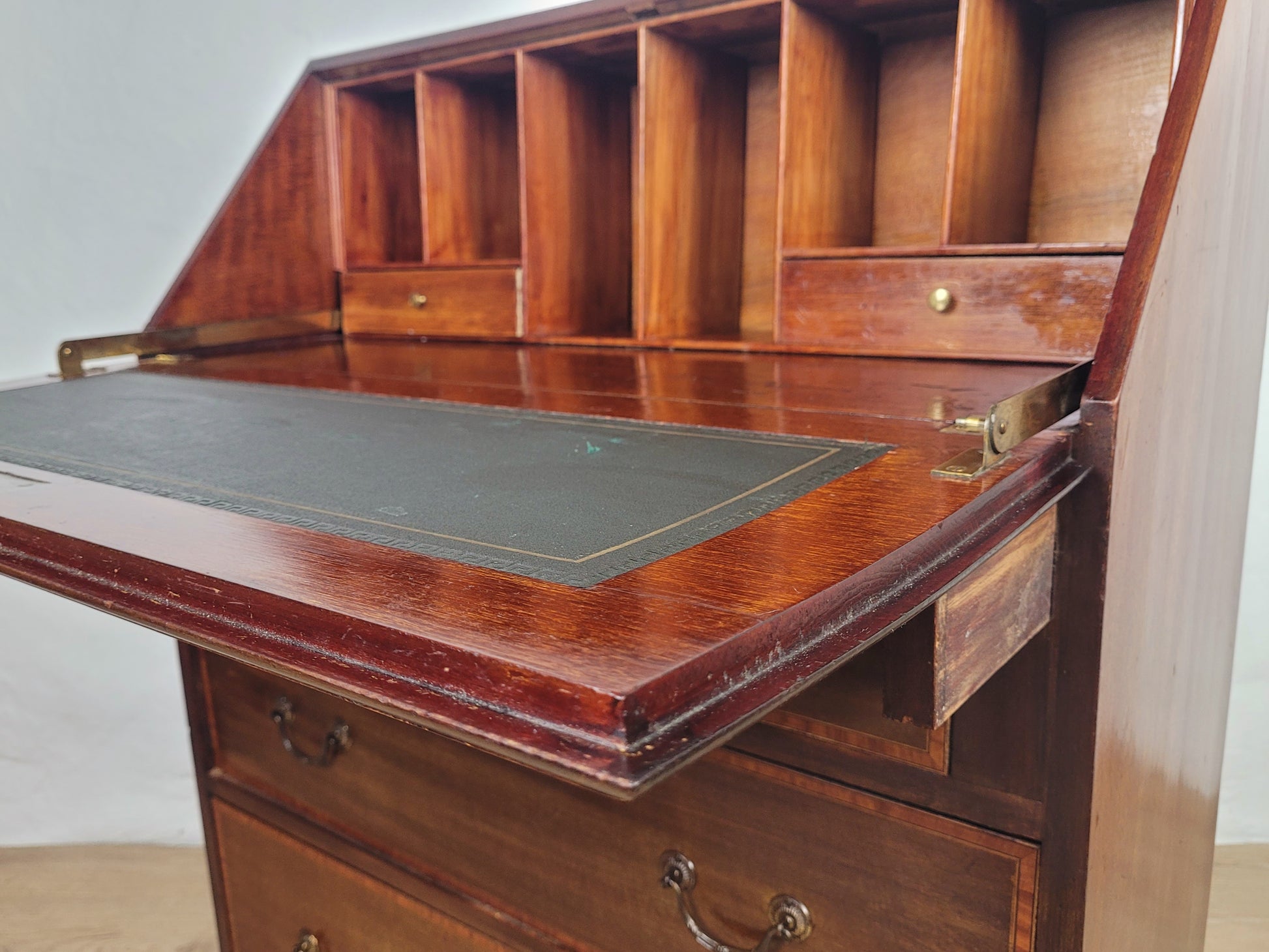 Edwardian Writing Bureau Desk Leather Crossband Antique 1910S Delivery Available