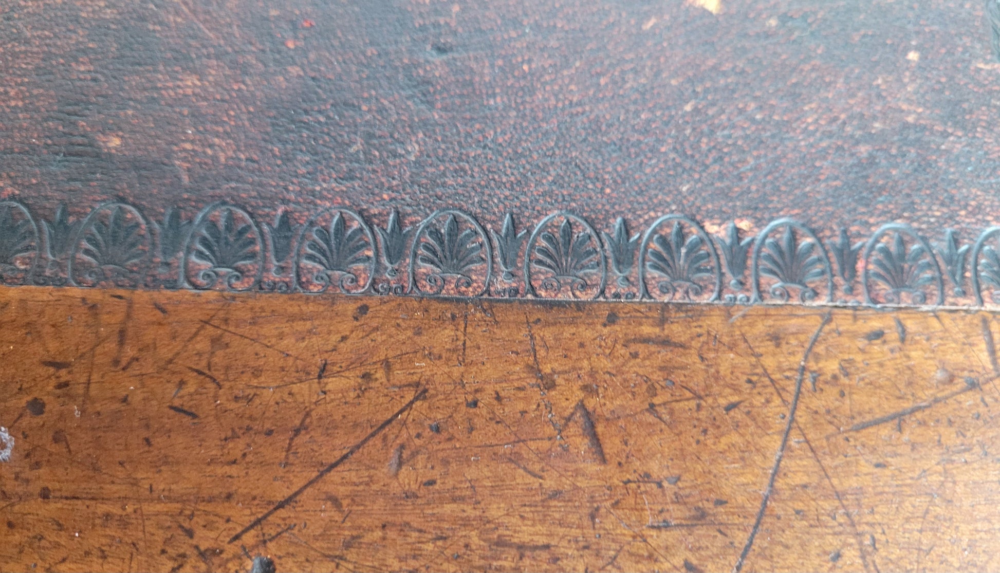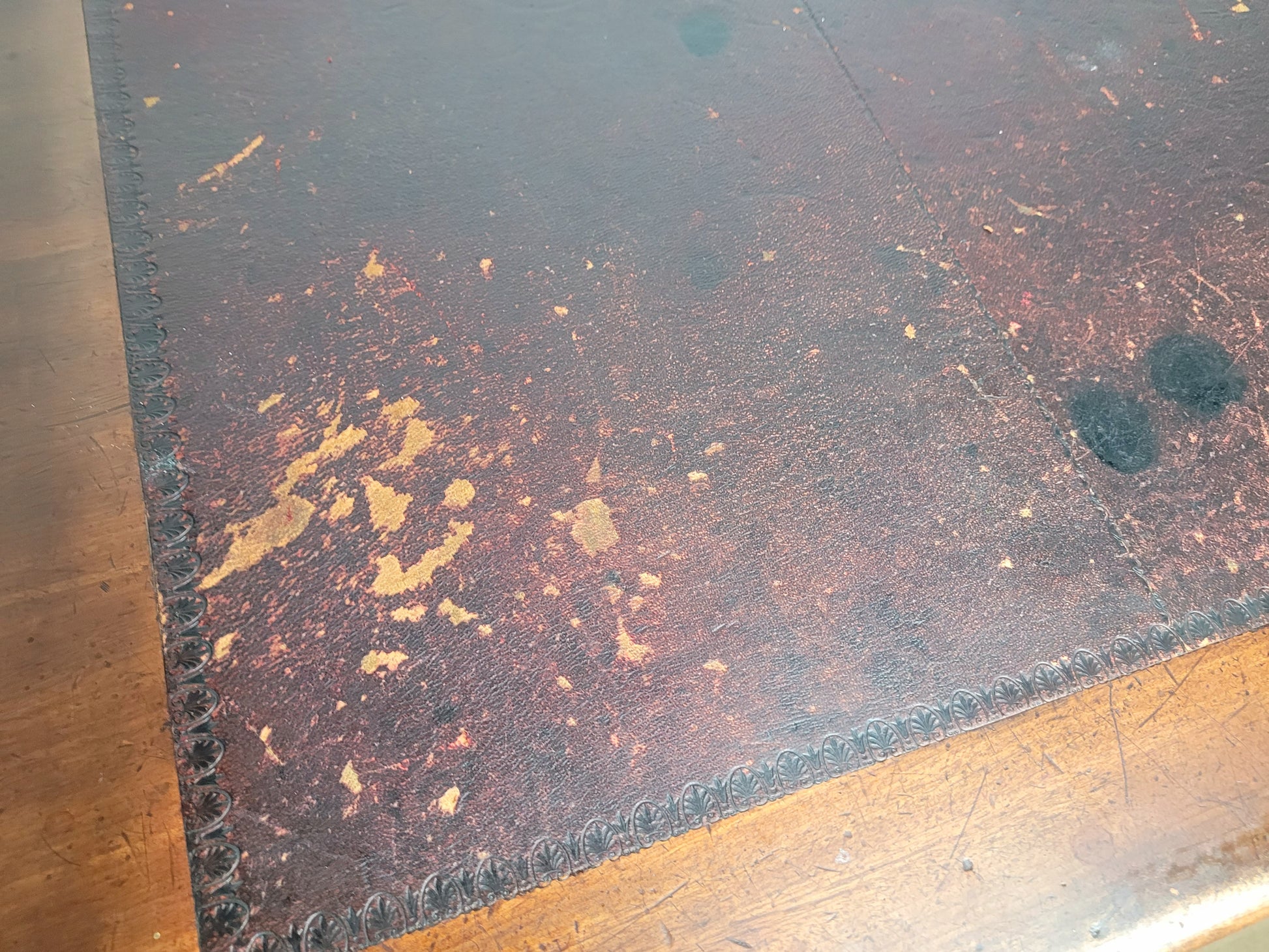There are historical signs of use, wear and historical damage to the leather tabletop (see photographs).