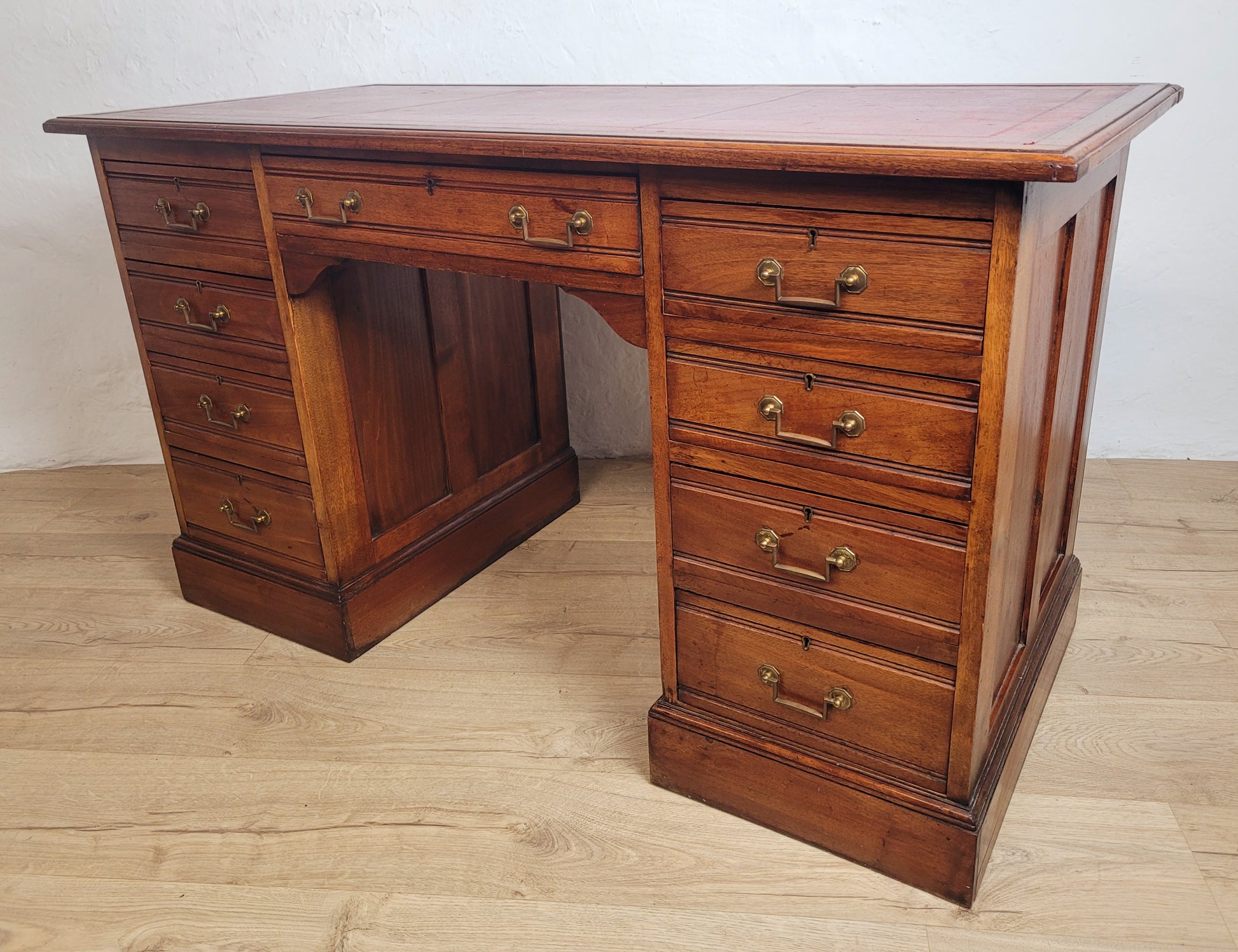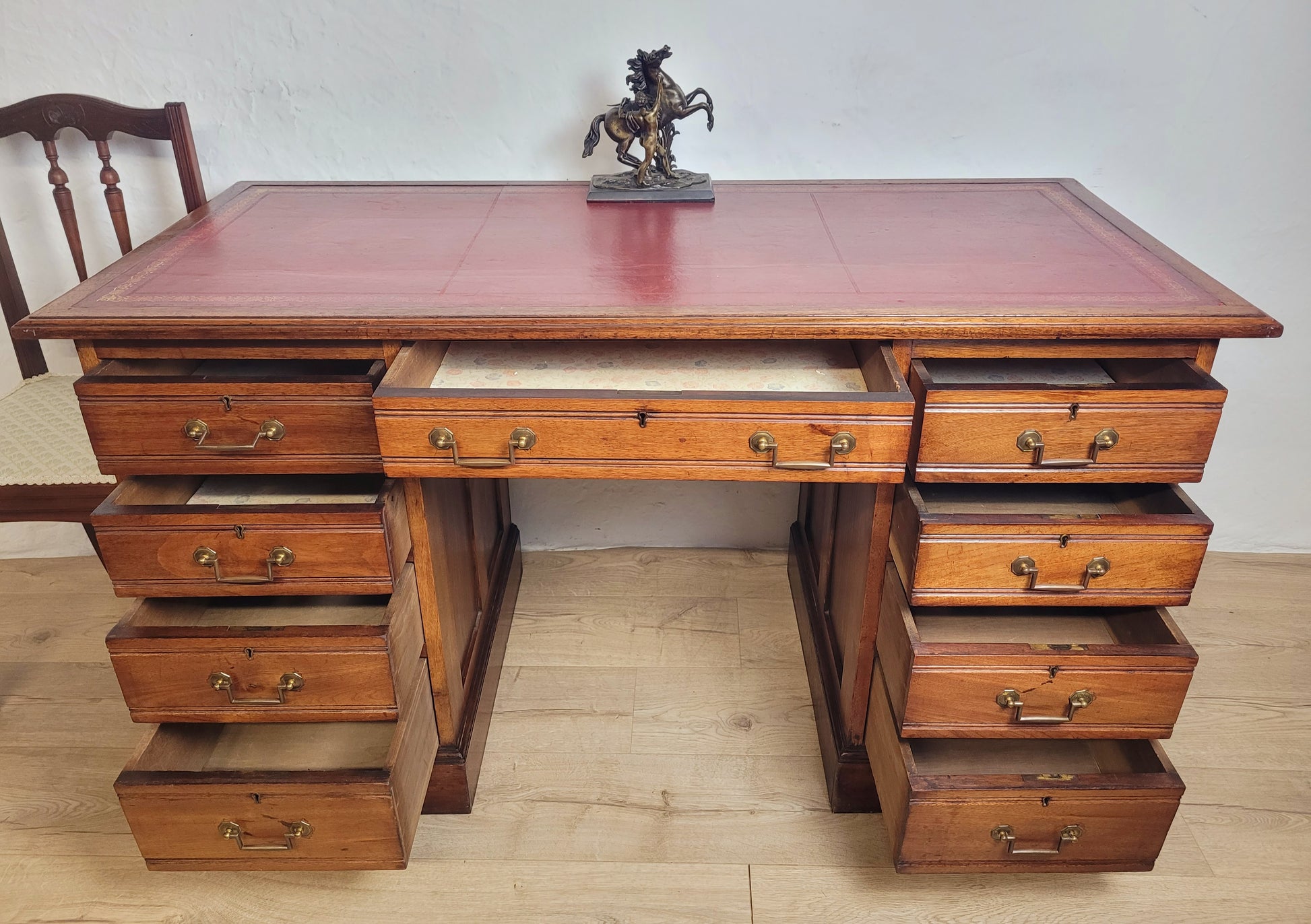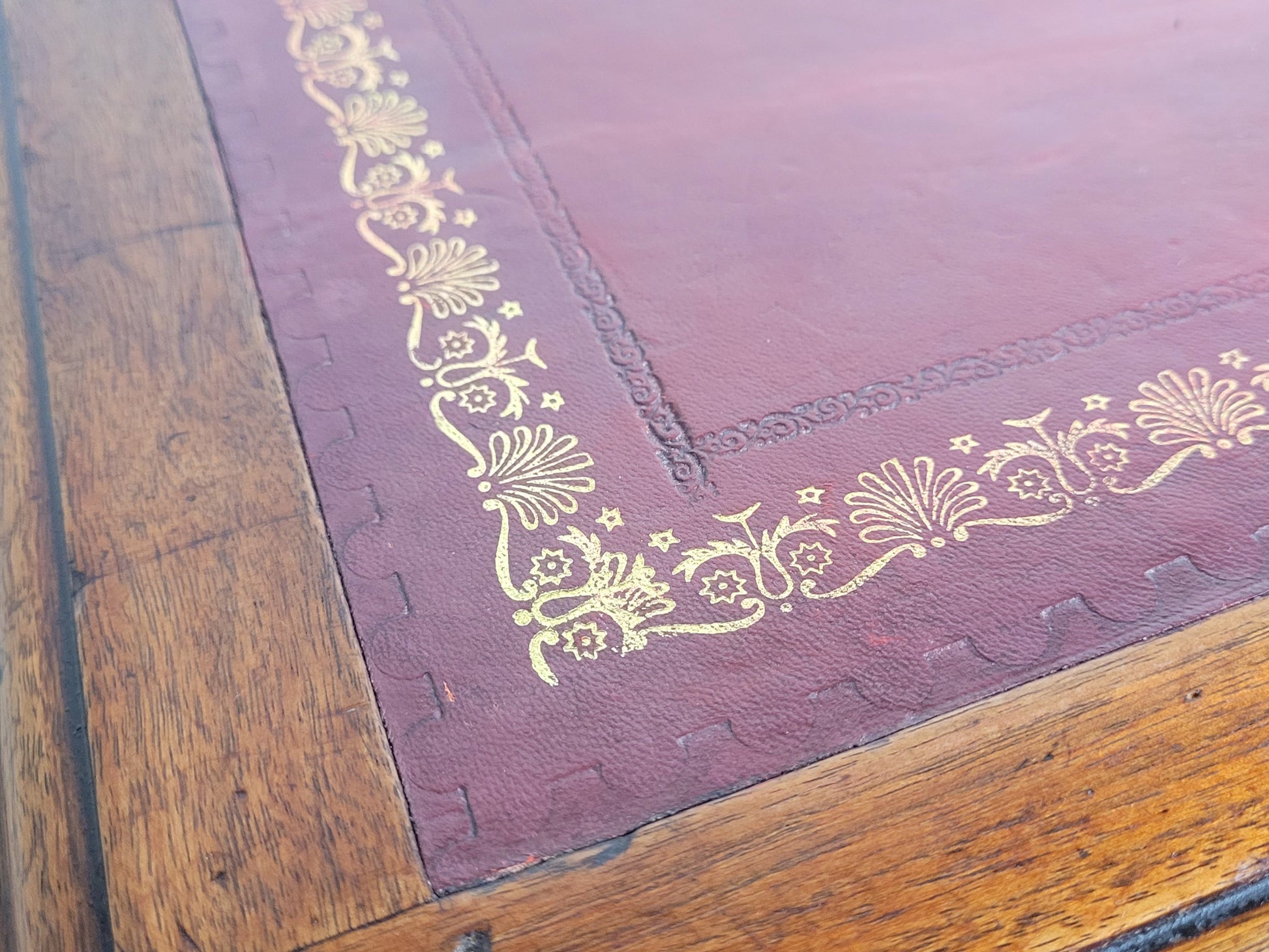 Edwardian Writing Desk Knee Hole Red Leather 1910 Antique Delivery Available