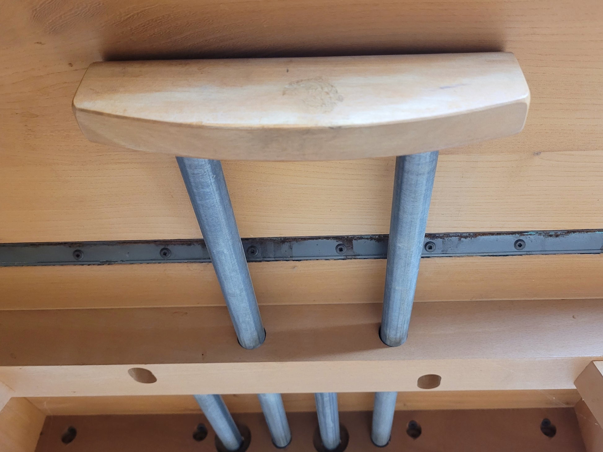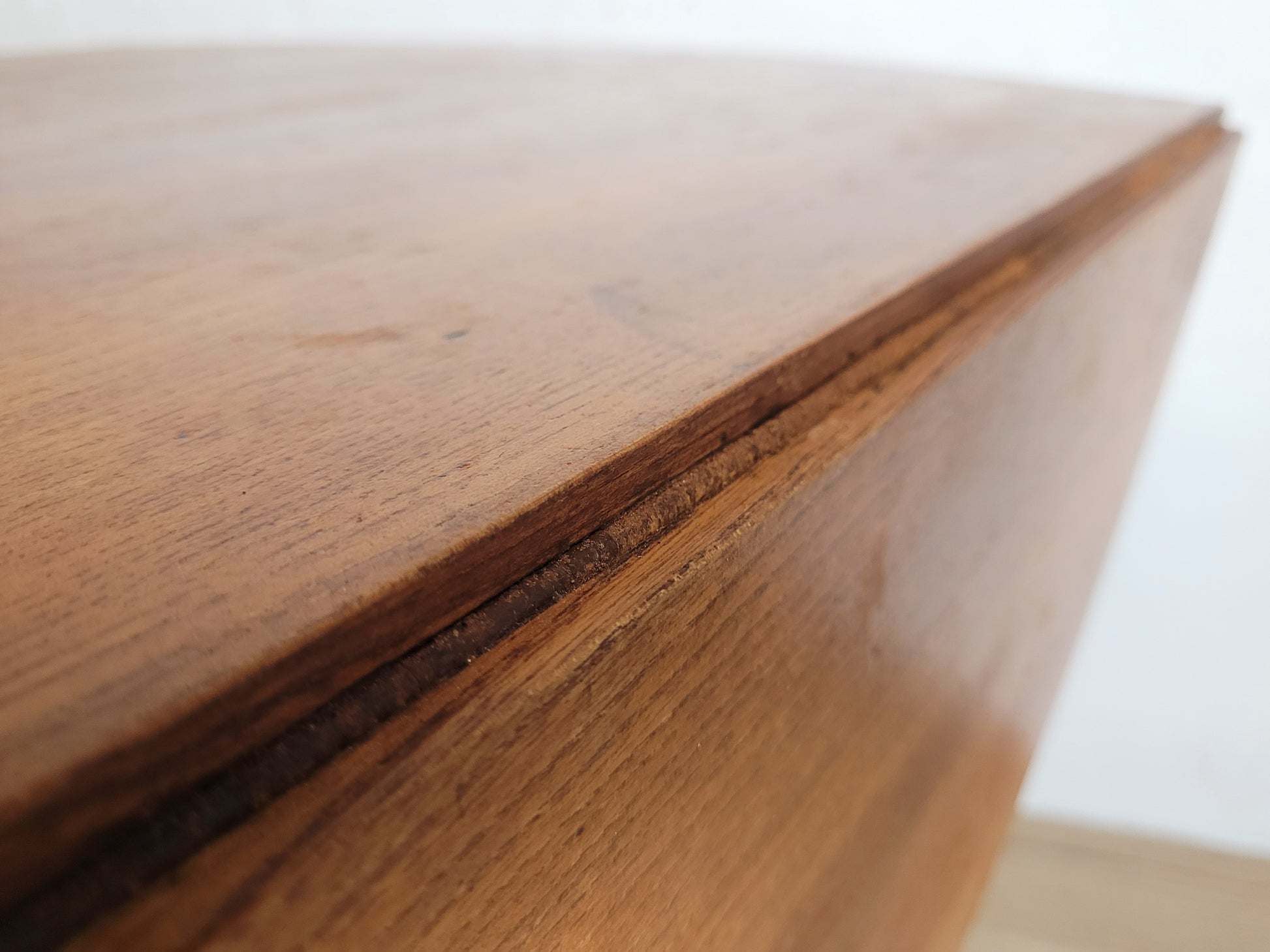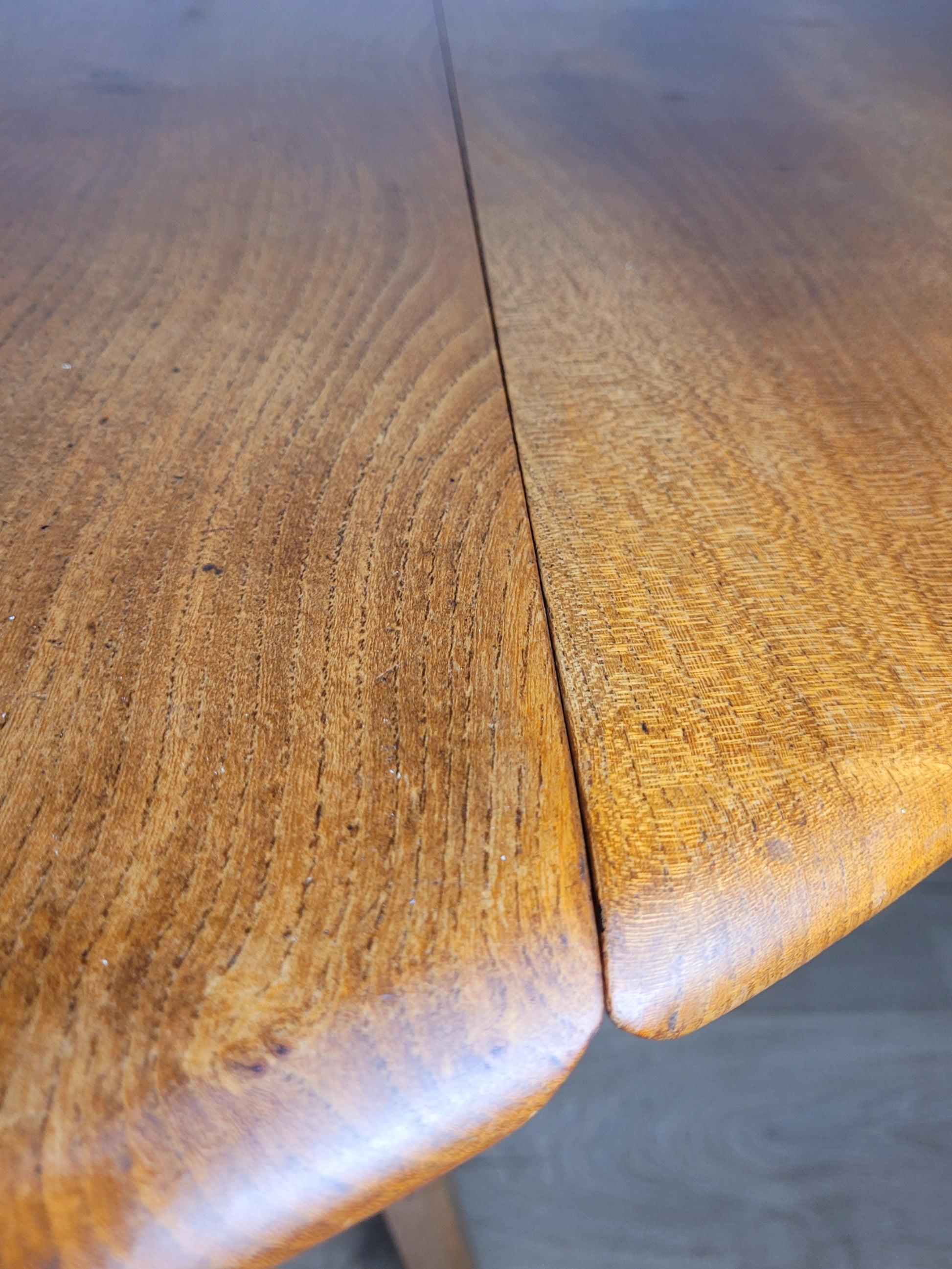There are signs of veneer wear to the table legs (see photograph).