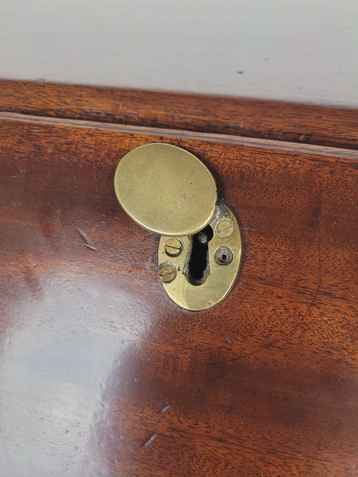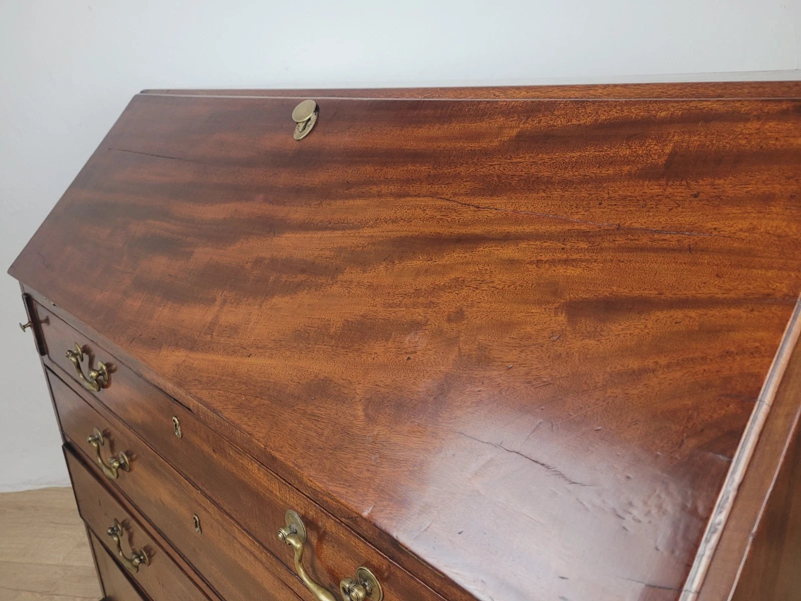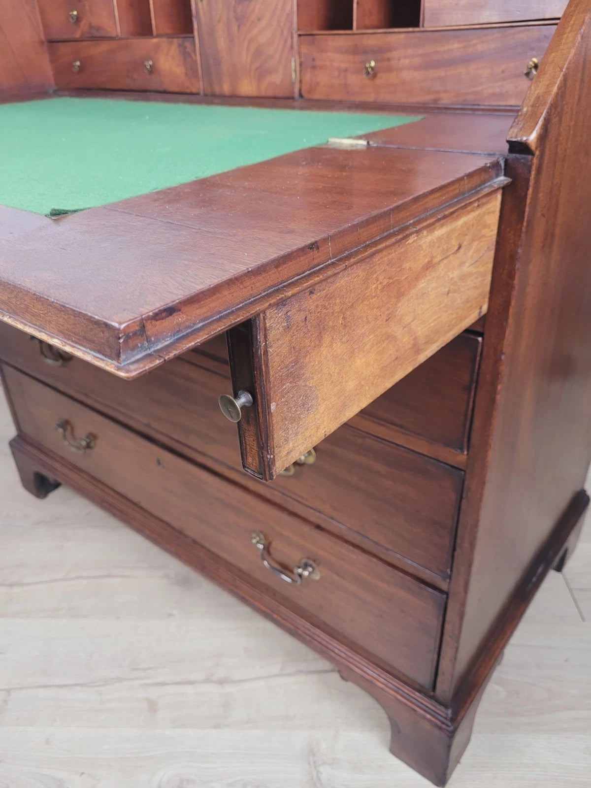 The desk has a charming mahogany patination to the front that adds a wonderful period charm to the home decor.