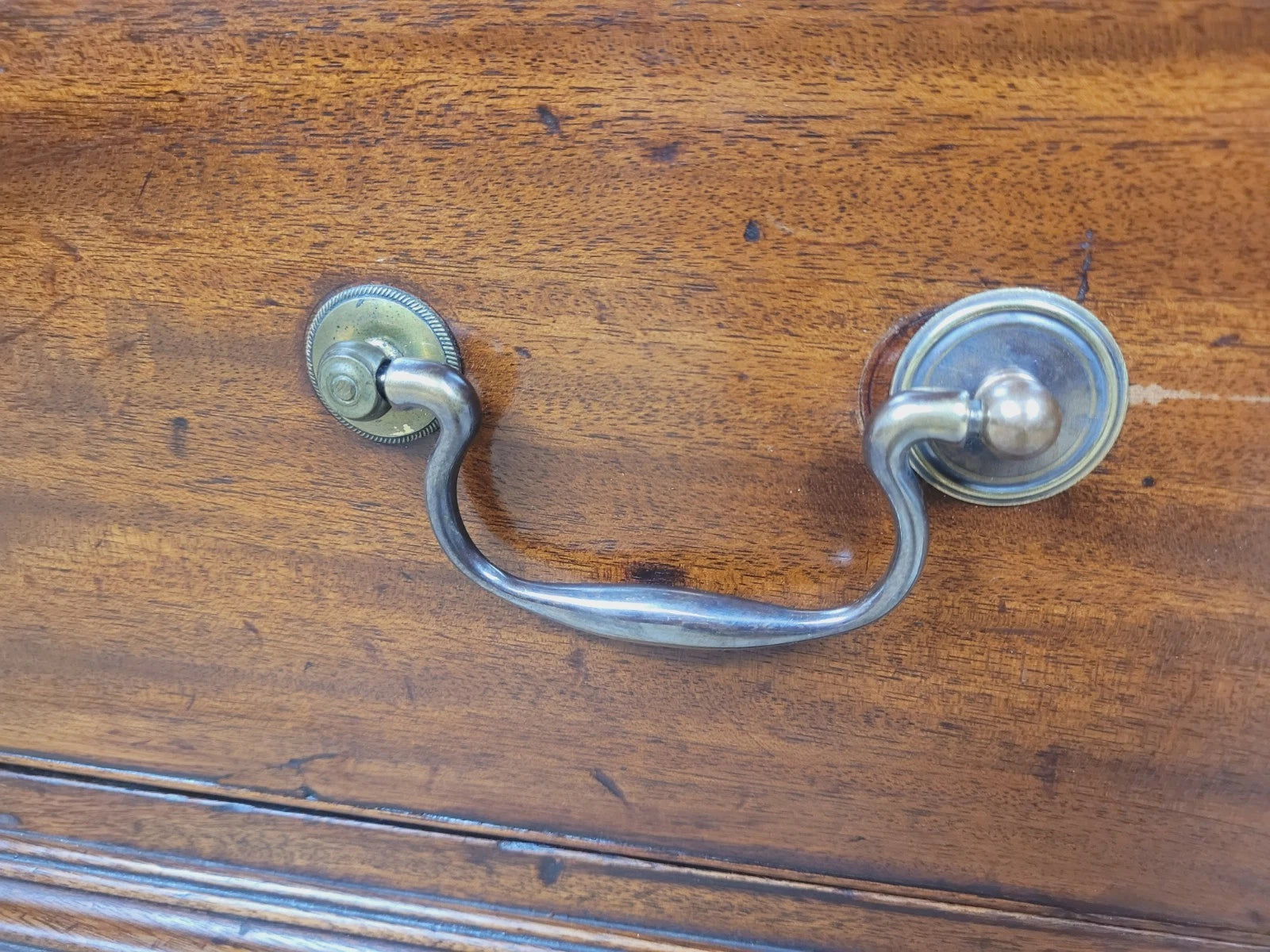 Leading down this bureau stands proudly on 4 solid figured feet.