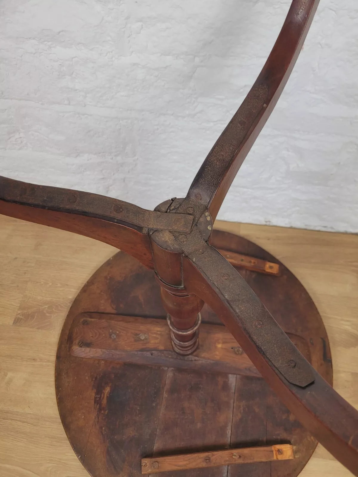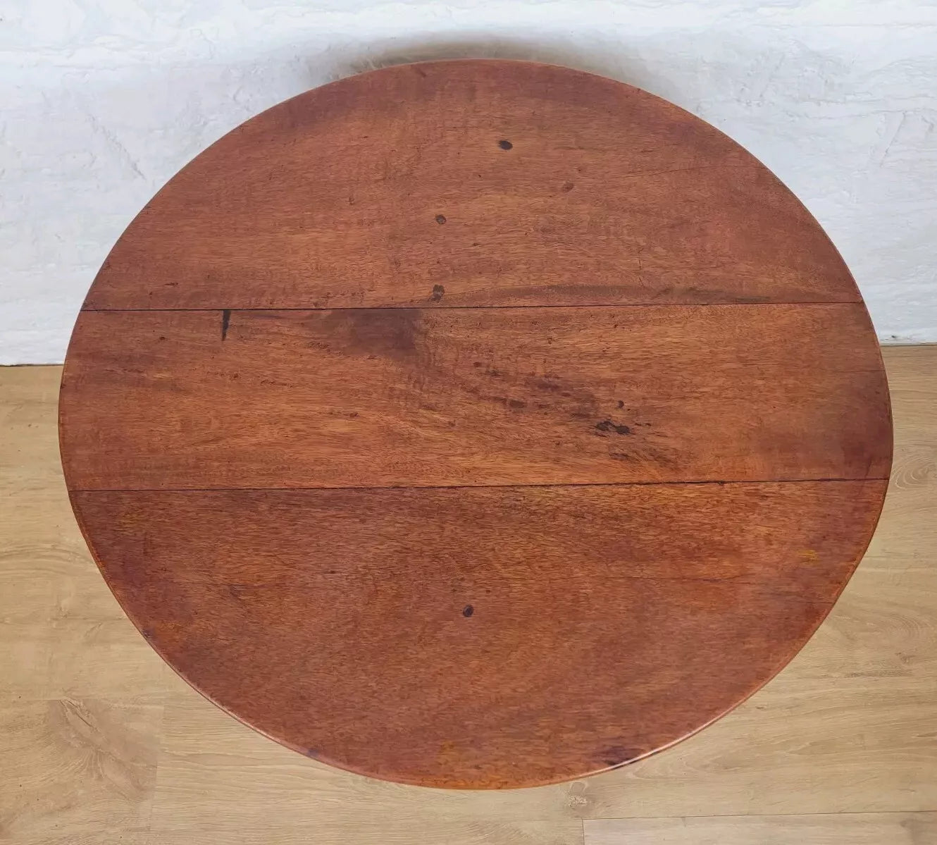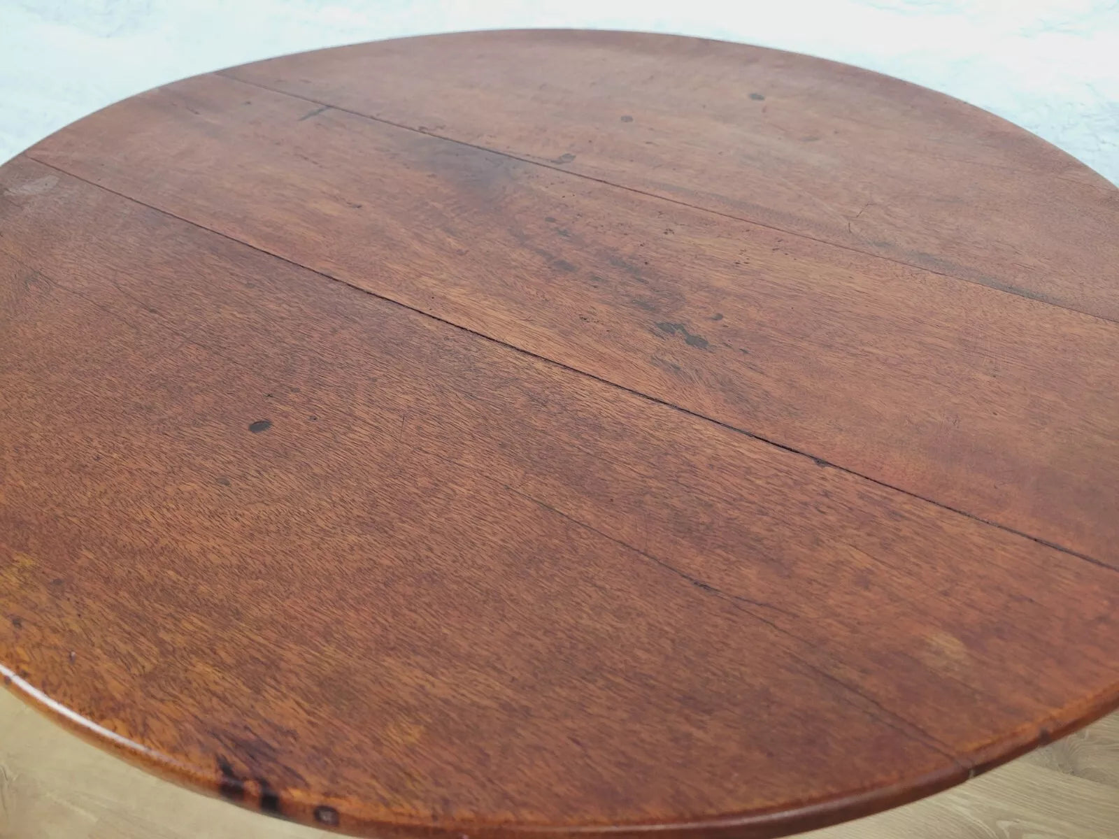 With a beautiful thick circular tabletop that displays a wonderful high-quality mahogany patina.