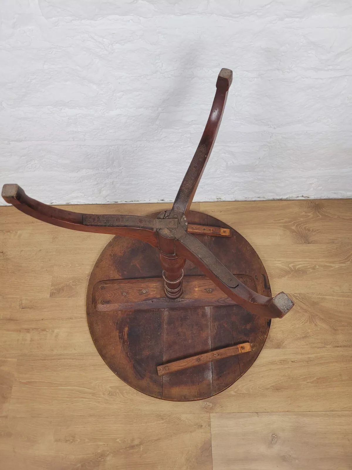 There are 4 signs of historical screw holes to the underside of the tabletop.