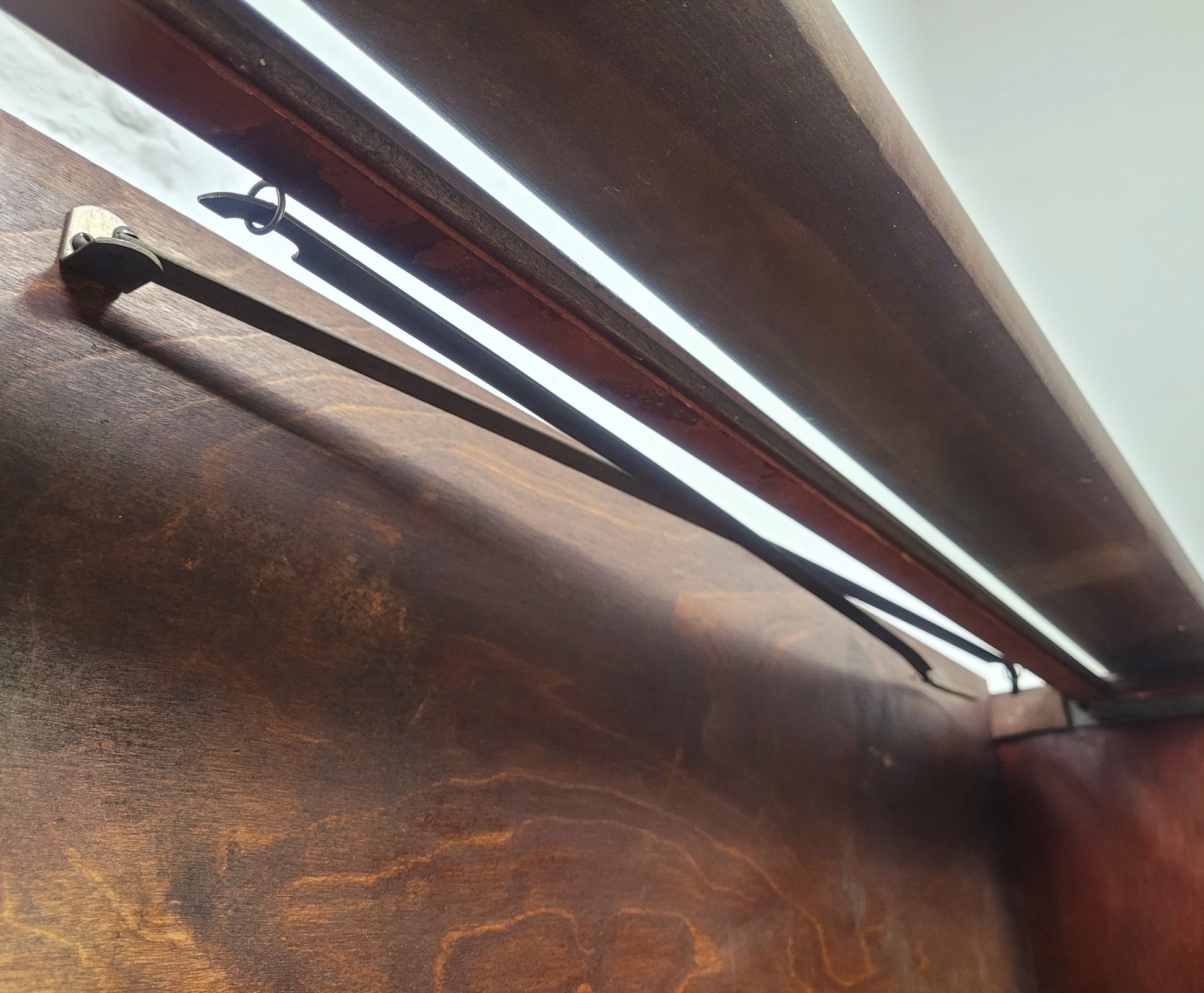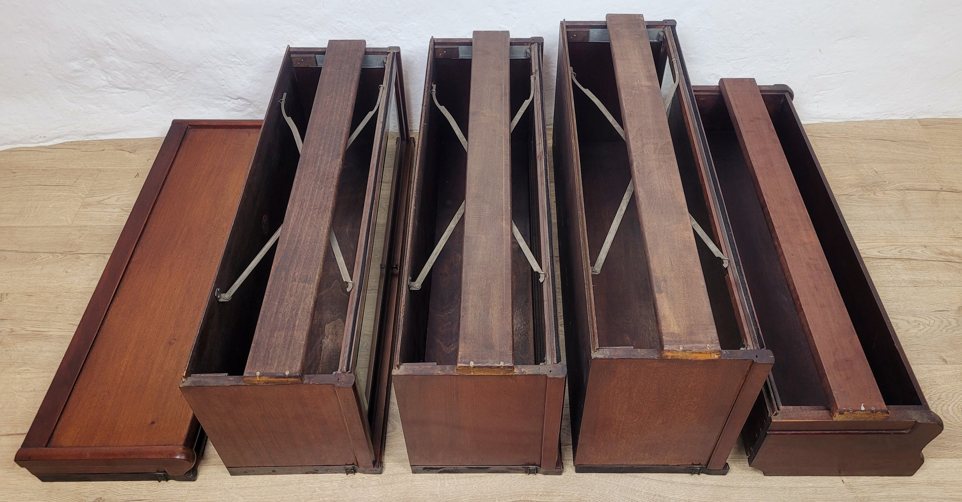 All of the book case shelves have the classic globe wernicke metal scissor mechanism, that helps the glass doors slide easily.