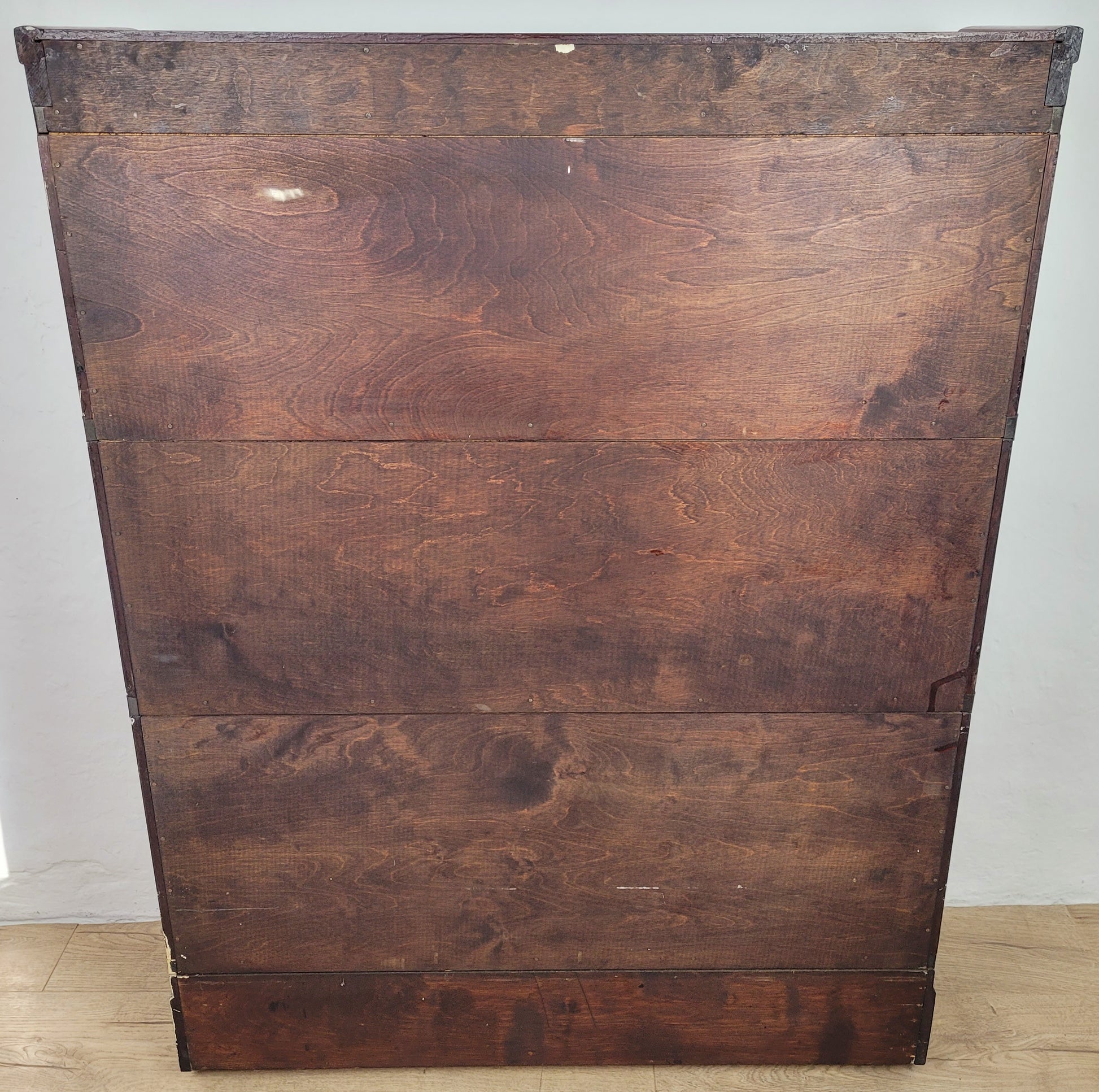 This bookcase displays a wonderful mahogany patination that is complimented by the metal bound side additions, a gorgeous addition to a rustic or country home style.