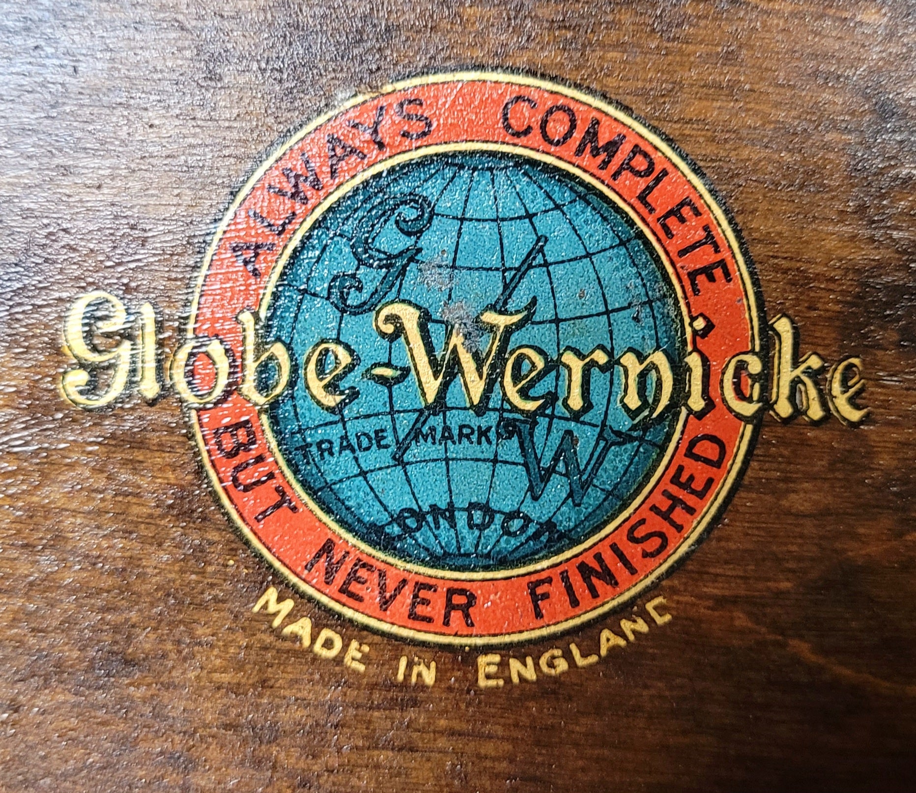To the top shelf is an original 'Globe Wernicke' sticker to show the authenticity of the set.