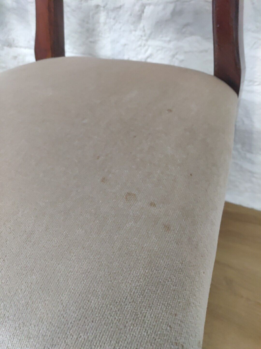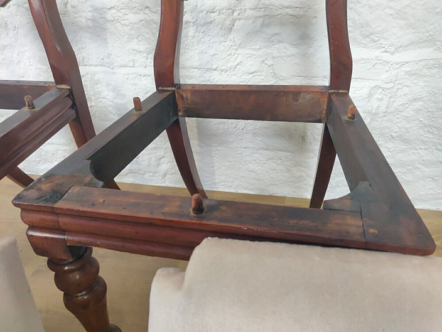 Both the chair seats have been reupholstered with a Chenille cream horsehair stuffing, that provides comfortable seating. The seating is held in place with 3 dowels.