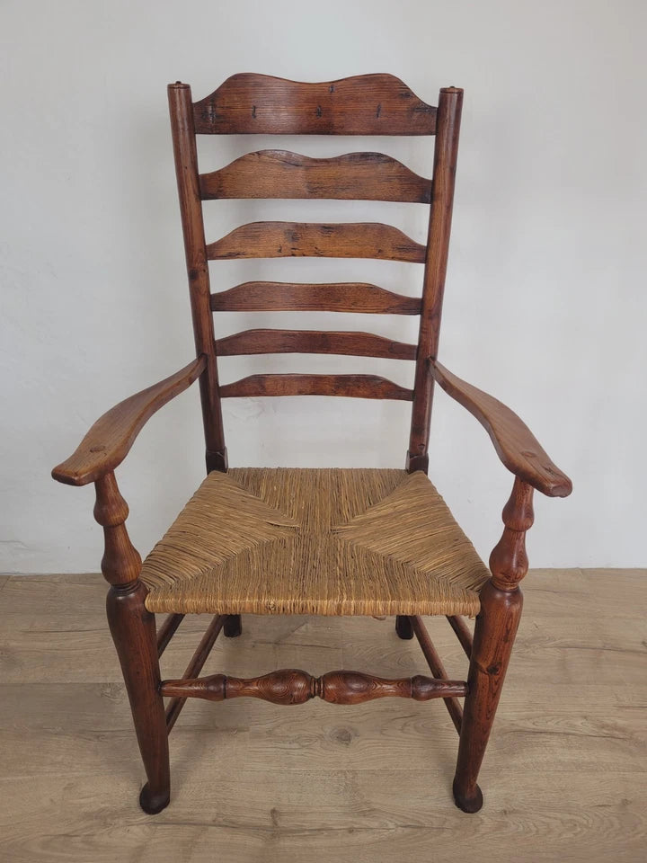 Ladderback Armchair Elm 19th Century Country Rush Seat Antique Postage Available