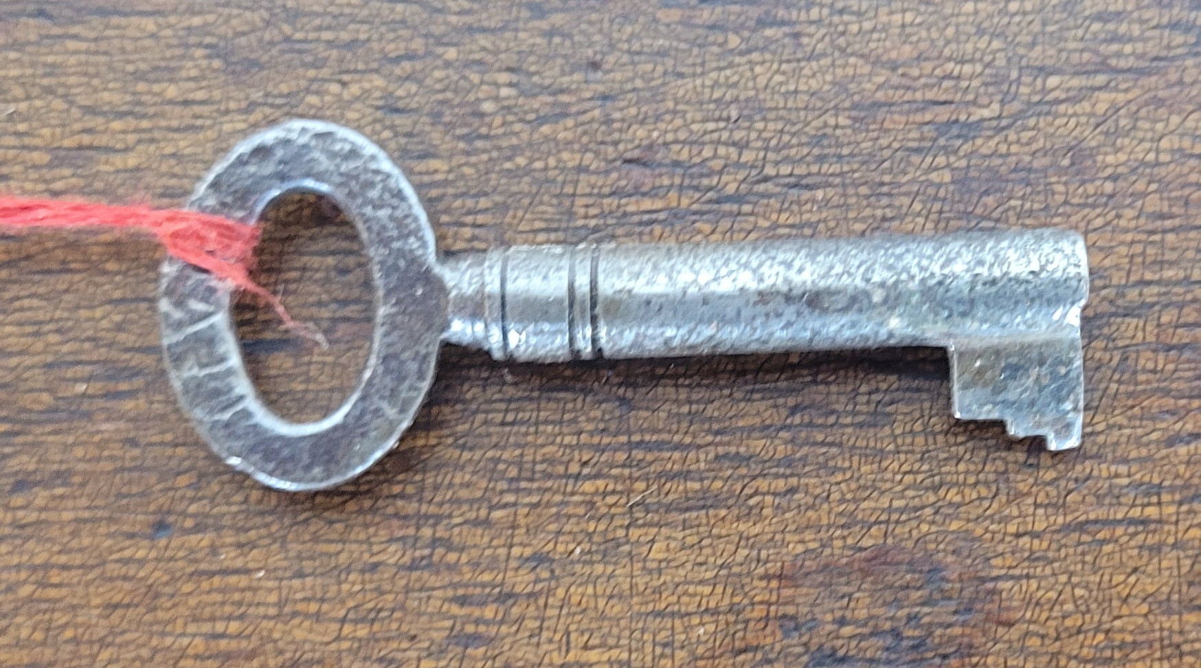 To the front of the desk the drawers and fall front have key holes, and a key to keep the desk securely locked.