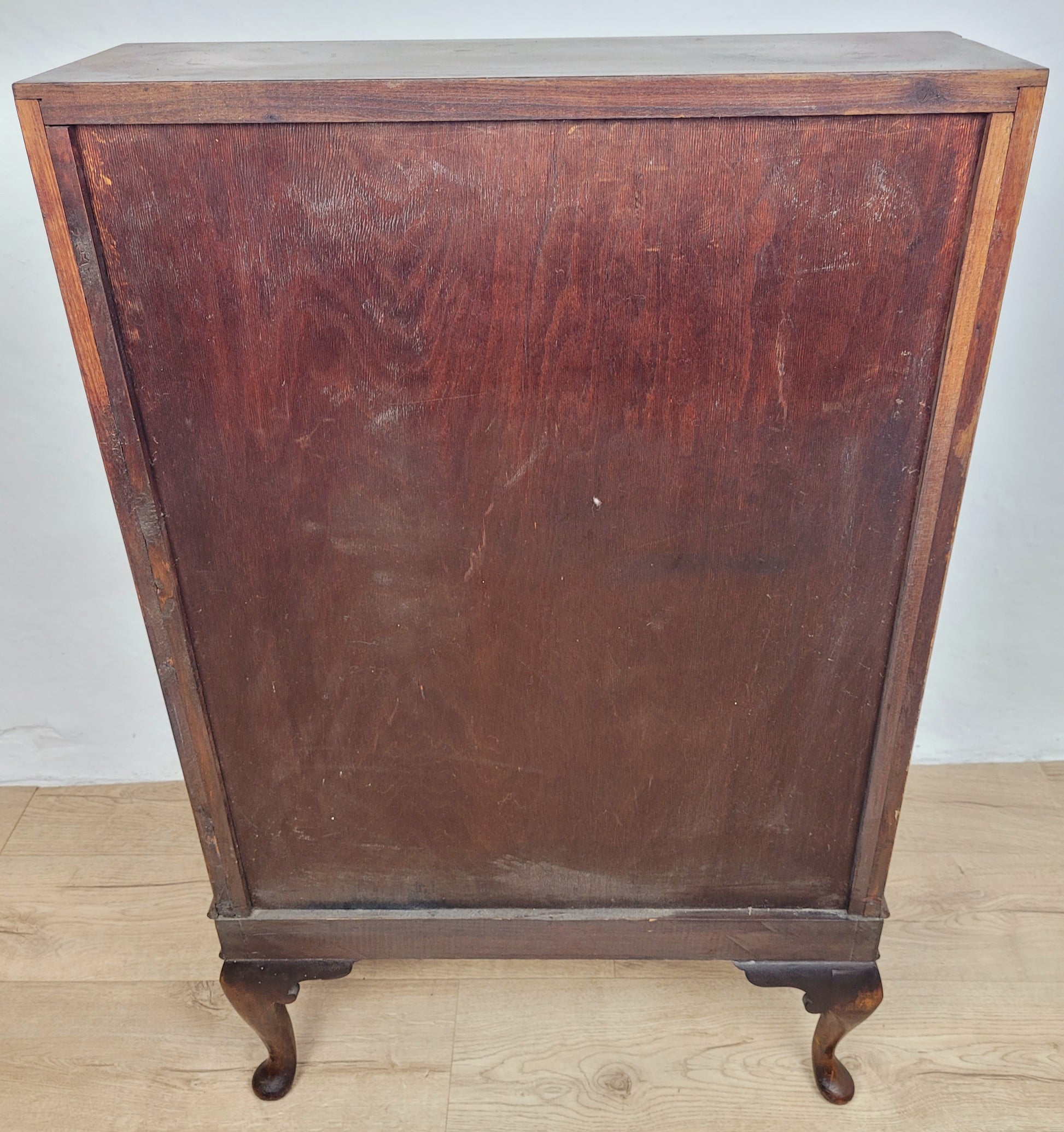 The fall front can be dropped to expose the quality interior with a useful brown leather writing desk top. The interior has a singular central drawer that is surrounded by 6 pigeon holes, perfect for storing documents, papers, books or memorabilia.