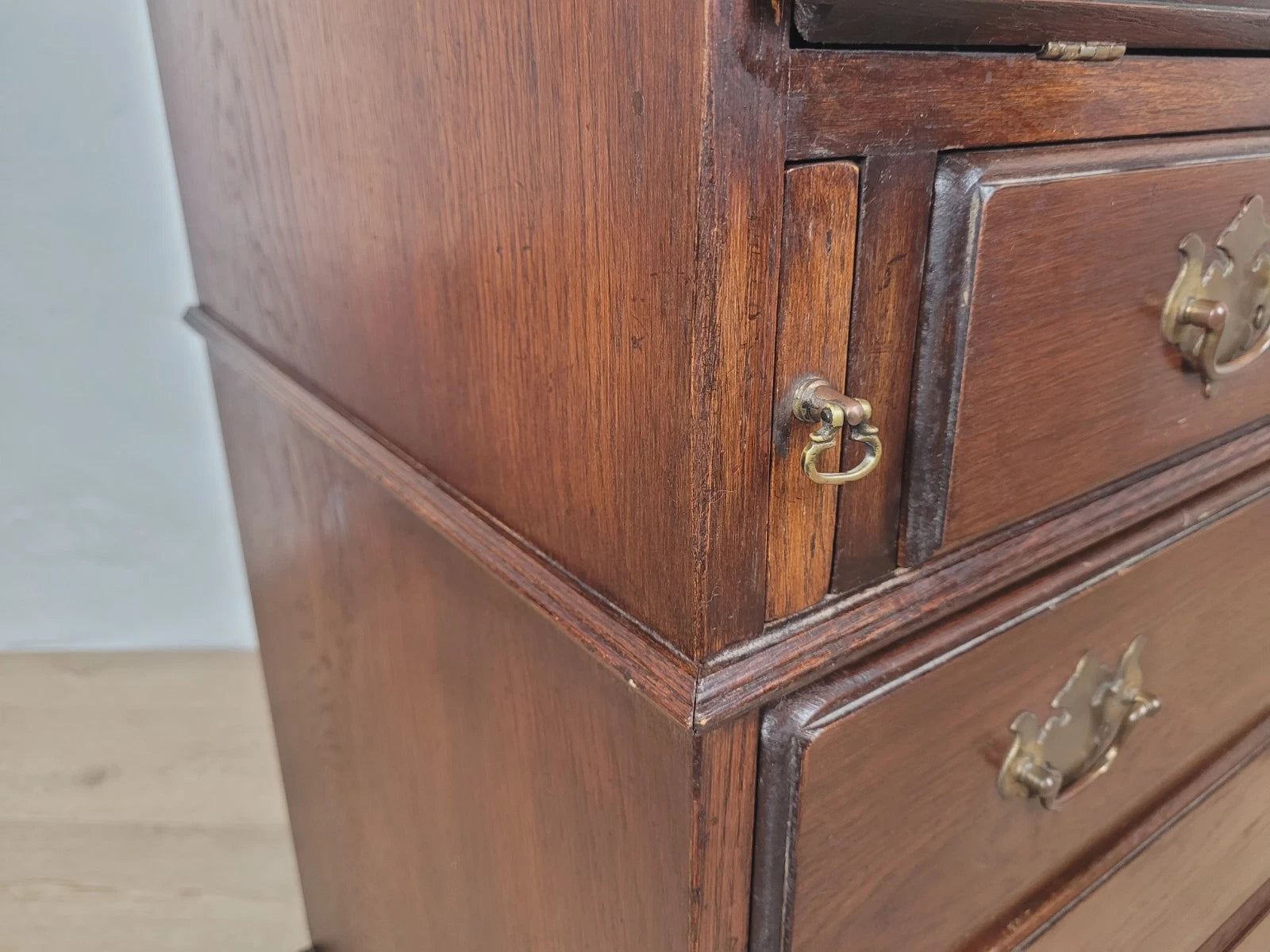 All of the drawers have excellent matching figured brass handles.