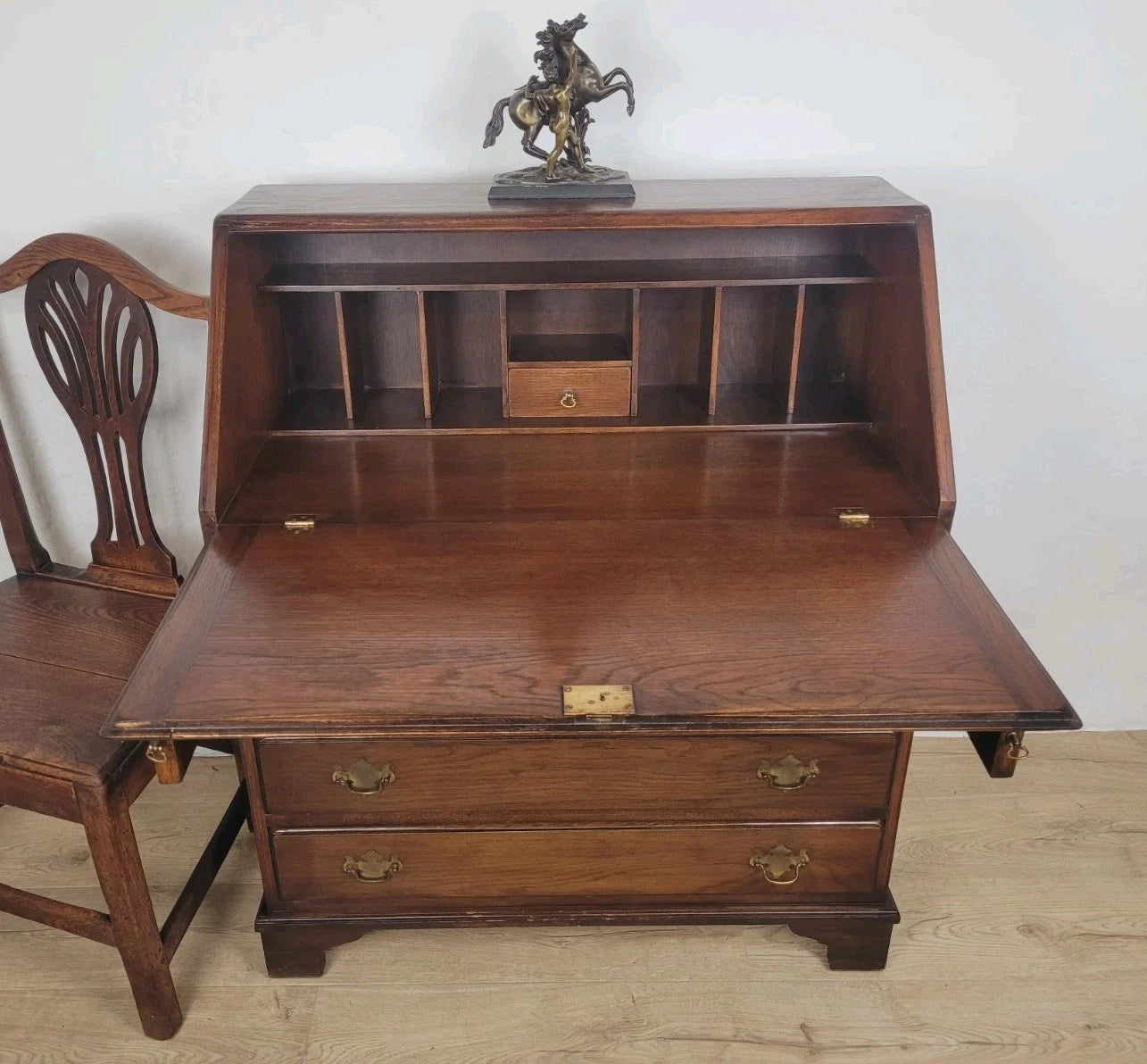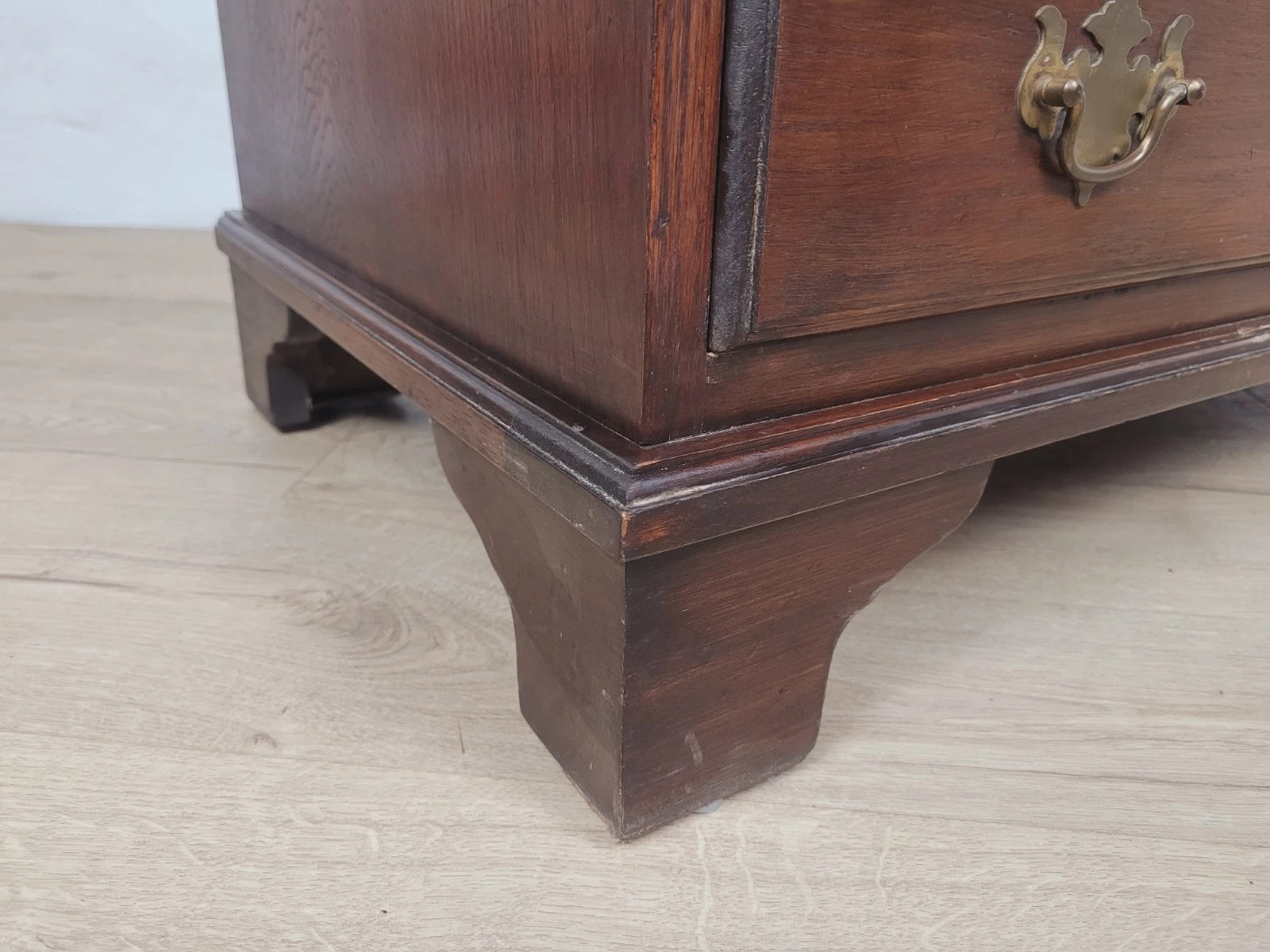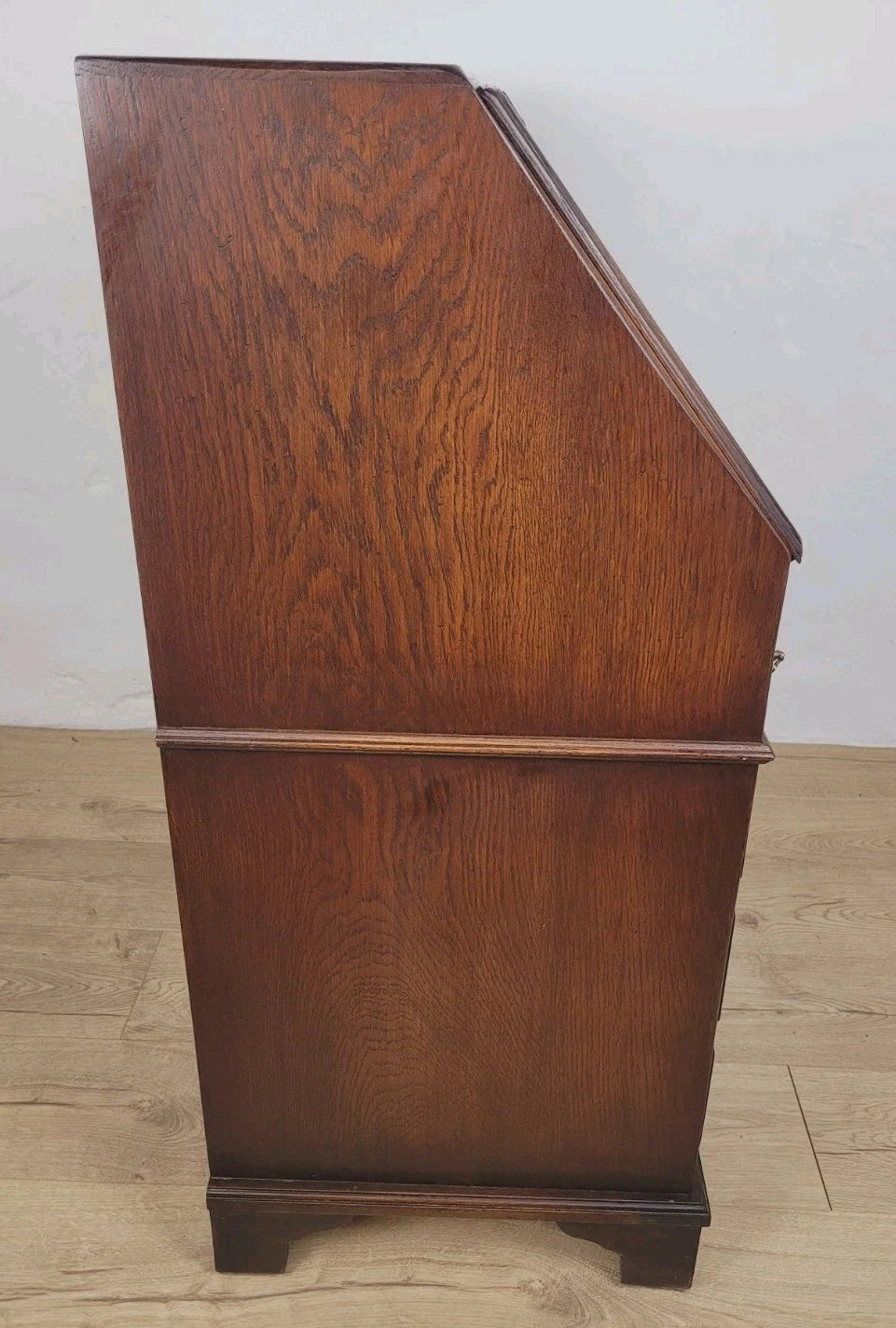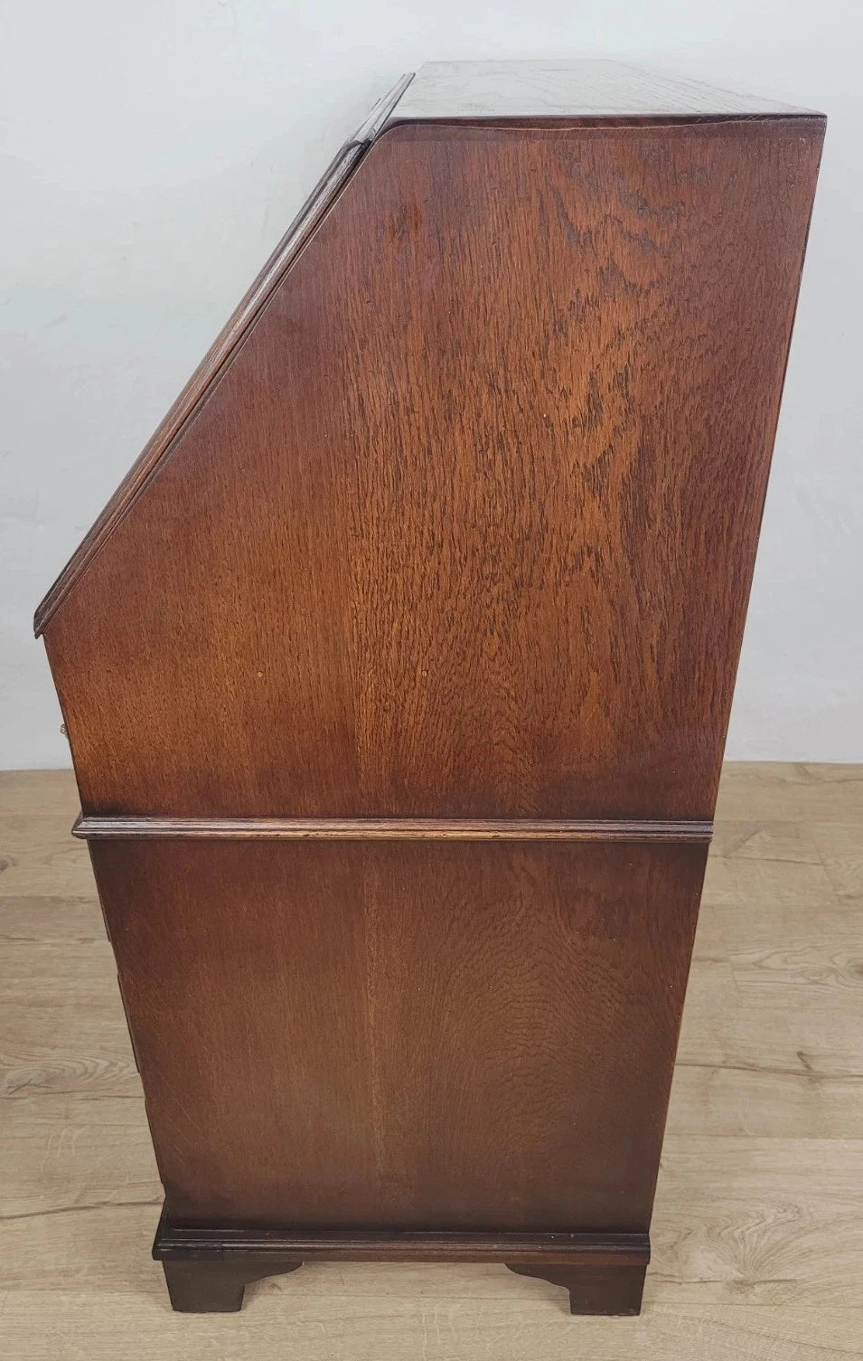 The bureau is standing proudly on 4 solid bracket feet, with a raised lower boarder surrounding the bureau.