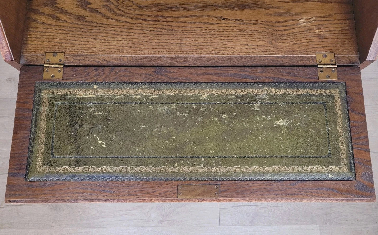 Oak Writing Bureau Desk Vintage Leather Mid Century Carved Delivery Available