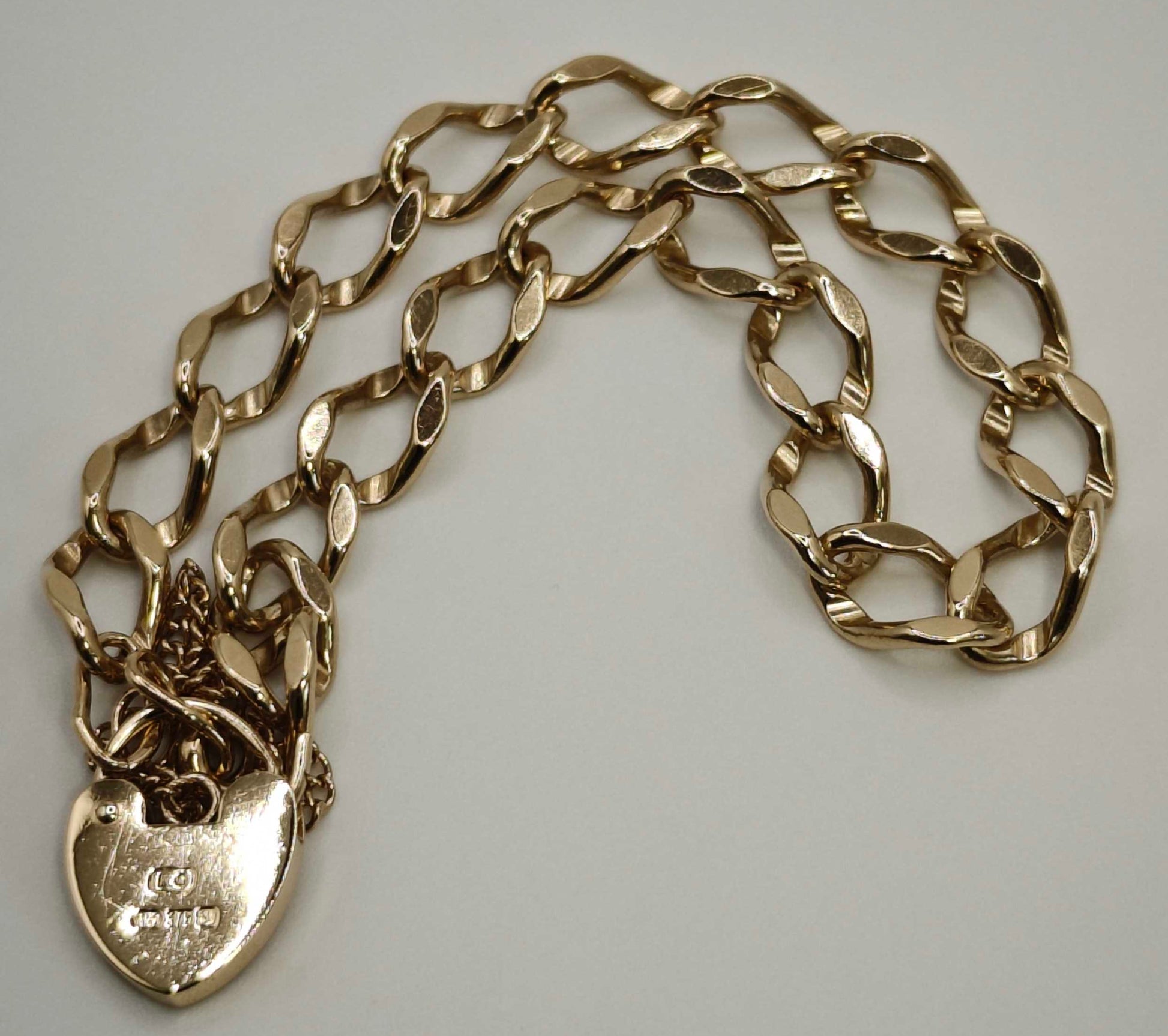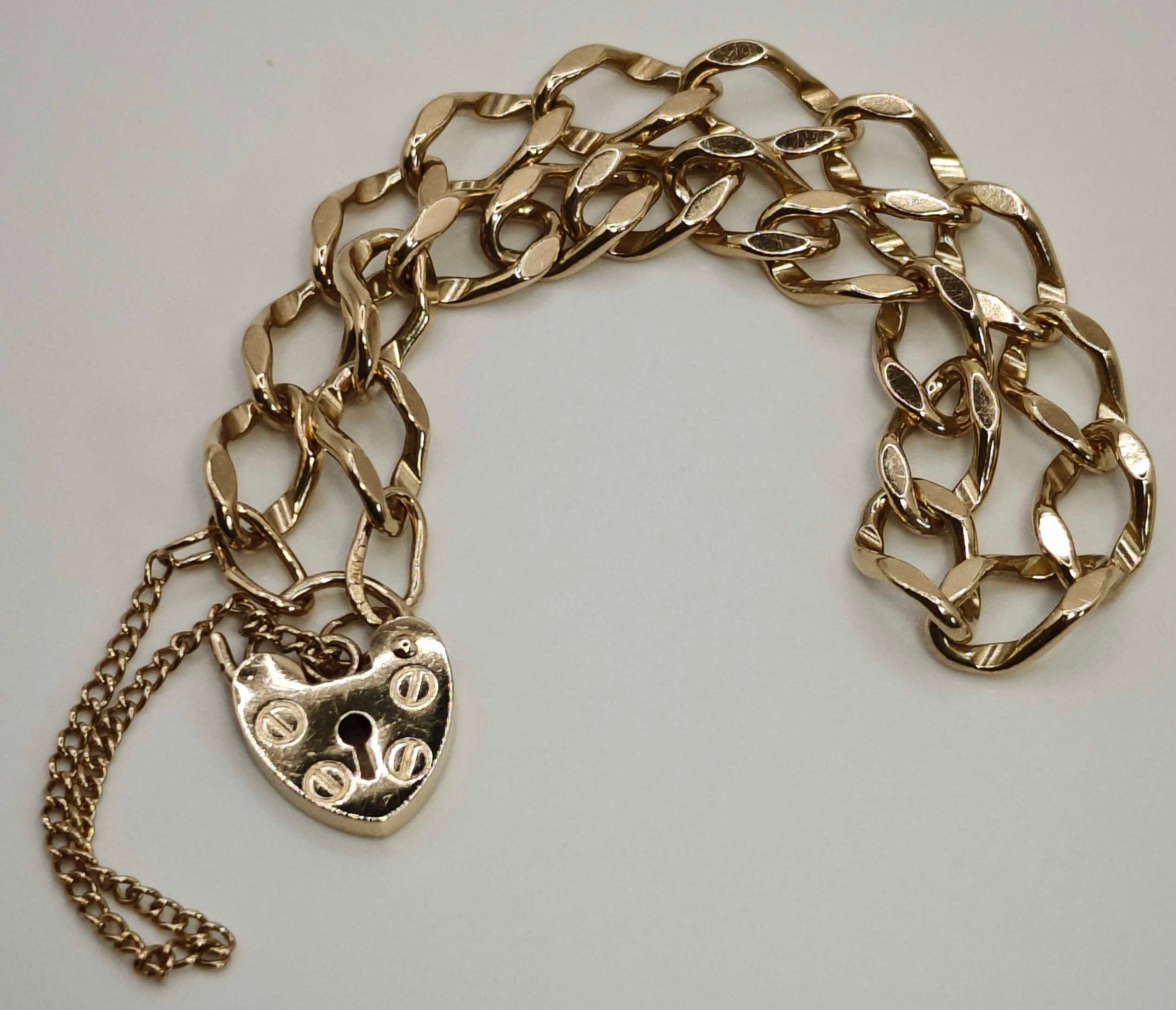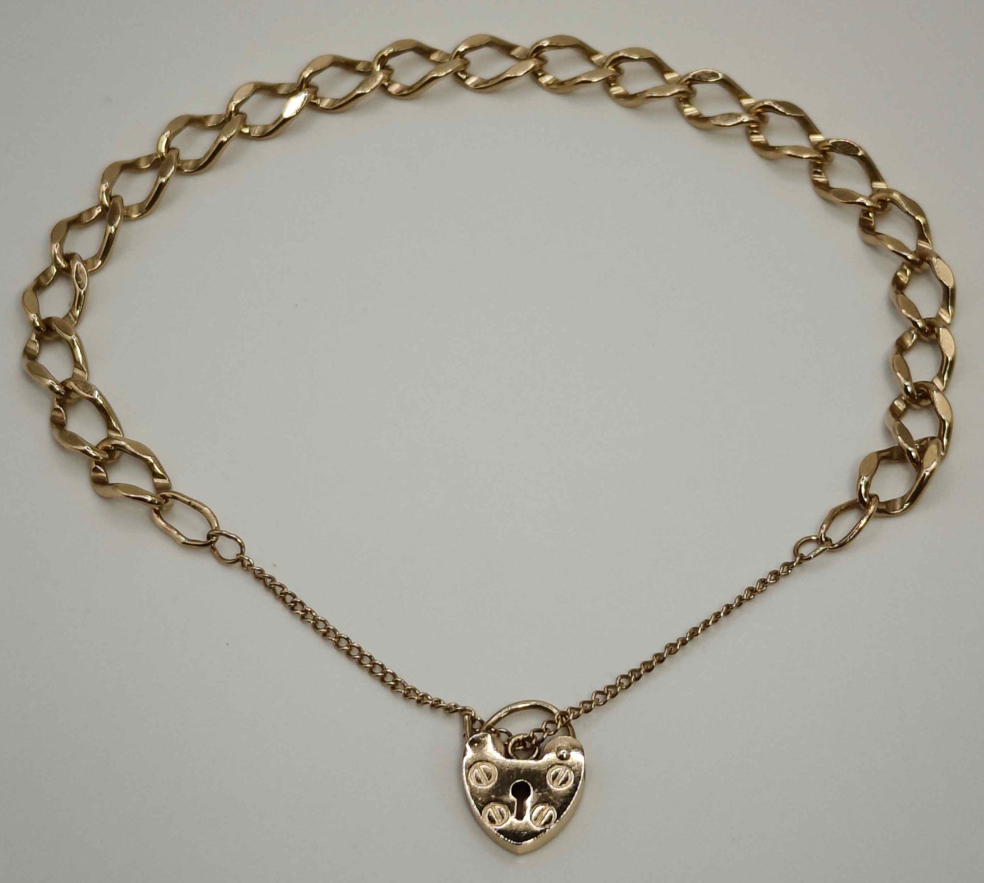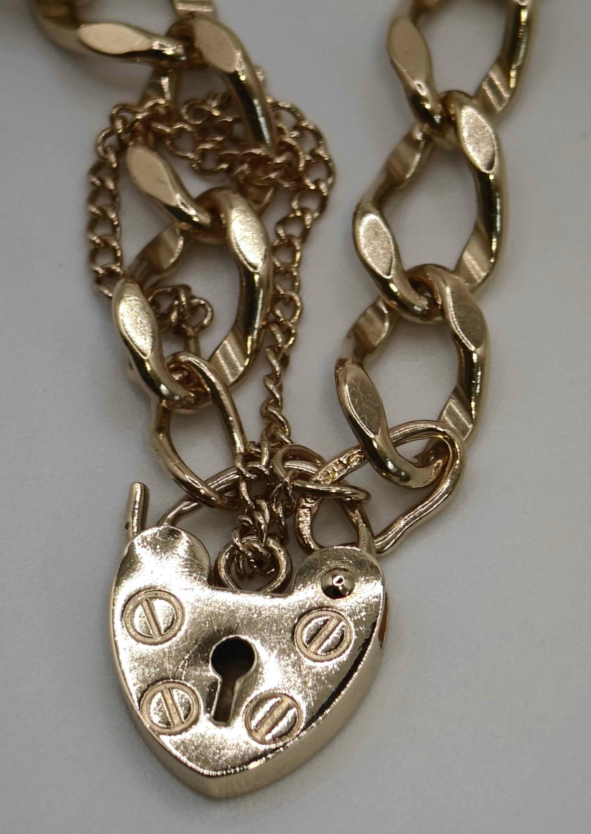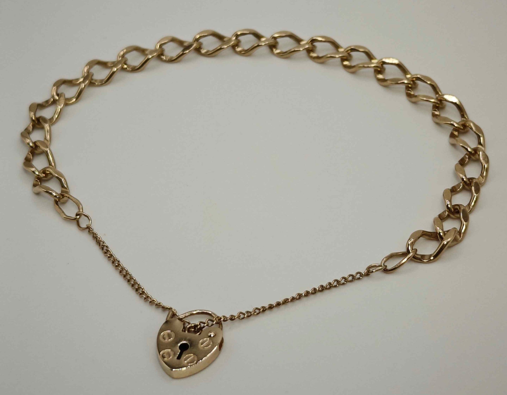 Padlock Heart Bracelet 9ct Gold Curb Link Charm 7.8" Unisex Postage Available