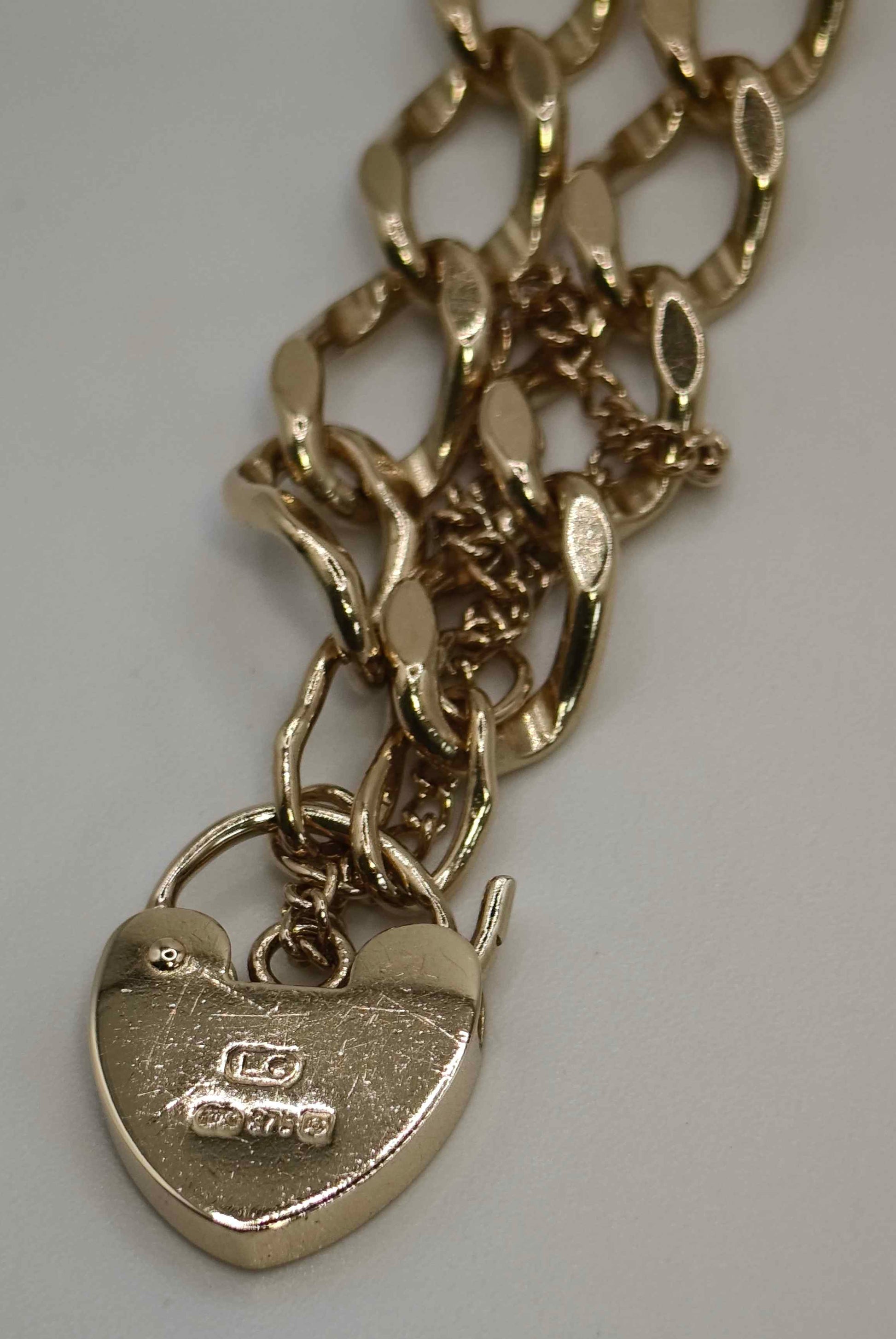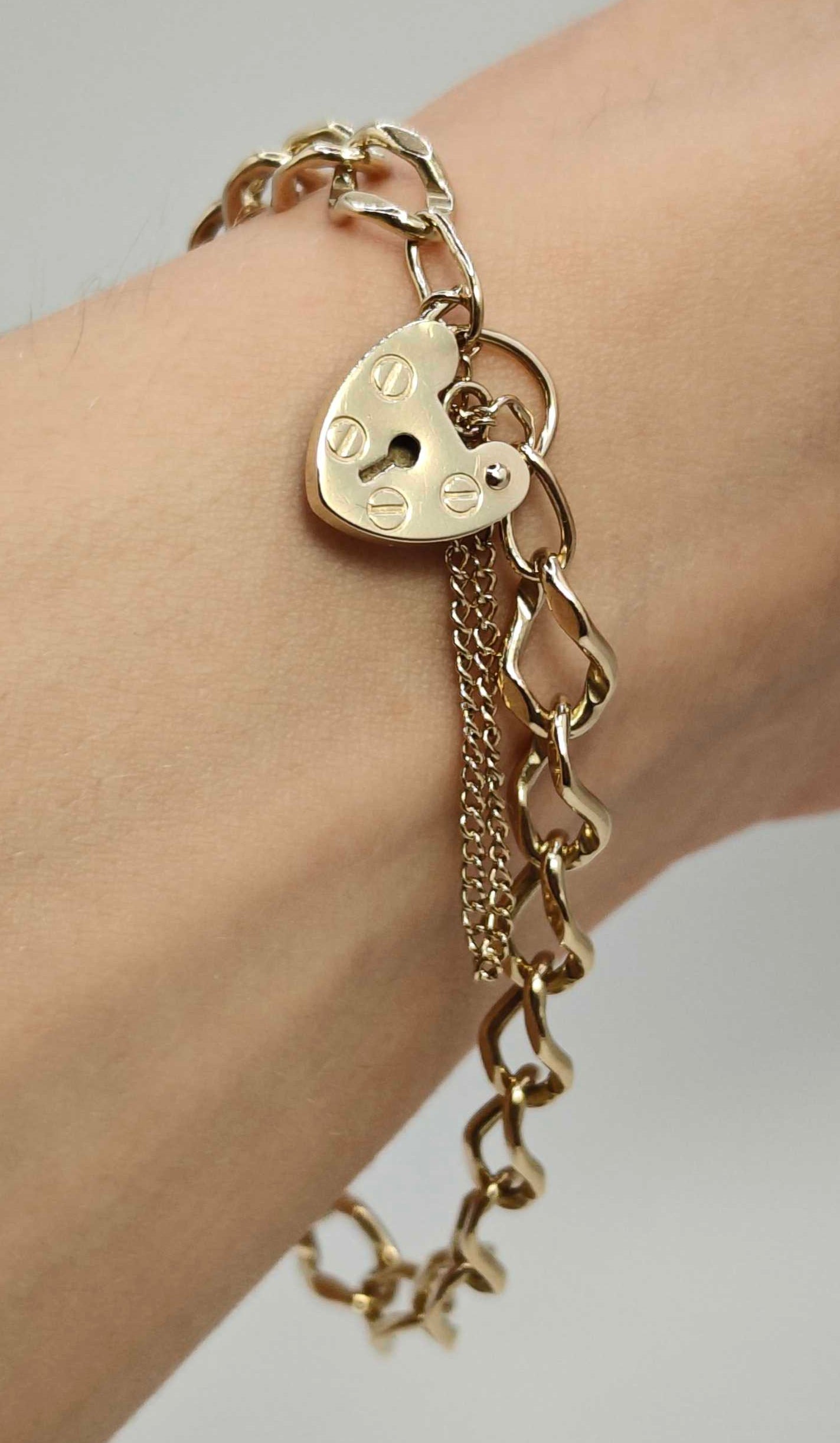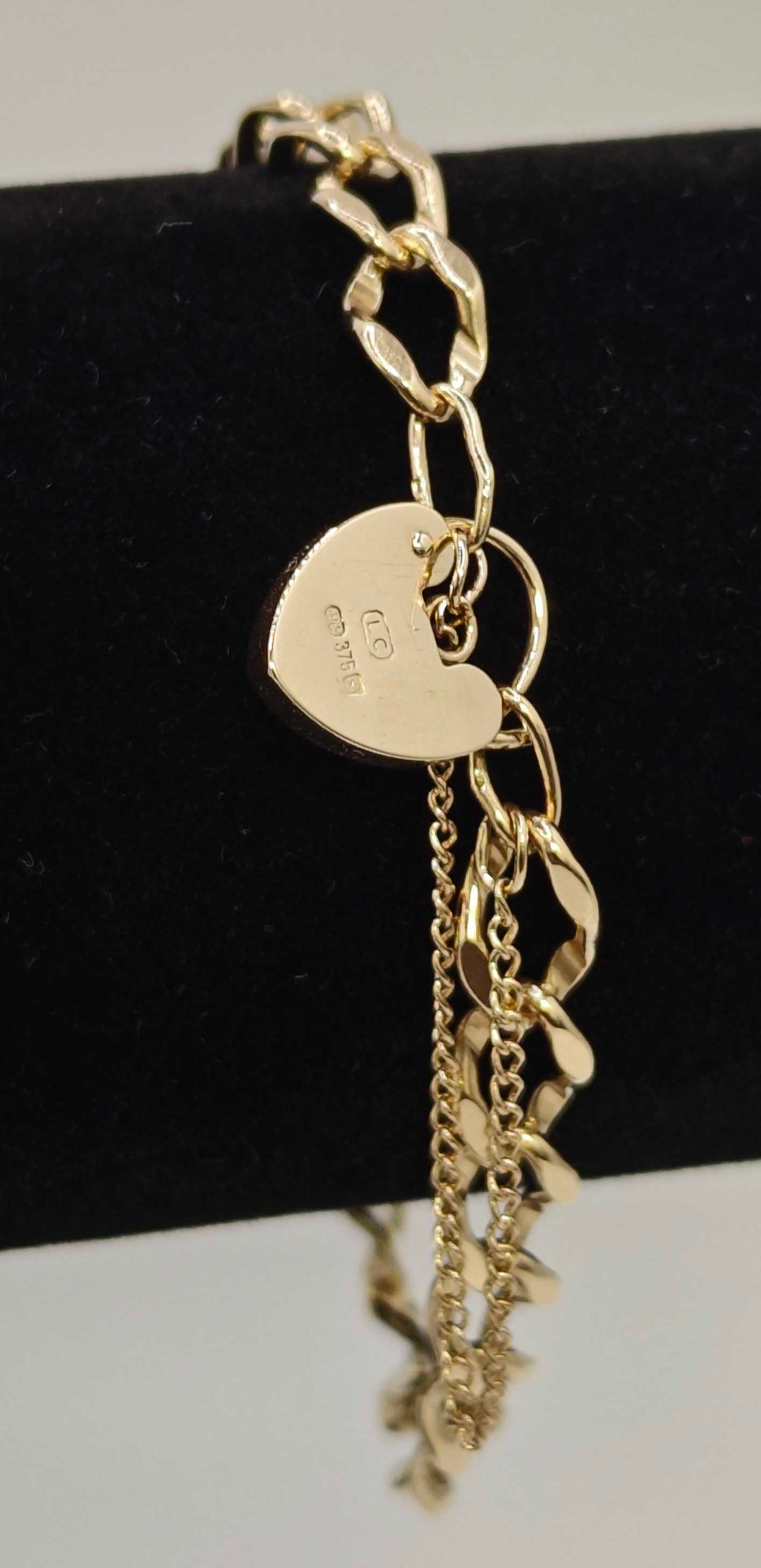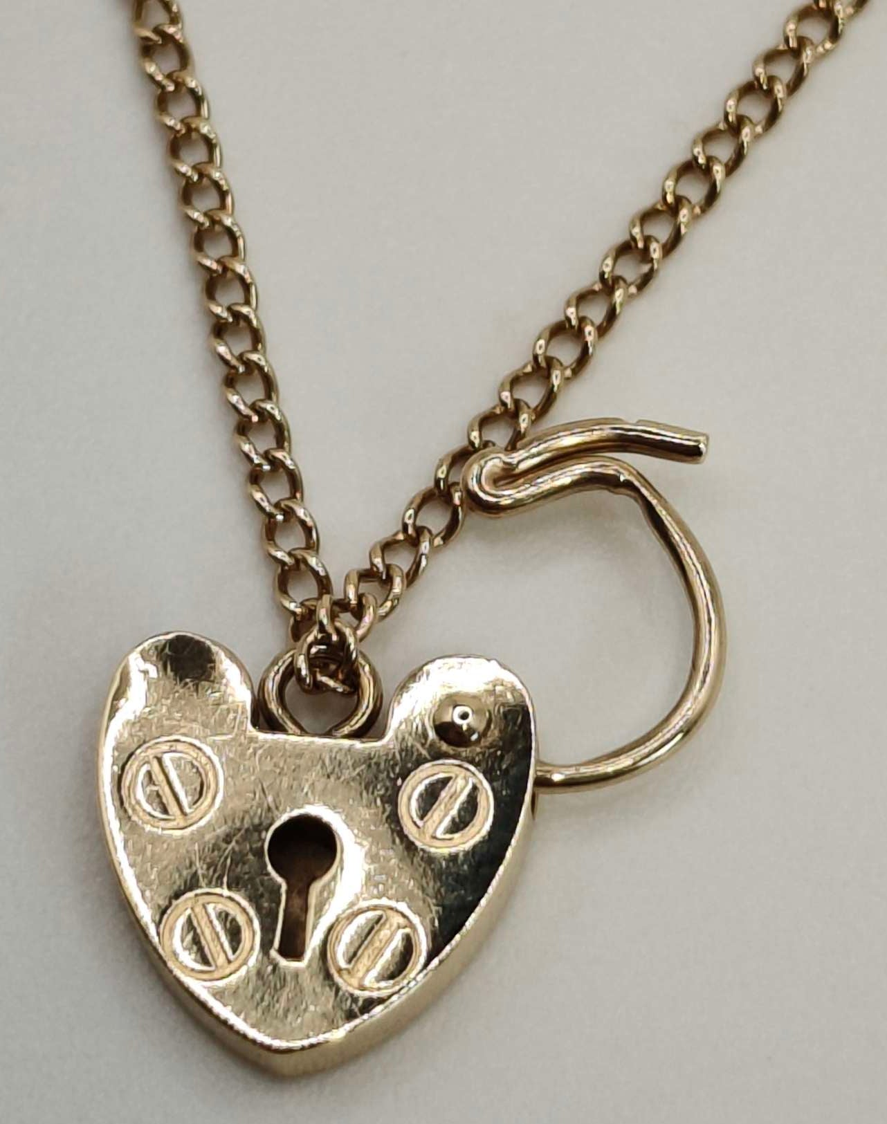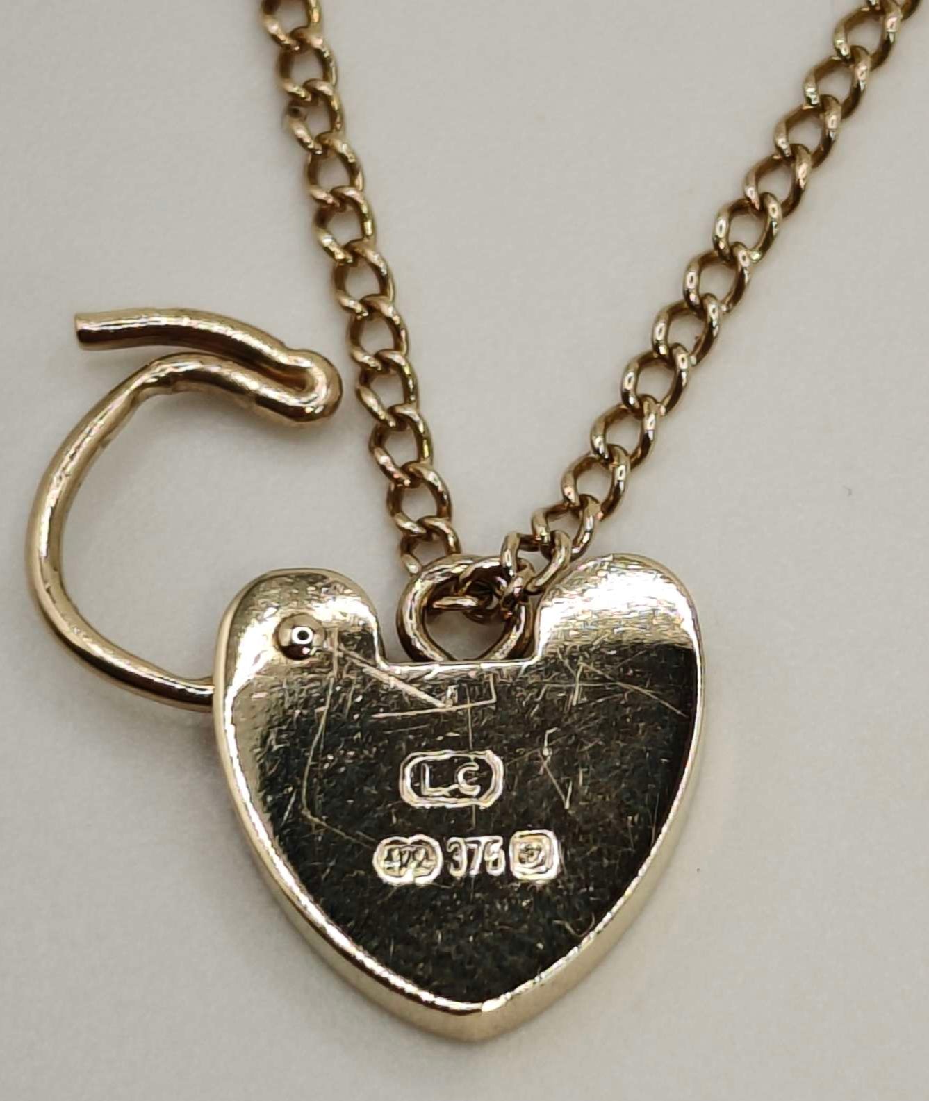 Padlock Heart Bracelet 9ct Gold Curb Link Charm 7.8" Unisex Postage Available