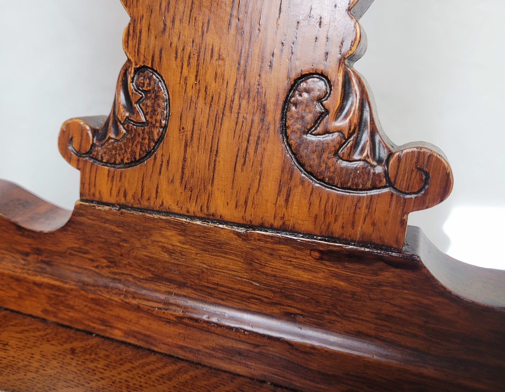 The backrest has a shaped upper backrest with a carved floral design, connecting to the pierced back and side rails. There are lower carving to the lower of the backrest.